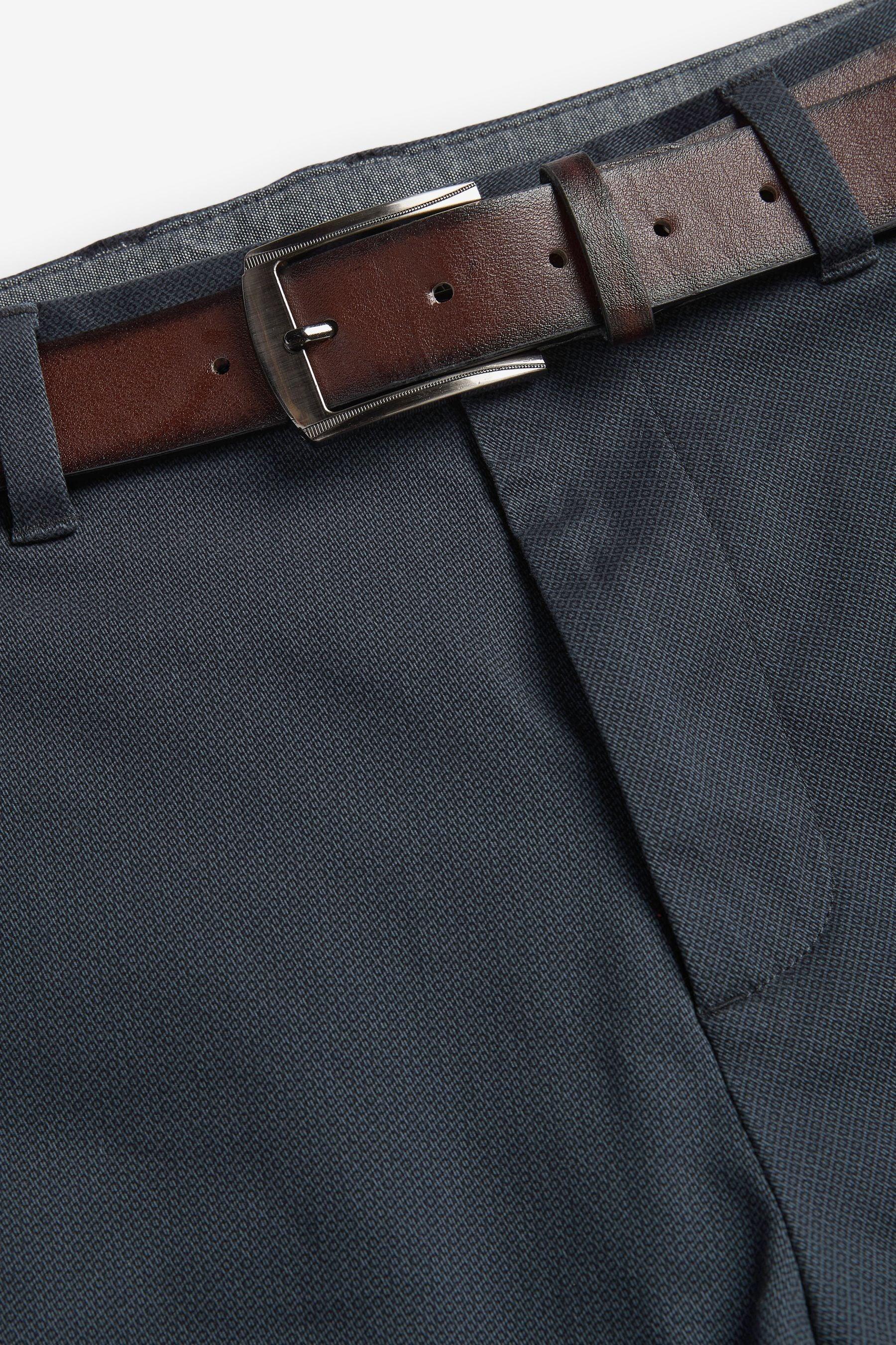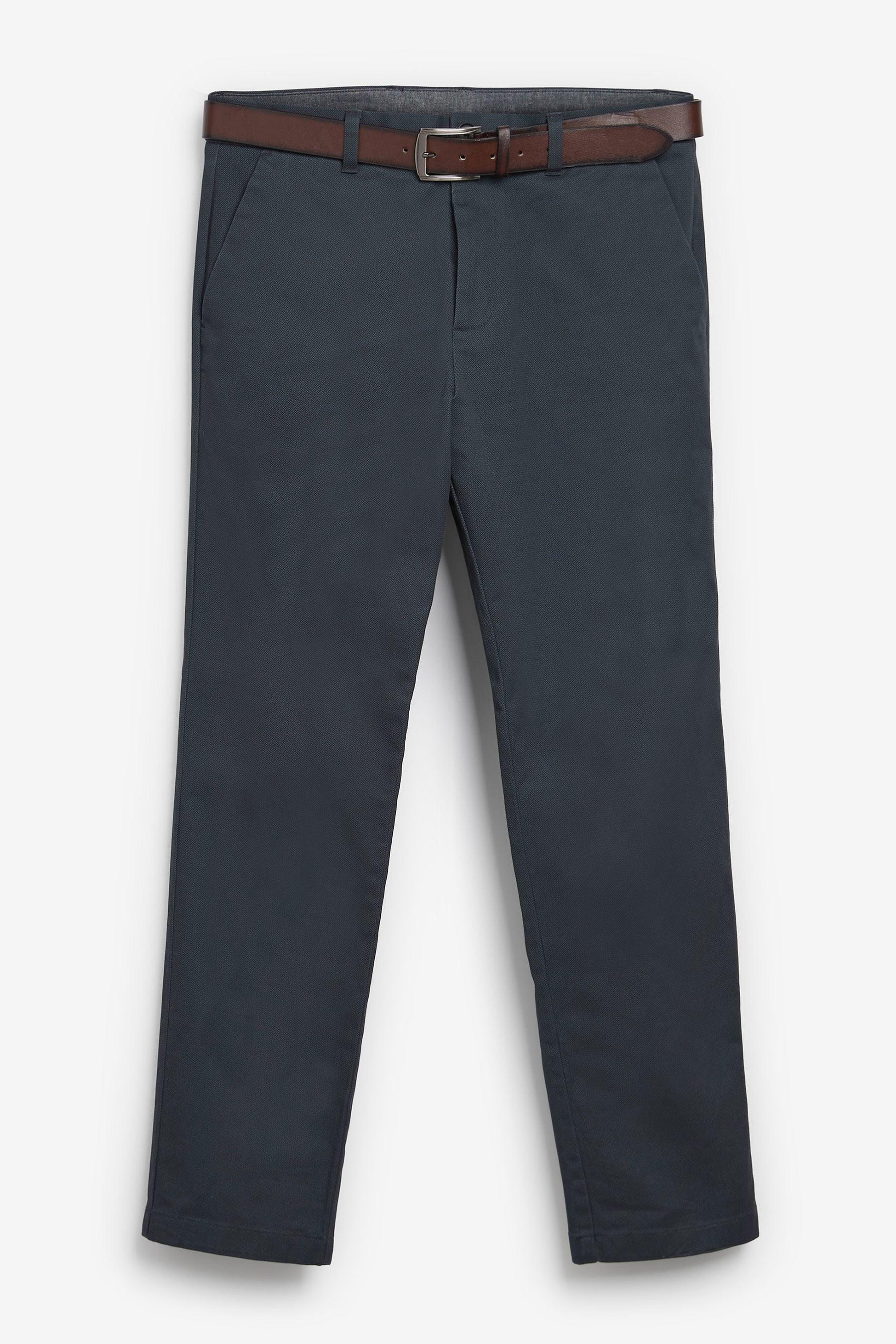 Navy Blue Straight Fit Printed Belted Soft Touch Chino Trousers