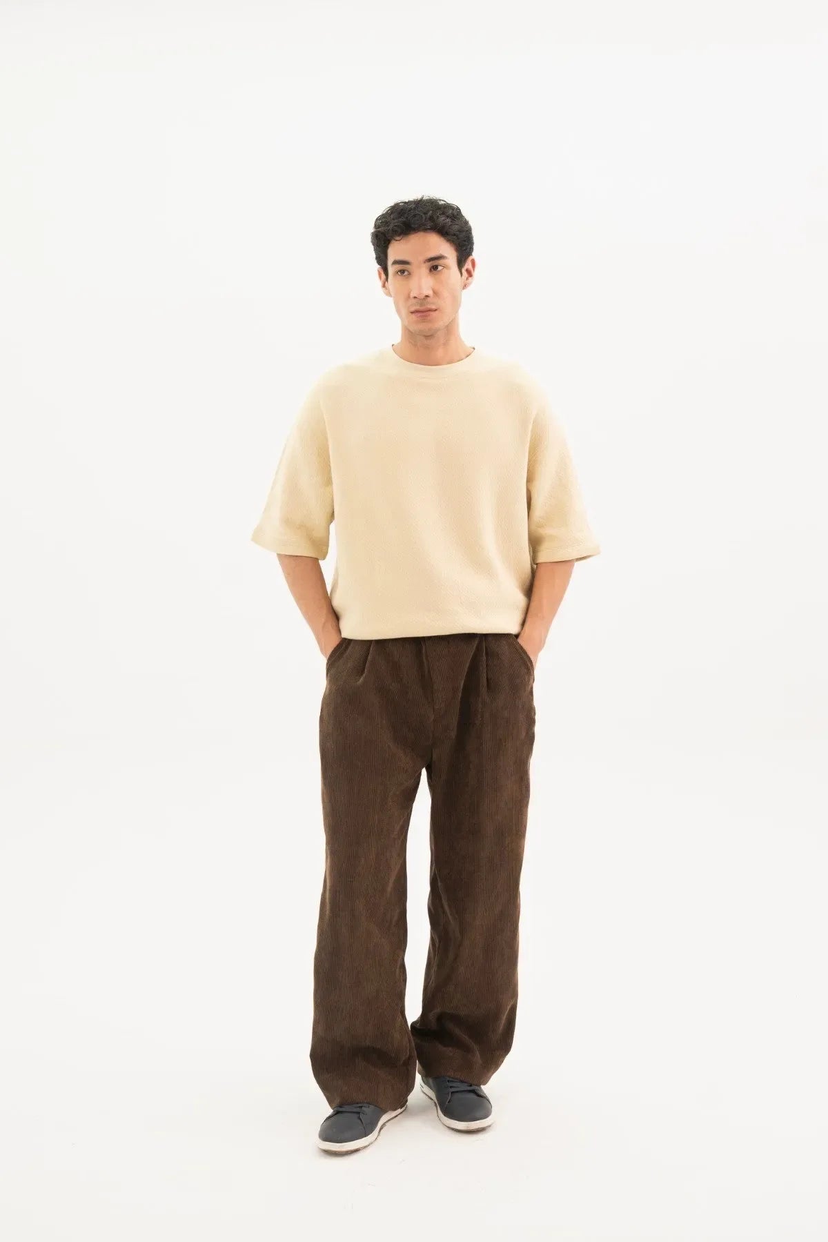 This T-shirt is made from textured jacquard fabric, which features woven pattern directly in the material for a subtle look and feel. It is cut in a very comfortable relaxed fit and includes a classic crew neck and easy half sleeves. In the soft, neutral wood ash color, this tee merges simple comfort with premium fabric texture, making it a distinctive piece for your daily rotation.