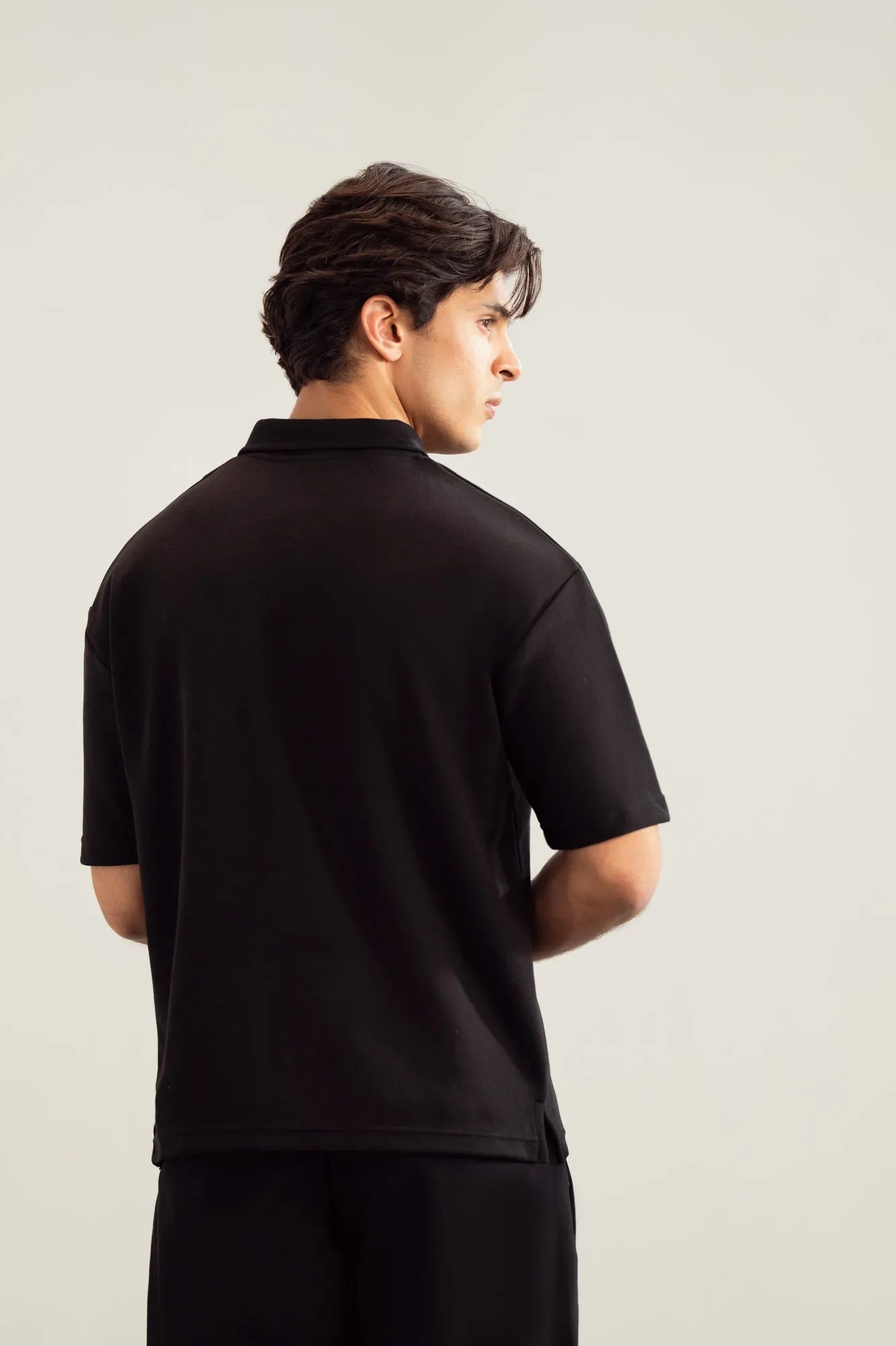 Black Interlock Zipper Polo - Boxy Fit - Men