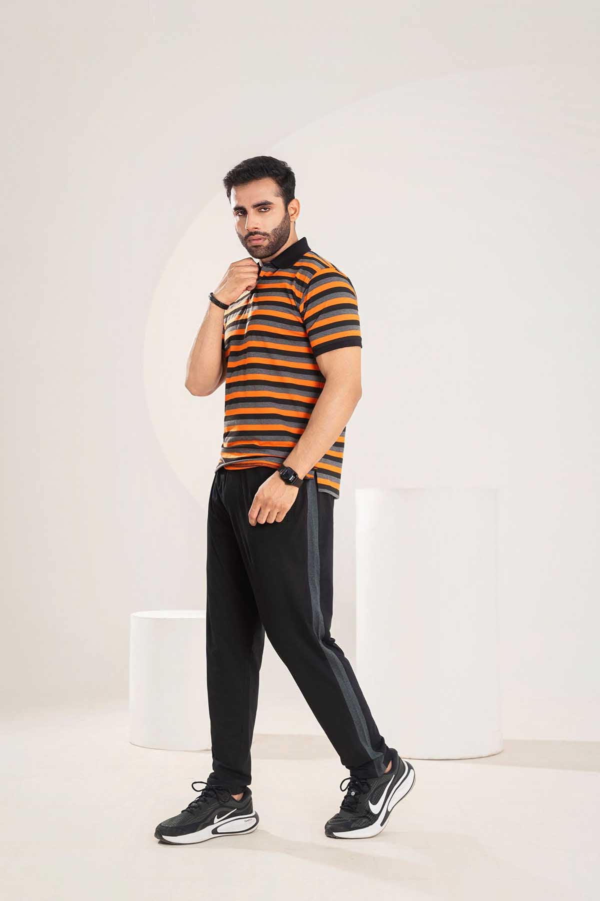 Men's Western Polo Shirt in vibrant Orange is crafted from premium Cotton for ultimate comfort during Summer Wear. The shirt features a classic polo design with a modern twist, making it perfect for both casual and semi-formal occasions. Stand out in style with this Cotton Stripper Polo from Buraq.