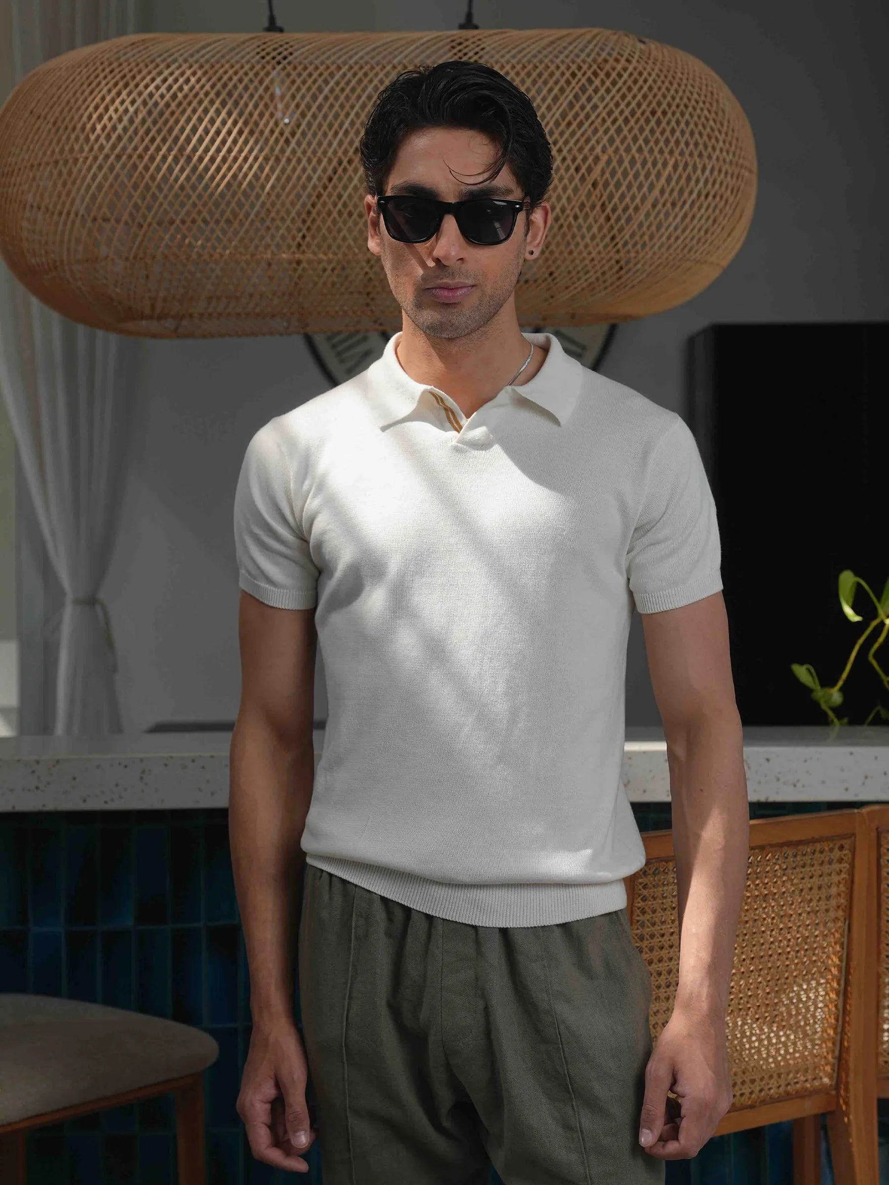 A refined take on a summer classic, this vanilla flat knit polo features a clean V-placket design for a modern, relaxed look. Crafted with a soft knit texture that feels comfortable and breathable, making it perfect for everyday wear. Pair it effortlessly with chinos or denim for a smart casual style.