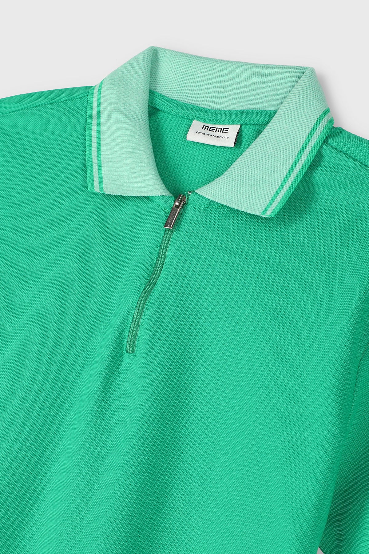 Polo With Contrasting Zippered Lapel Collar. Short Sleeves With Rib Trim.