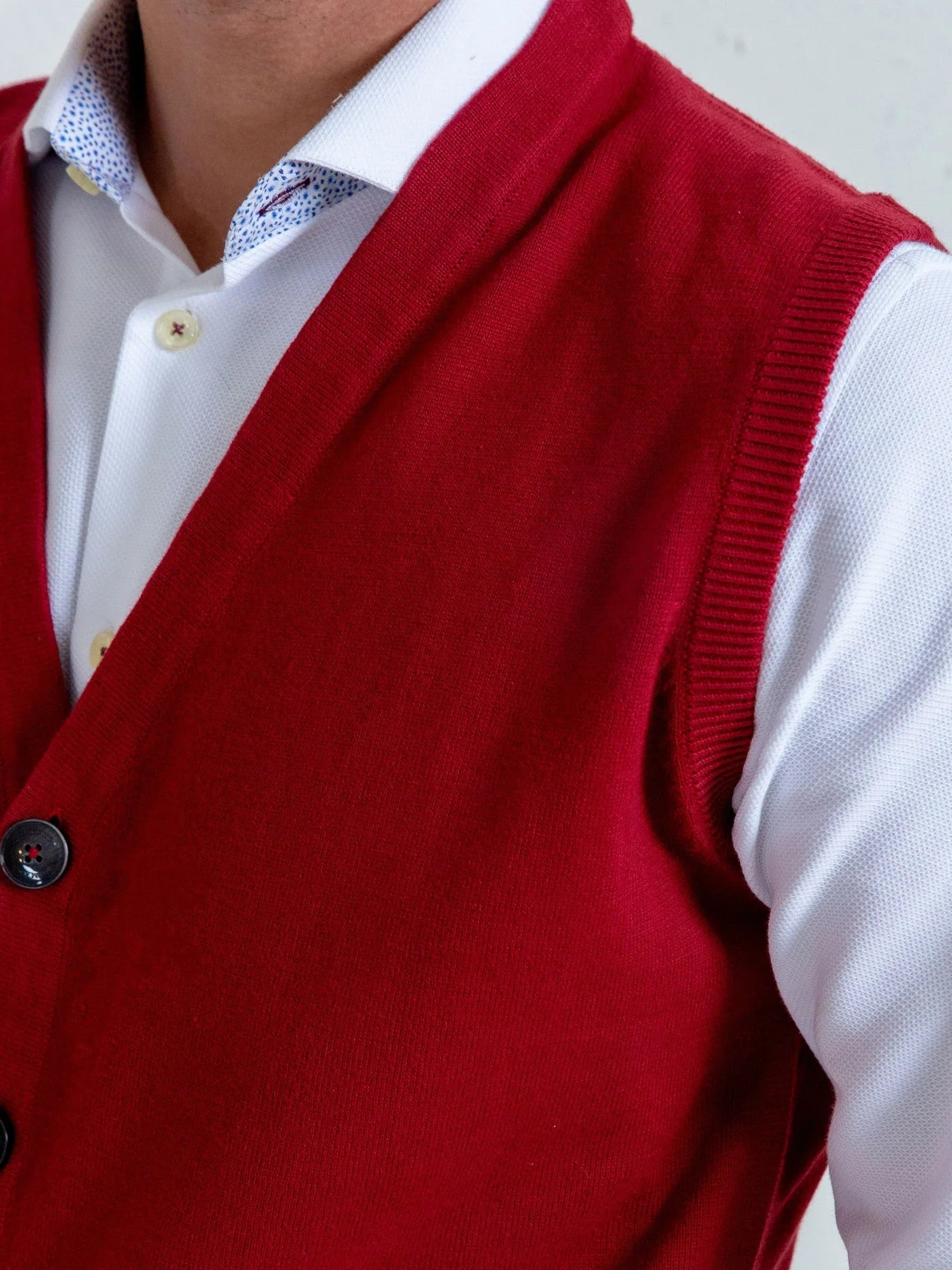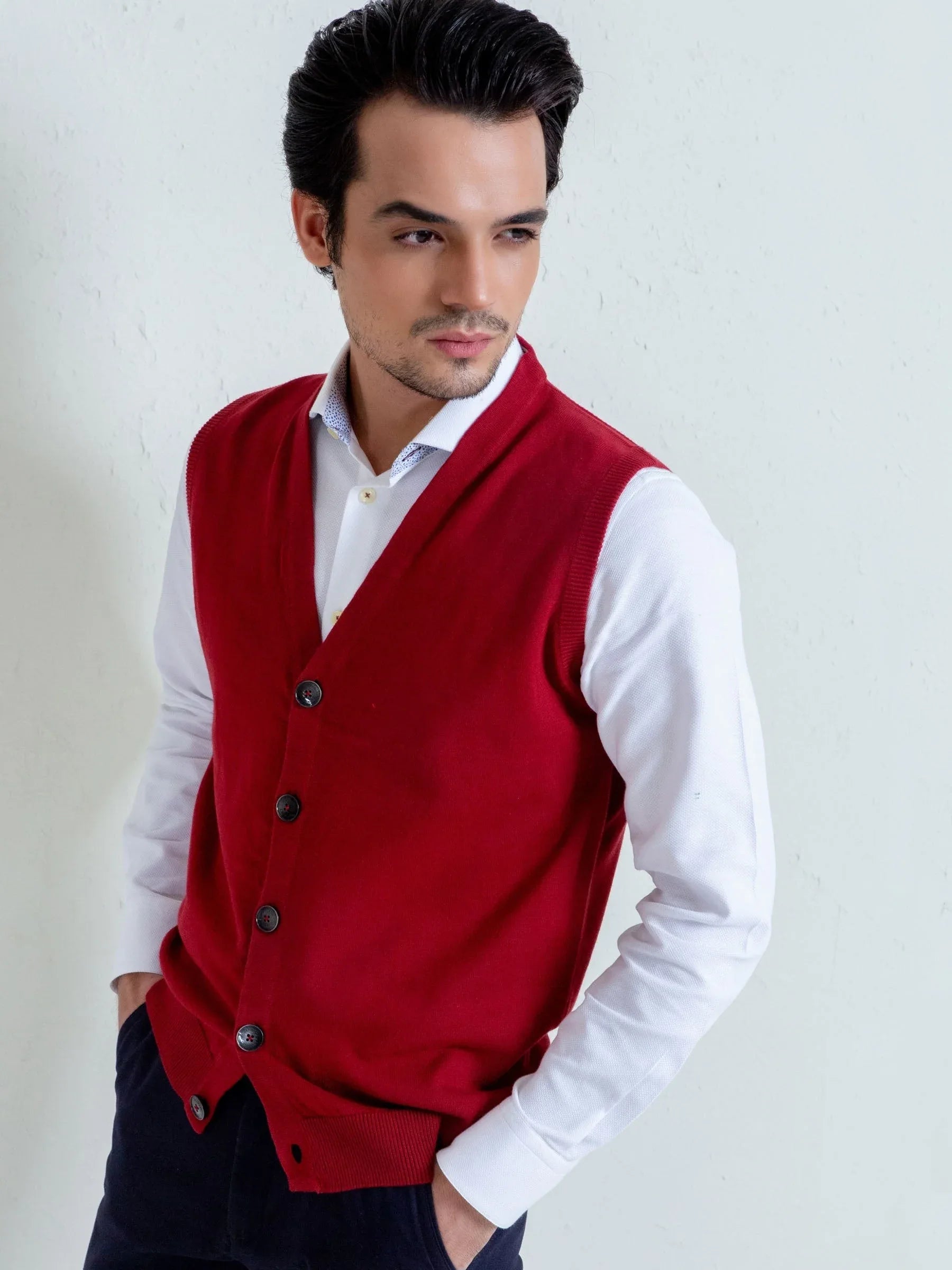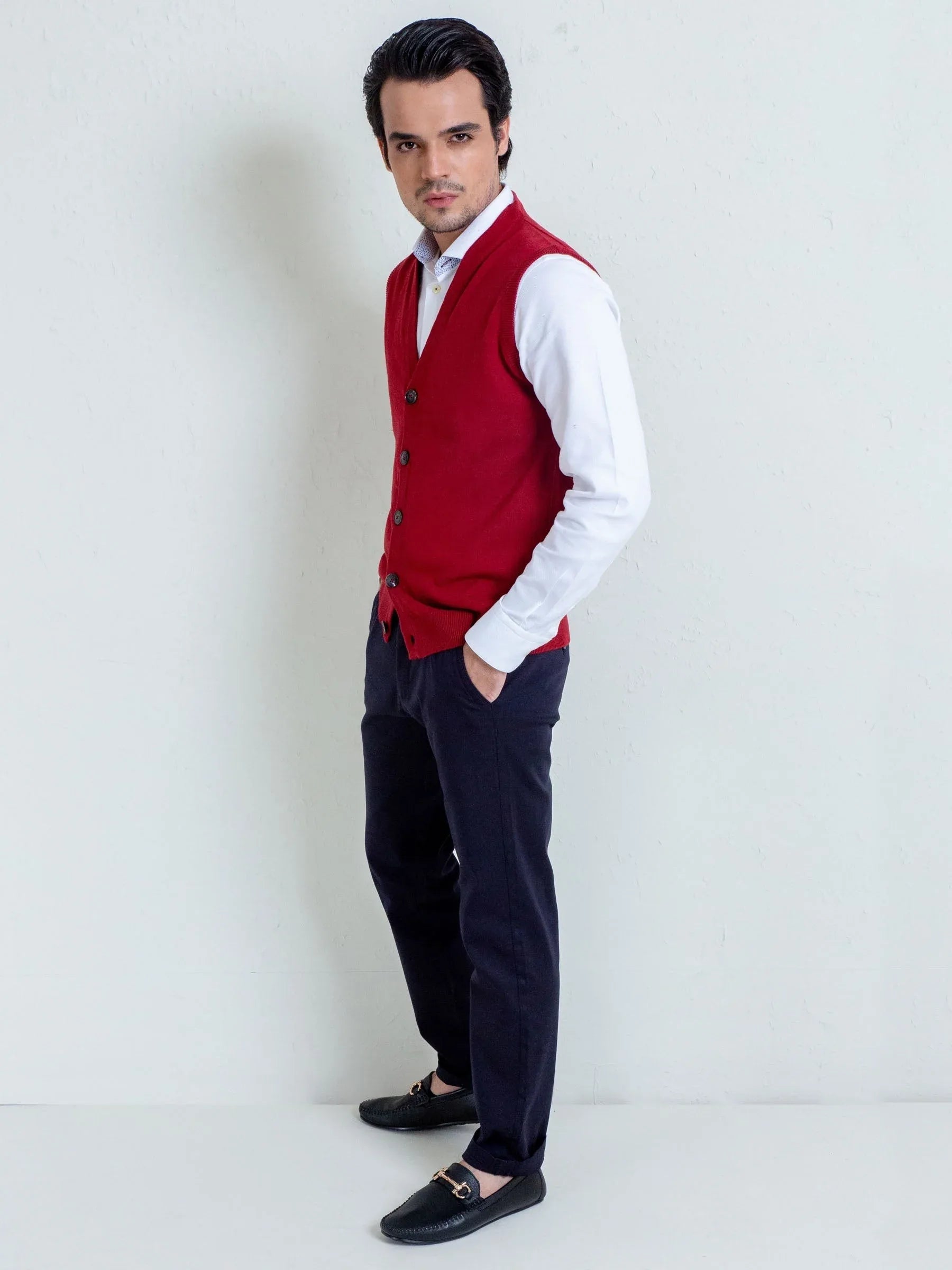 Give your wardrobe a stylish update with this maroon sleeveless button cardigan. It is made out of soft, high-quality yarn in button cardigan style & comes with ribbed trim at the cuffs and hemline