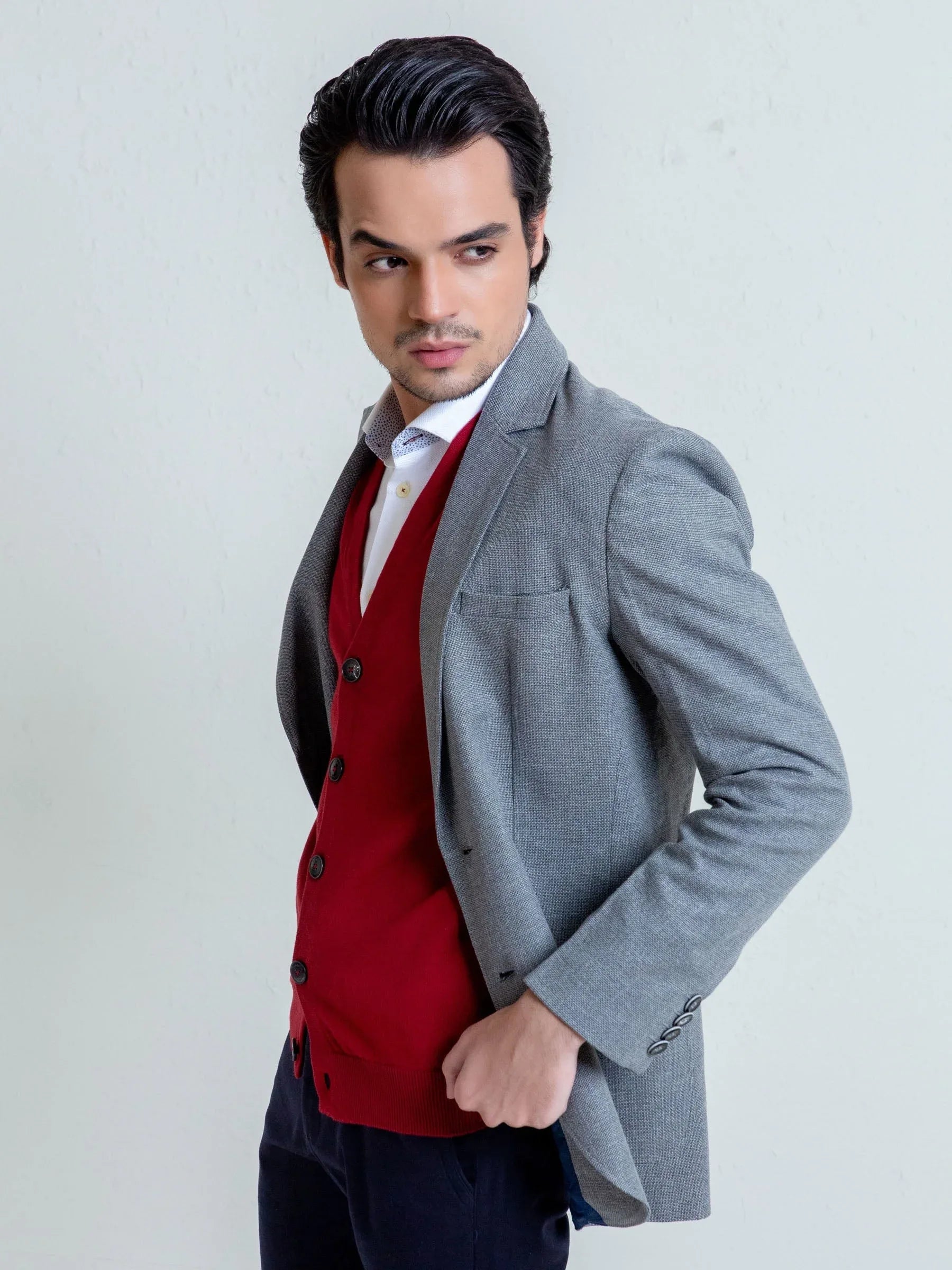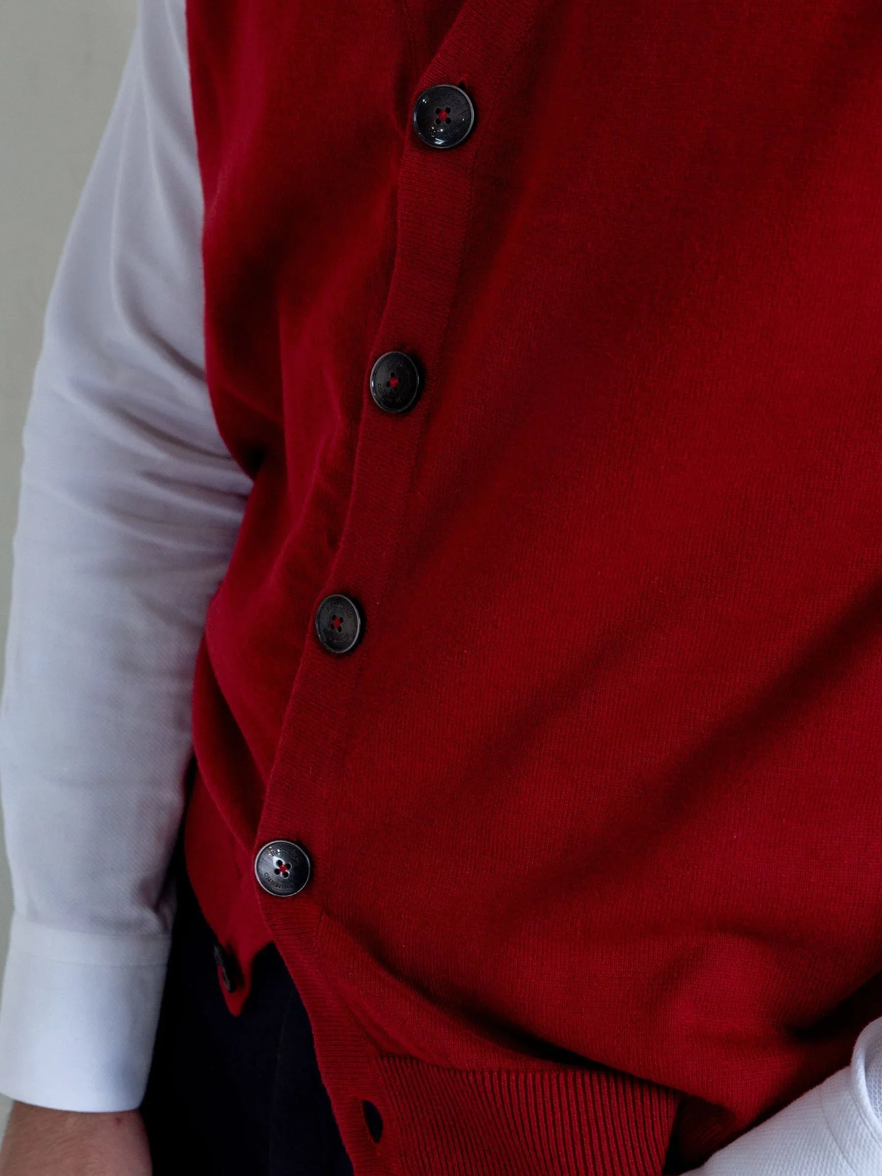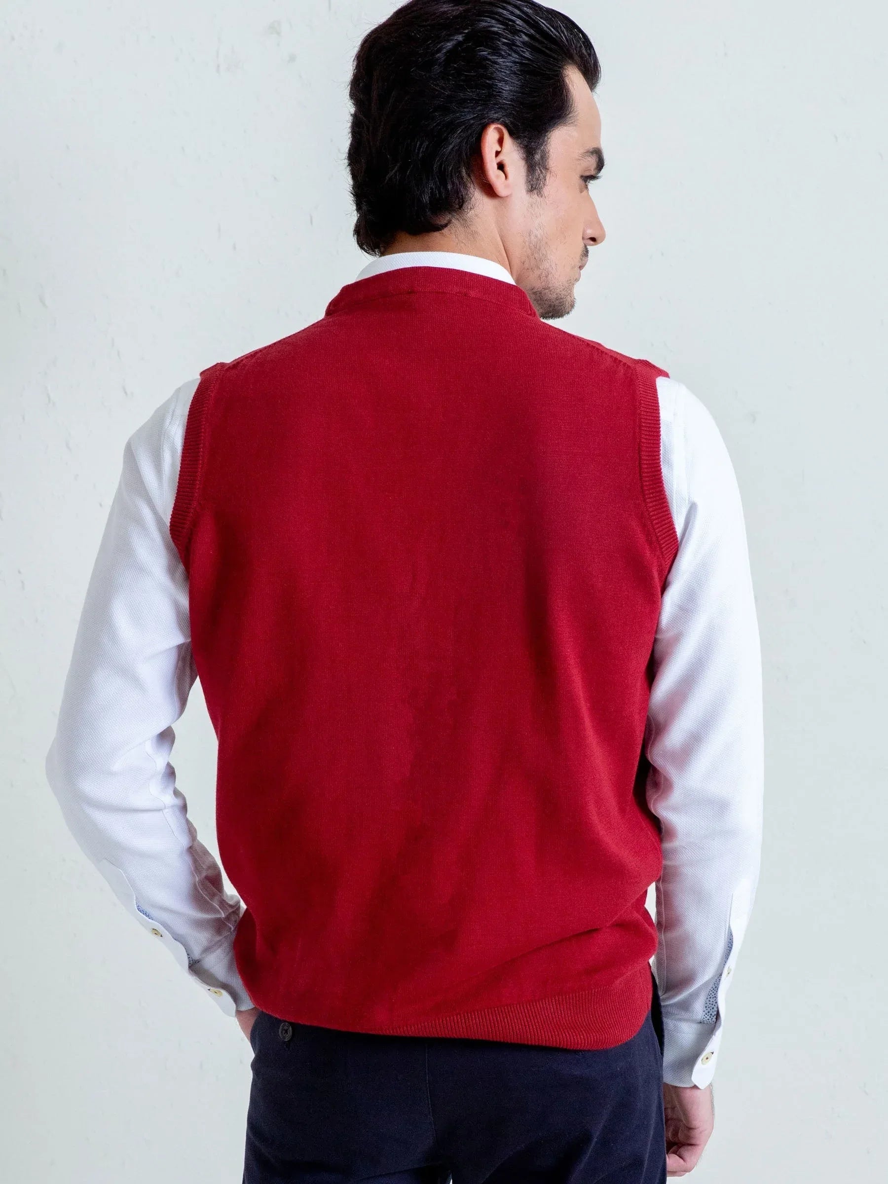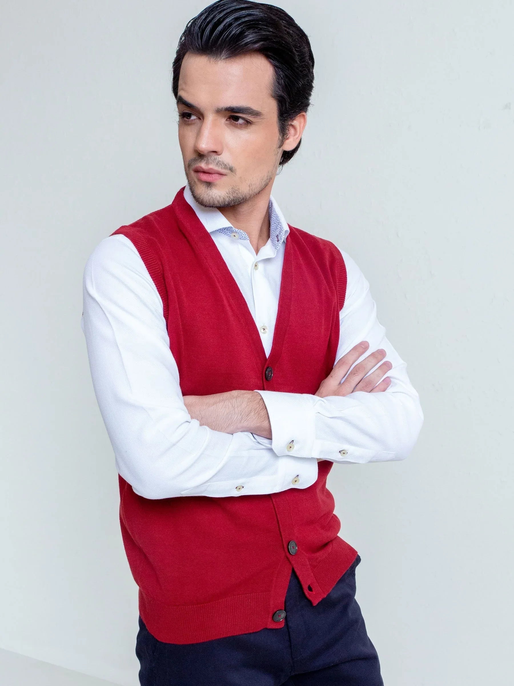 Give your wardrobe a stylish update with this maroon sleeveless button cardigan. It is made out of soft, high-quality yarn in button cardigan style & comes with ribbed trim at the cuffs and hemline
