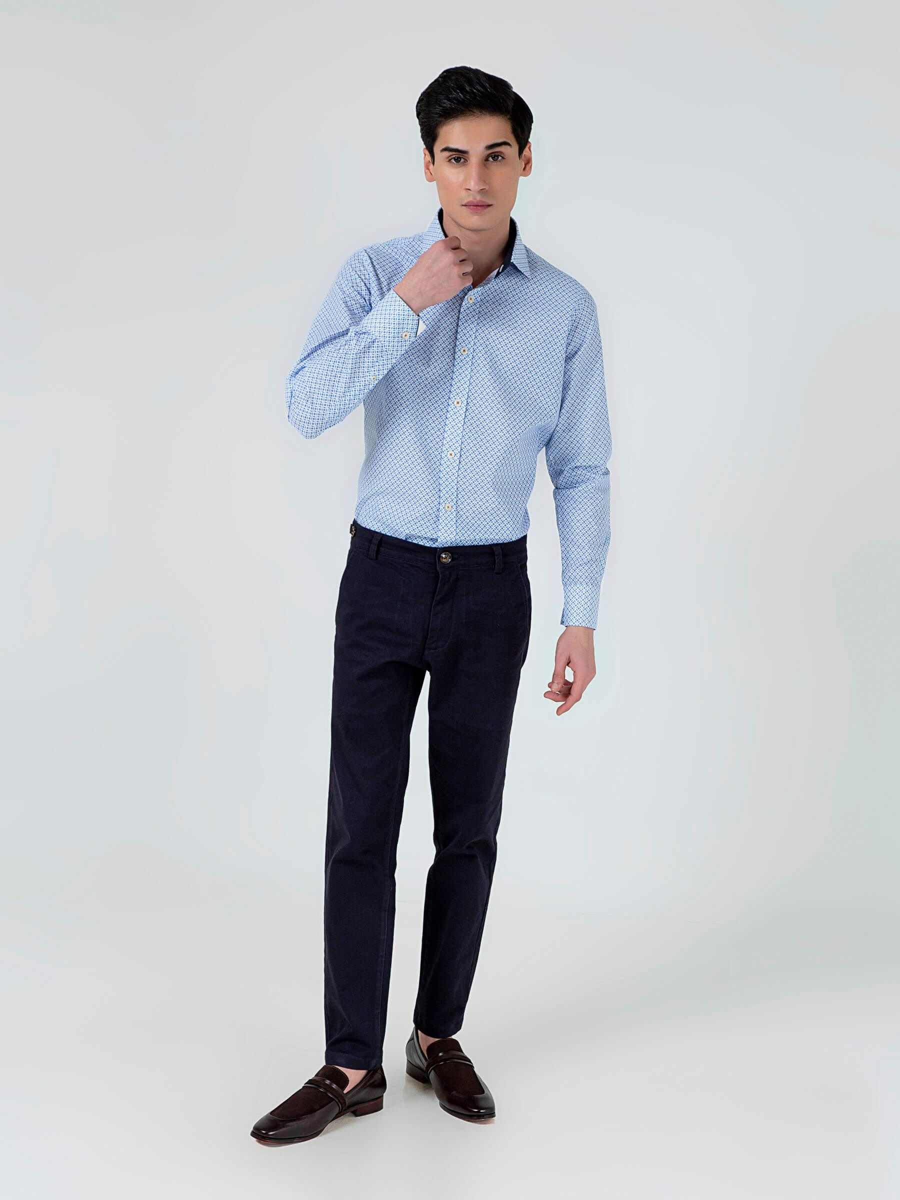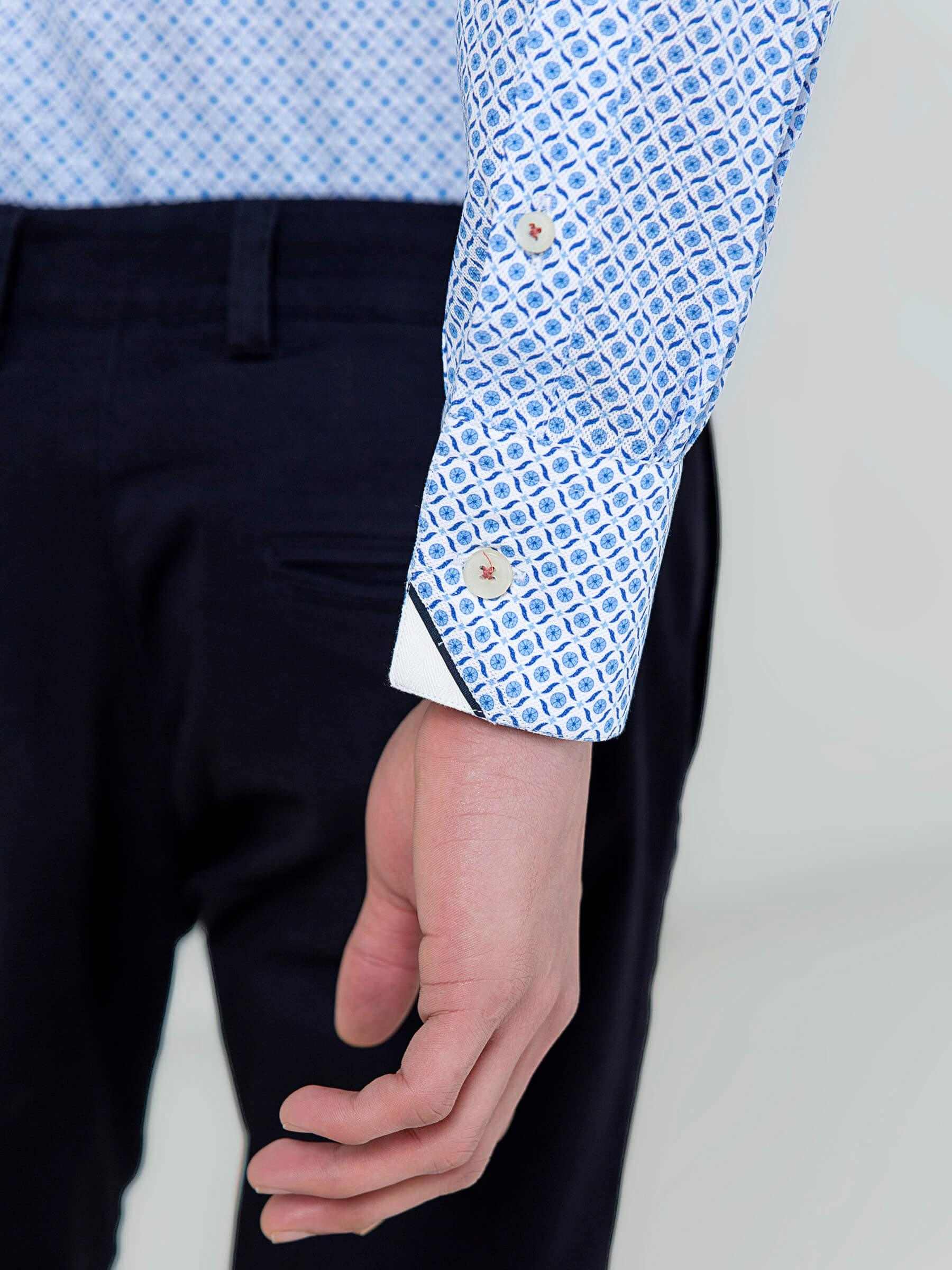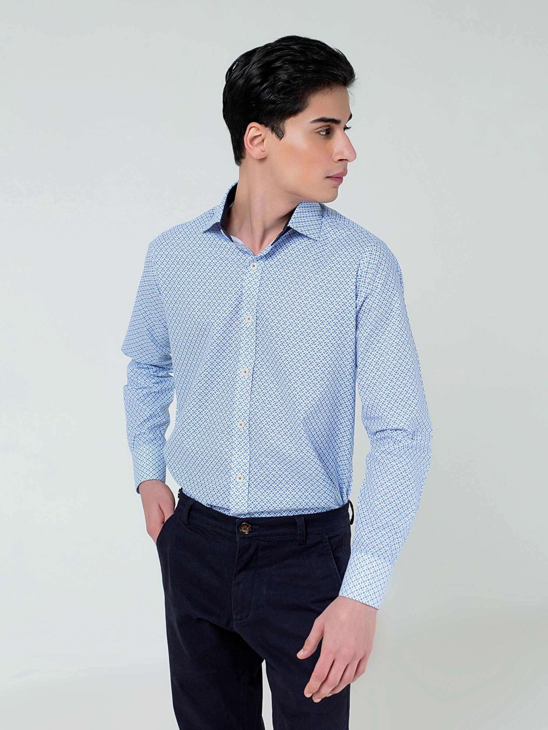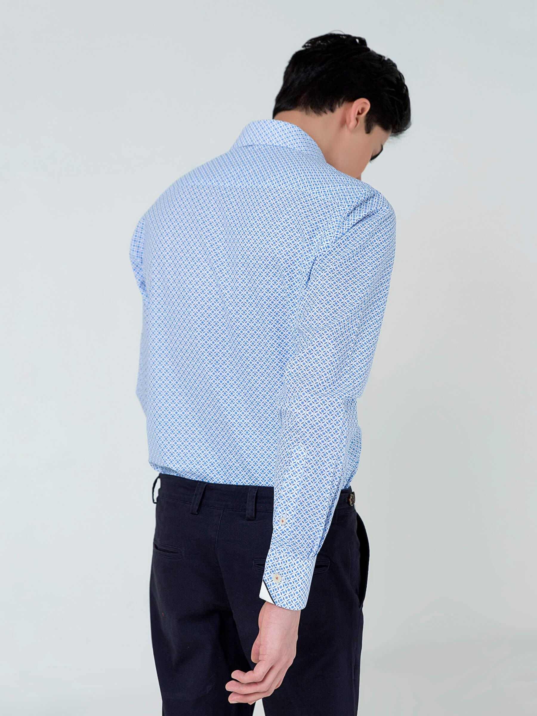 Add a bit of flair to your formal look with our geometric printed formal shirt from Luxury Print collectiom. Cut from high quality structured fabric, finished with contrasting collar detailing & branded buttons. This modern shirt will look great on its own