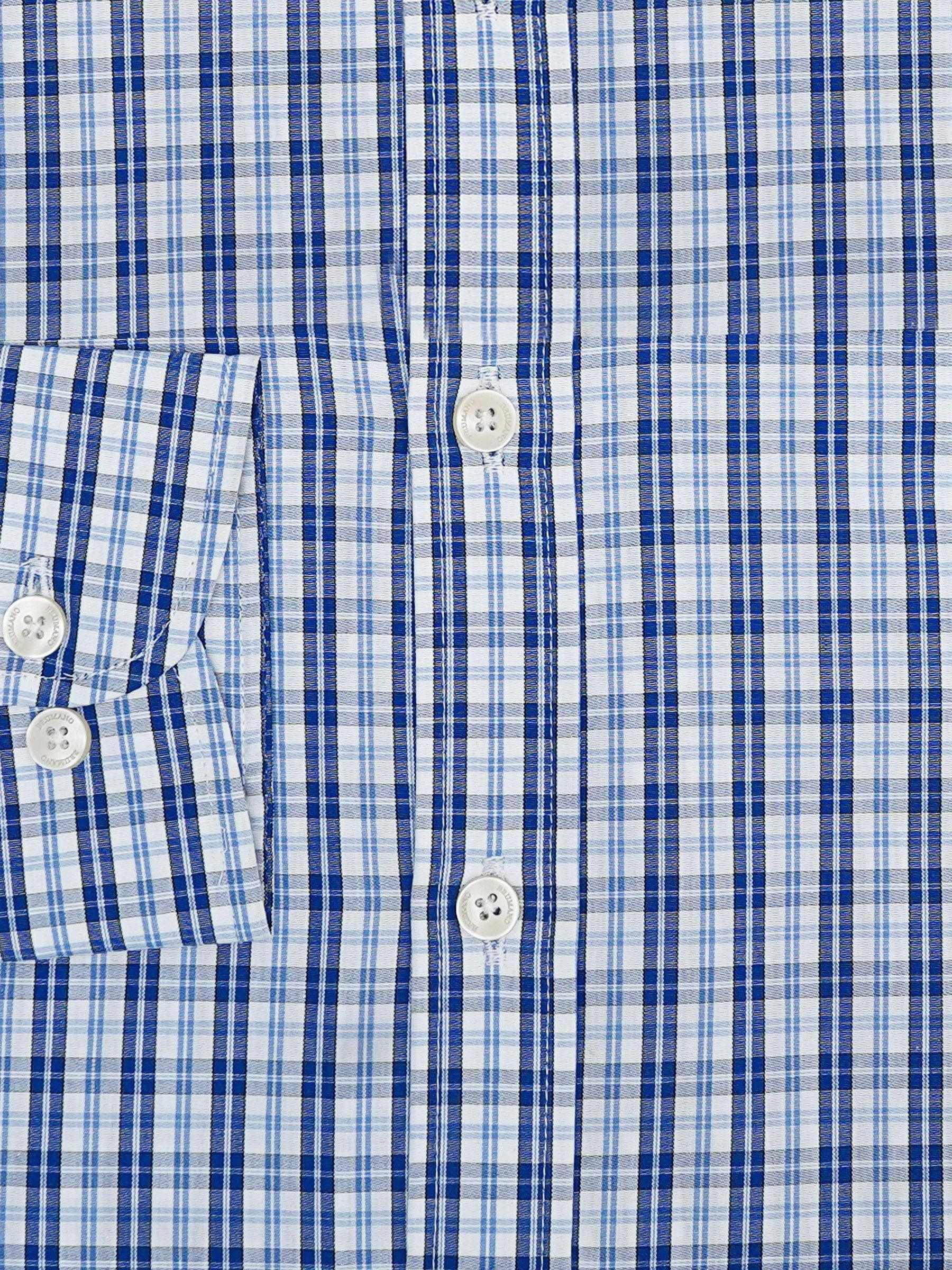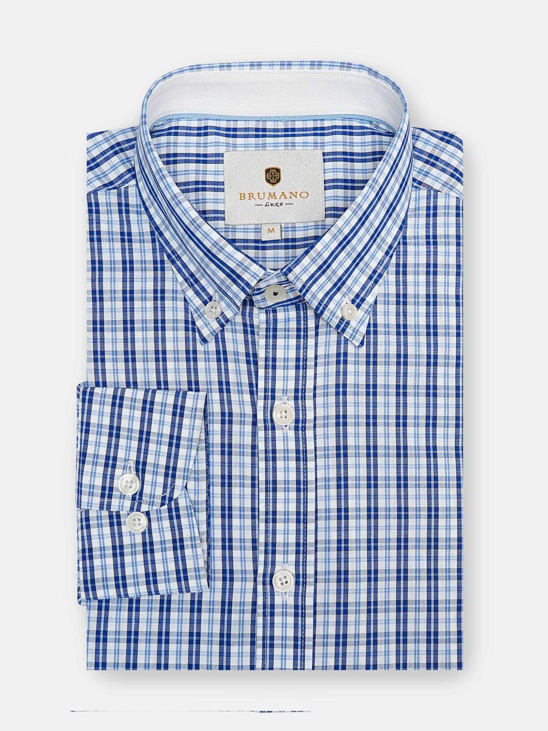 Everyday classic shirt from Luxe collection. This business shirt features blue & white gingham checks with button down collar, inner collar detailing & branded buttons. Made with super fine fabric