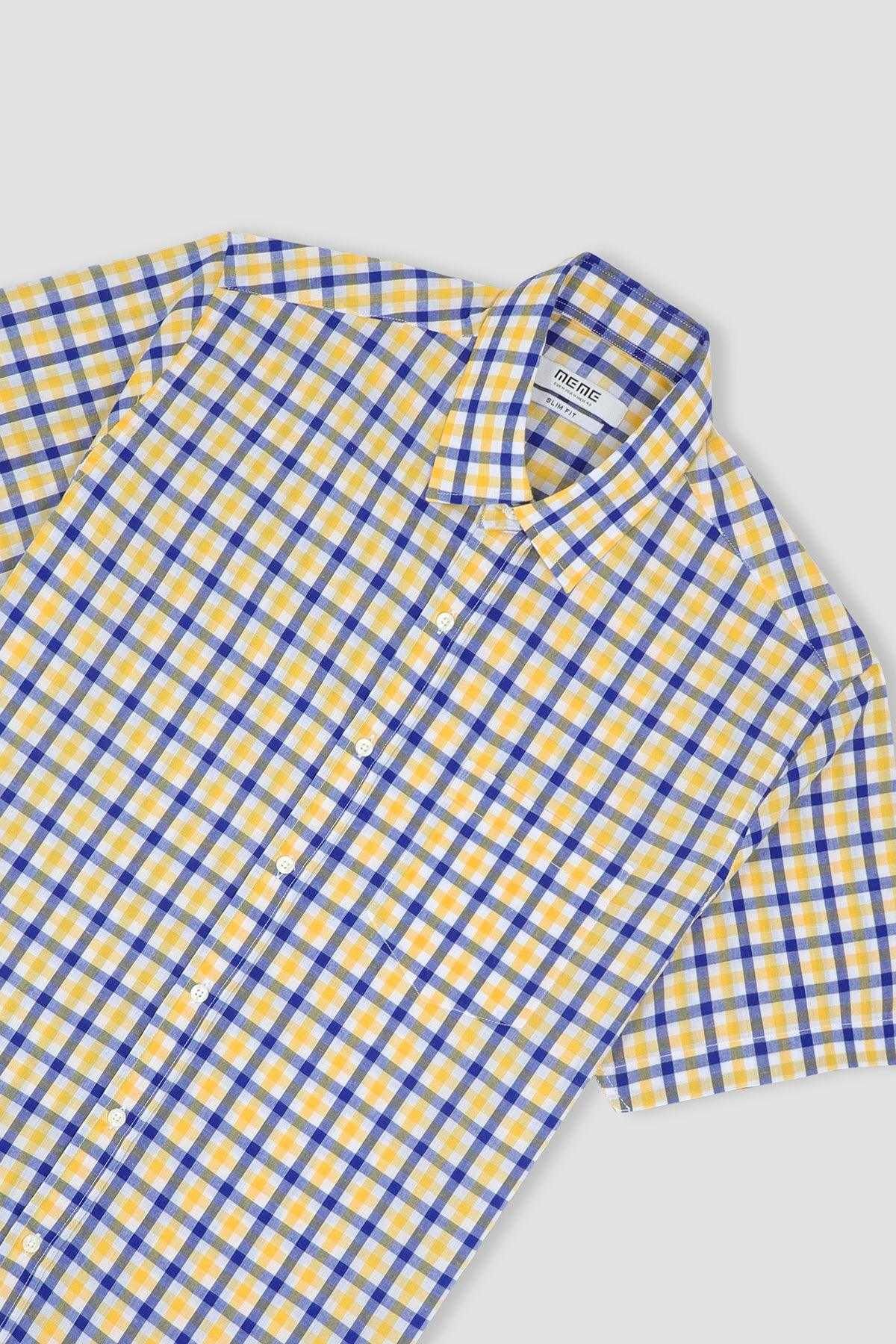 Blended. Comfortable Checkered Button Down With Regular Collar. Featuring Short Sleeves And Front Pocket.