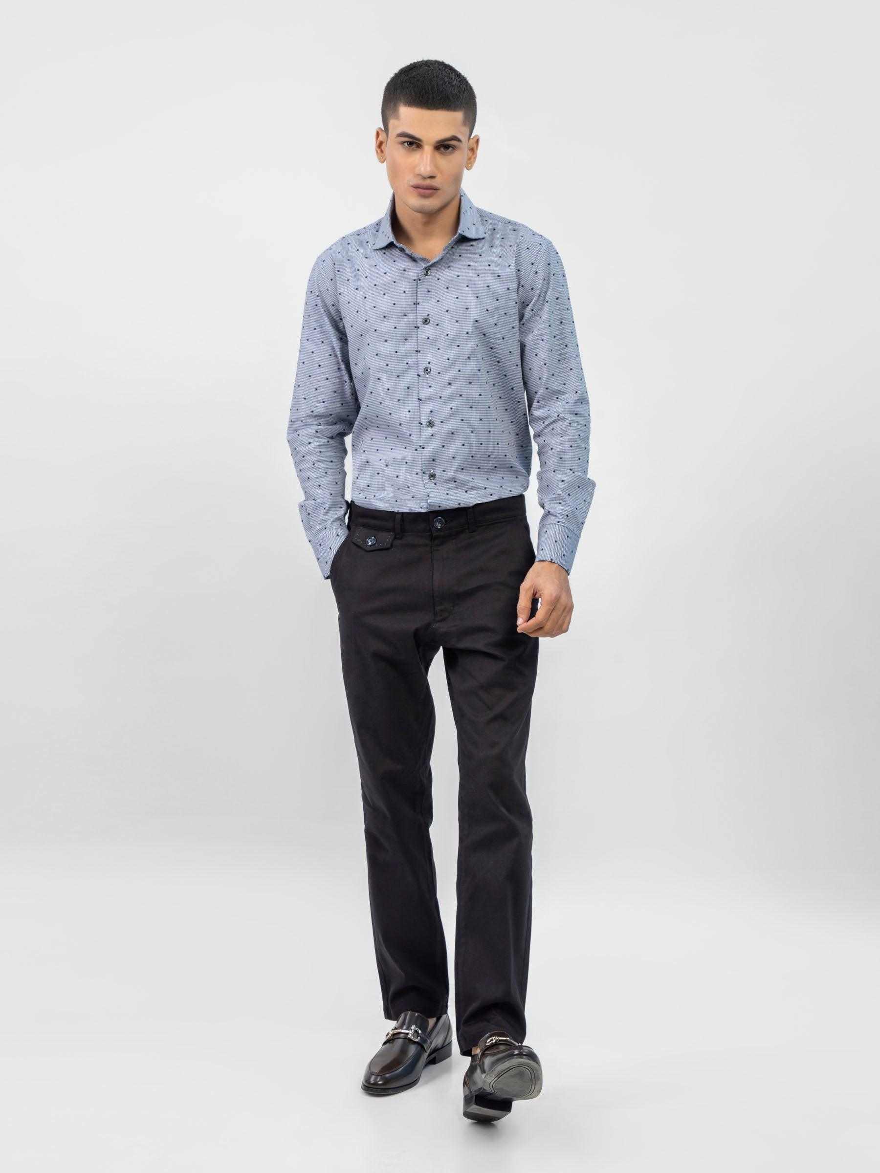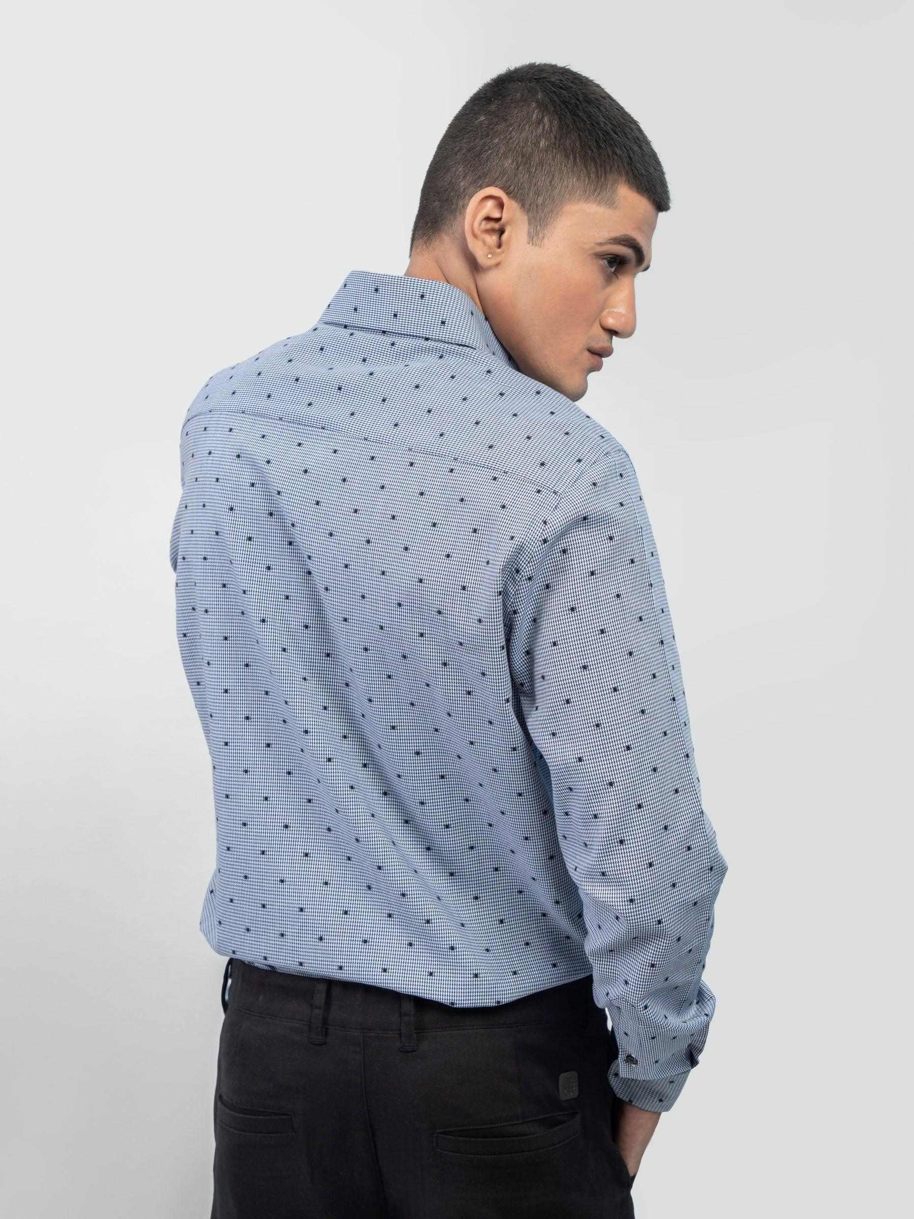 Elevate your summer ensemble with our mens dark grey houndstooth pattern with fil coupe. Long sleeves, shallow collar & branded button completes the look of this smart casual shirt. Perfect for both casual outings and semi-formal events, it's a versatile addition to any wardrobe.