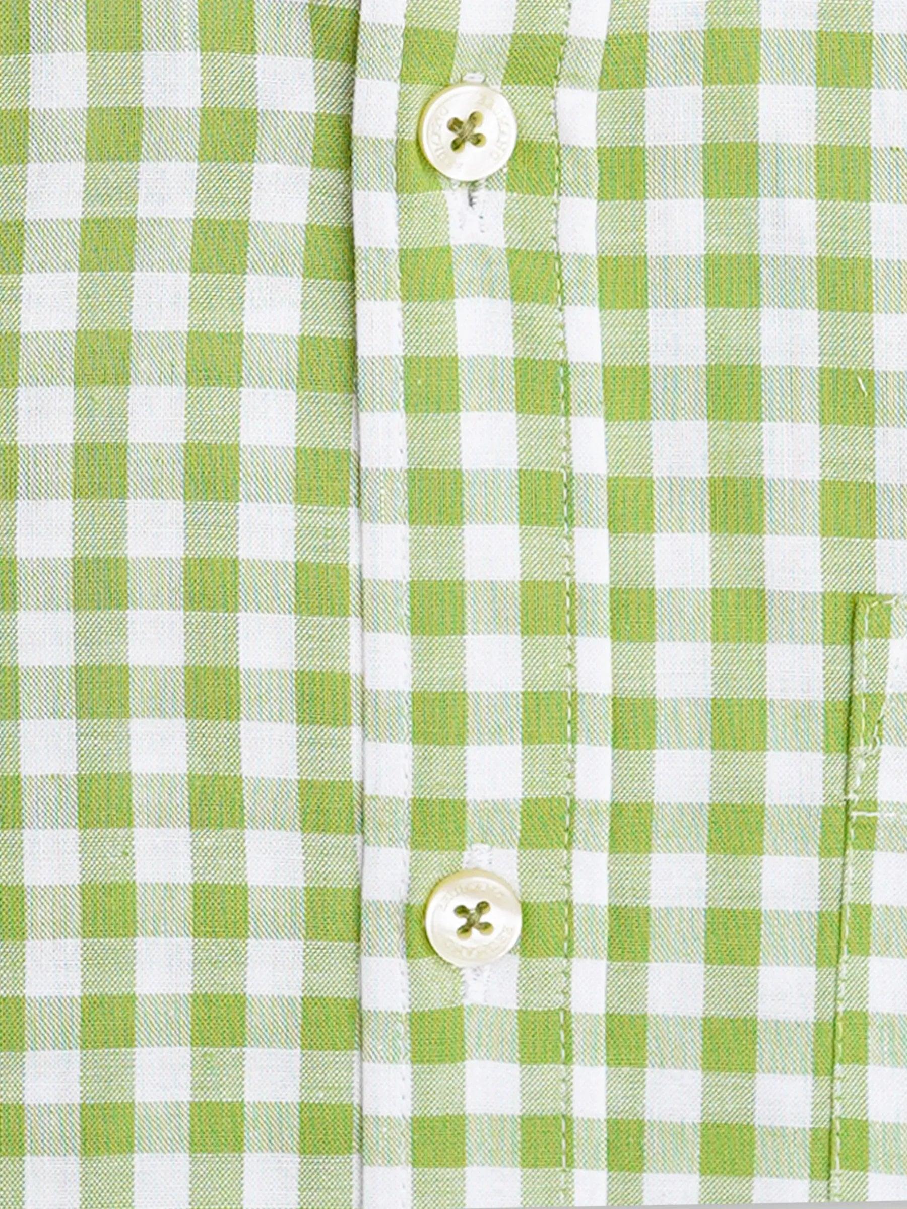 Will the green gingham pattern fade after washing? The fabric is colorfast, but we recommend washing it in cold water and drying it in the shade to maintain the vibrant green color.