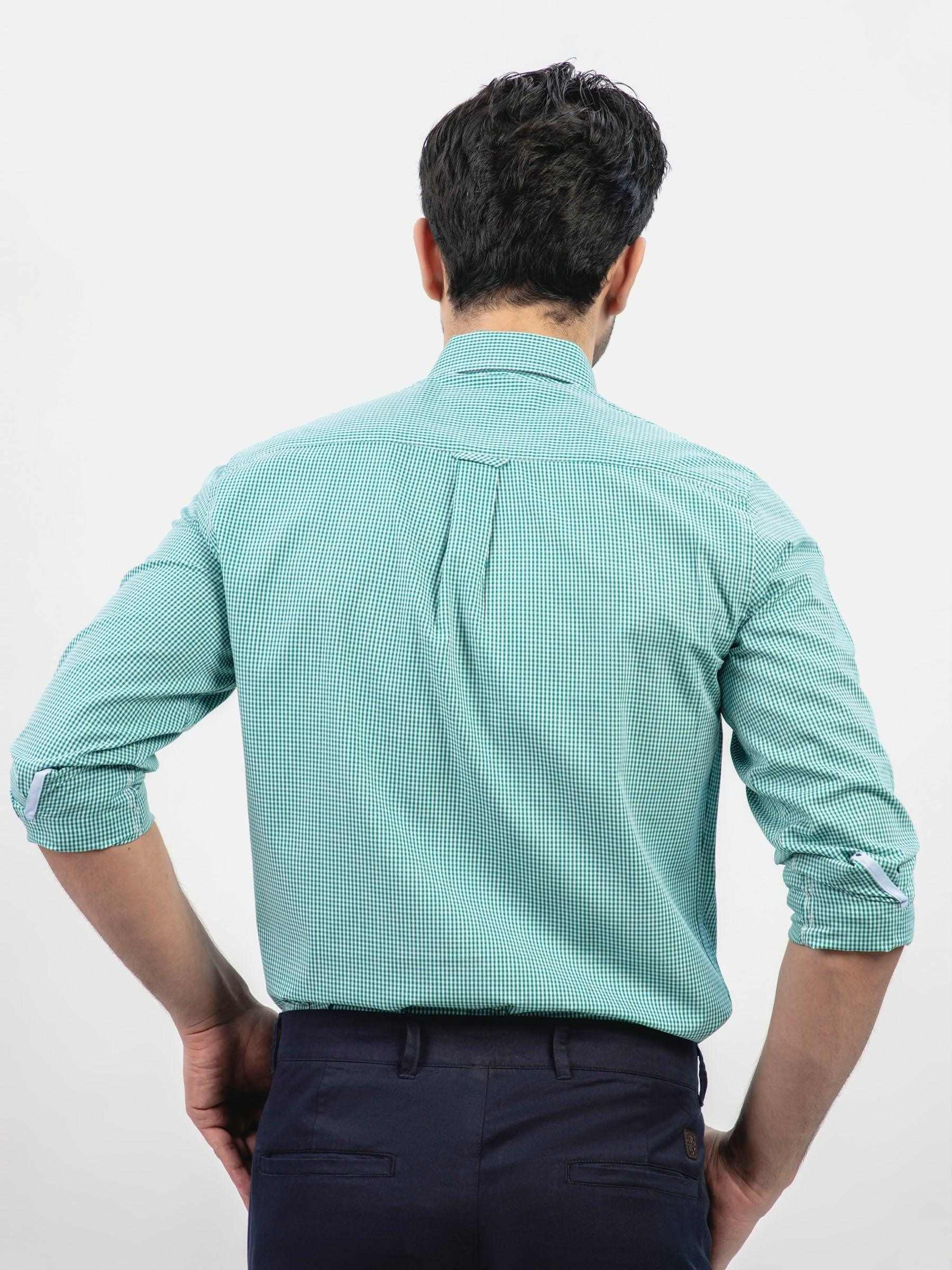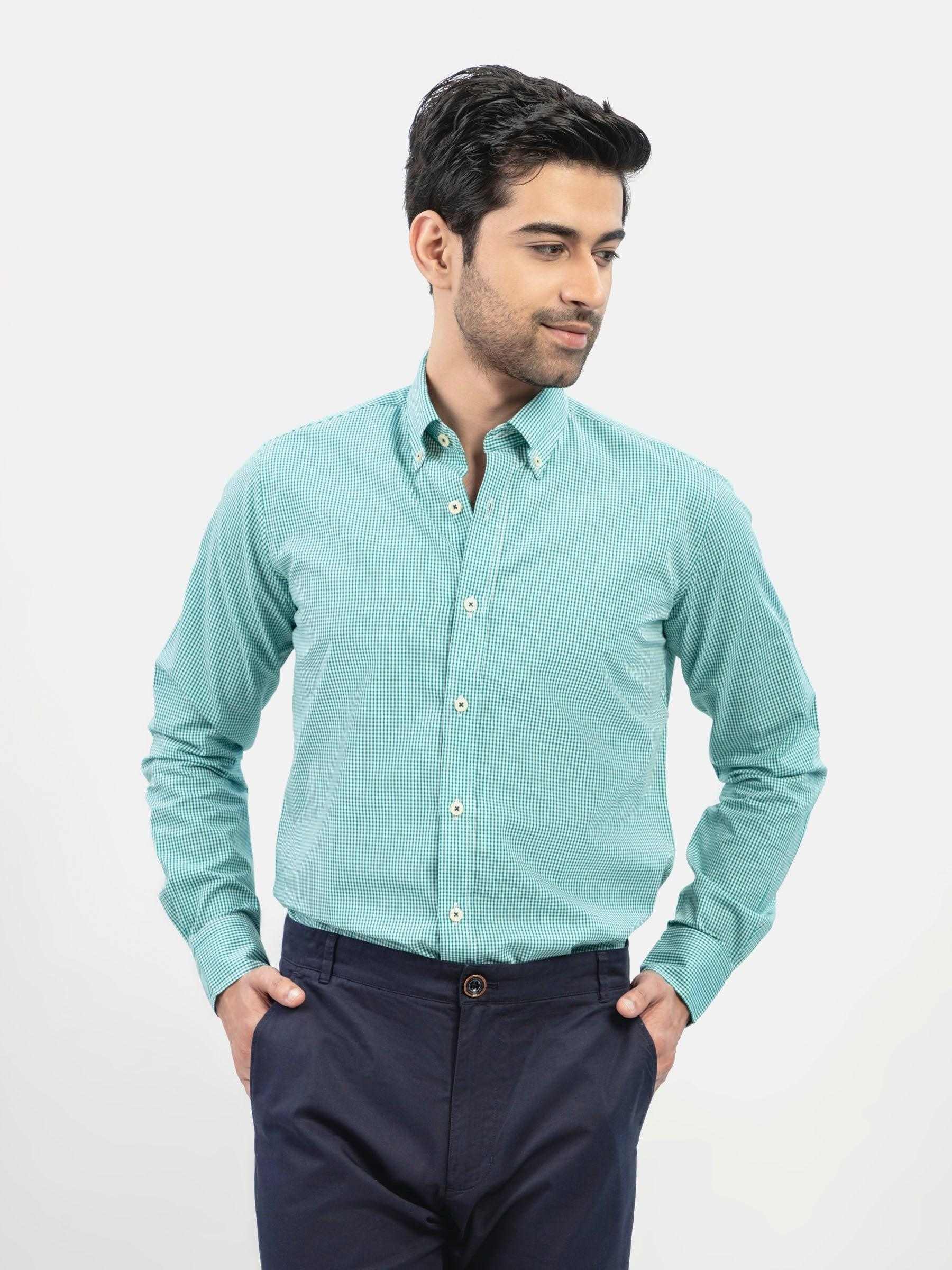 Elevate your smart casual ensemble with our mens green gingham button down shirt, boasting a refreshing light green color that exudes laid-back charm. Featuring a button-down collar, this shirt seamlessly blends casual comfort with polished style. Pair it with navy blue chinos for a perfect look