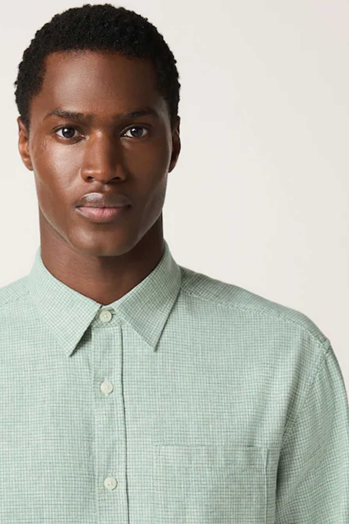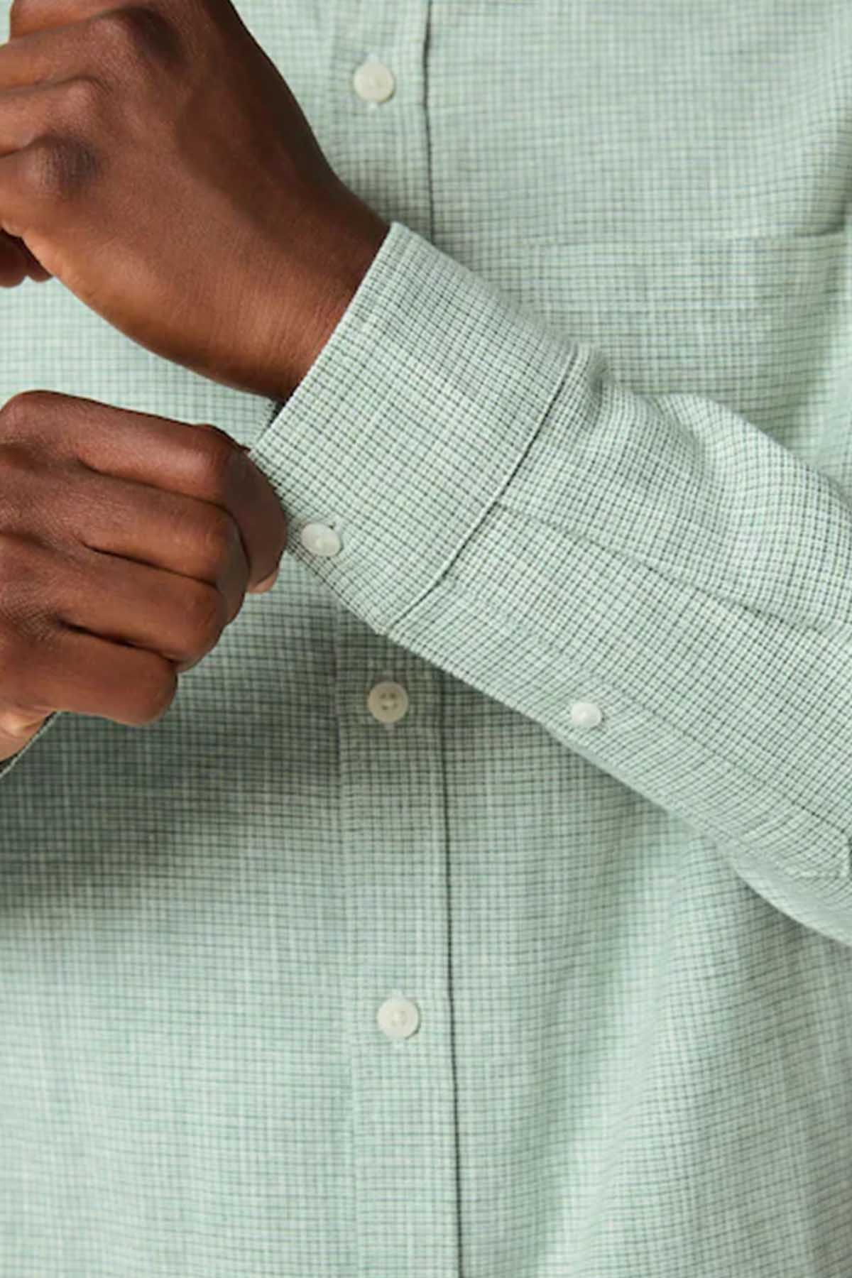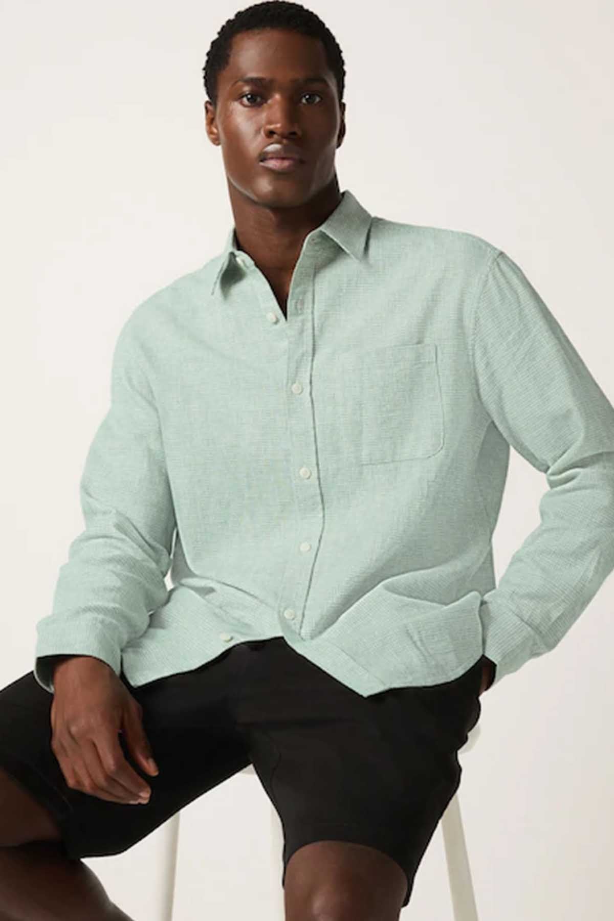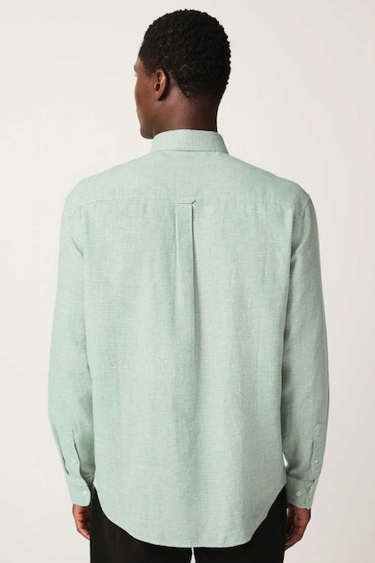 Green Standard Collar Cotton Linen Blend Long Sleeve Shirt