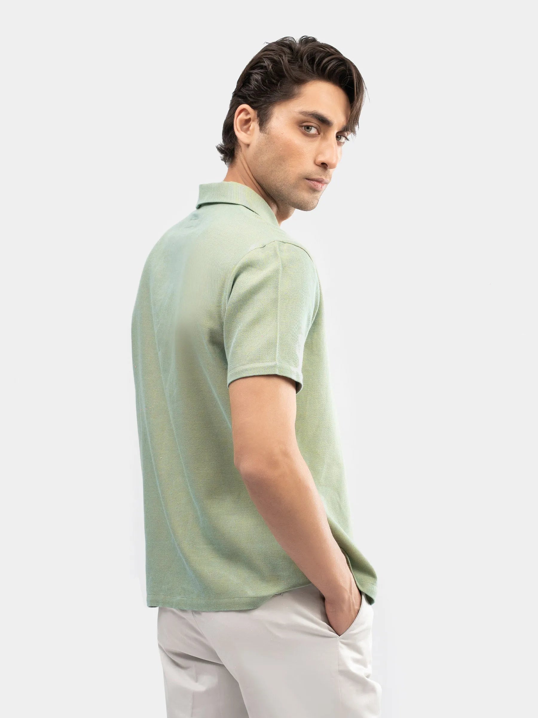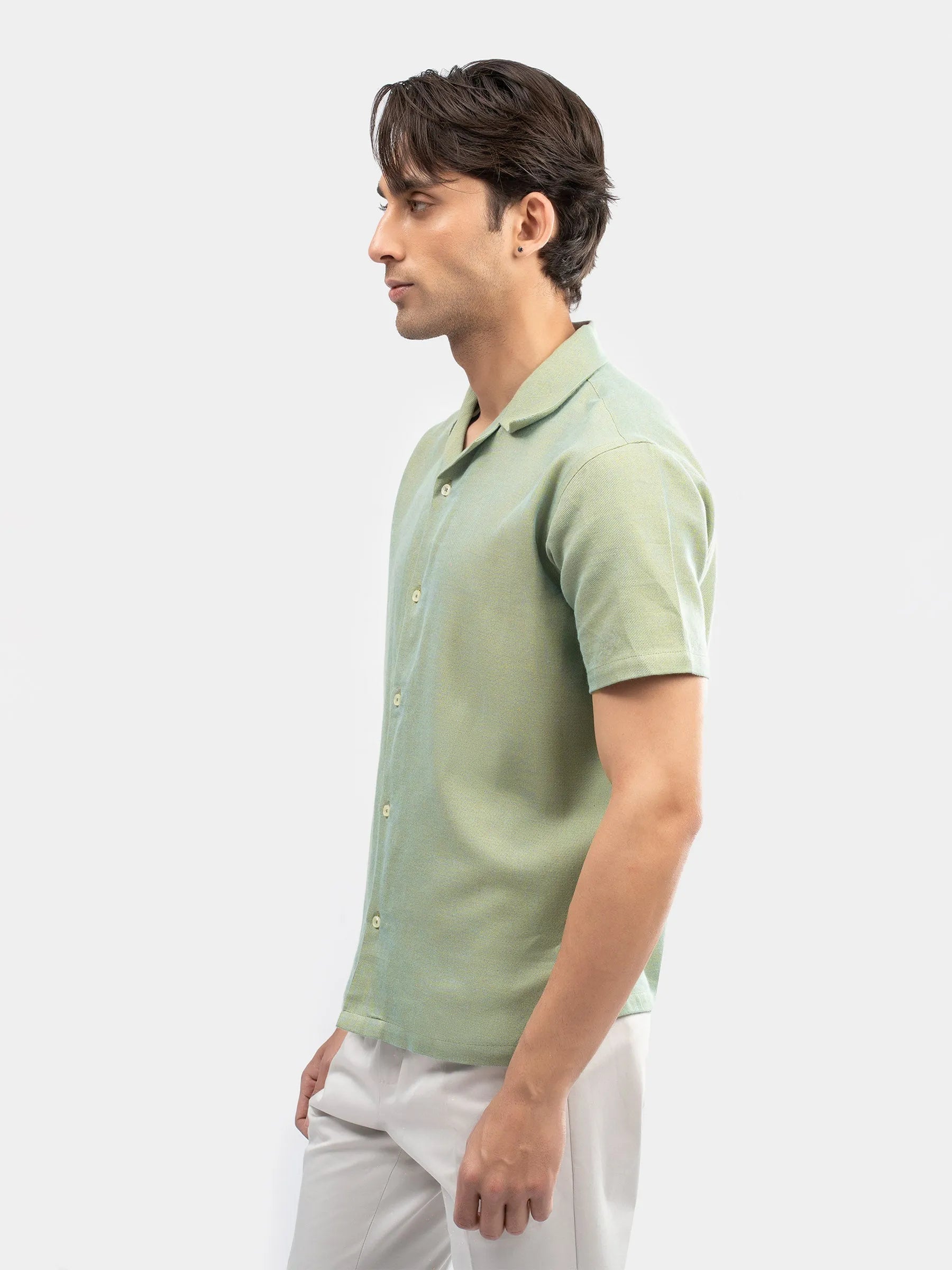 Bring easy summer style to your wardrobe with this green two tone cuban collar shirt. Designed with a relaxed fit and lightweight fabric, it offers comfort and a laid-back look perfect for warm days. The Cuban collar adds a modern touch, making it ideal to pair with chinos, shorts, or denim for a smart casual outfit.