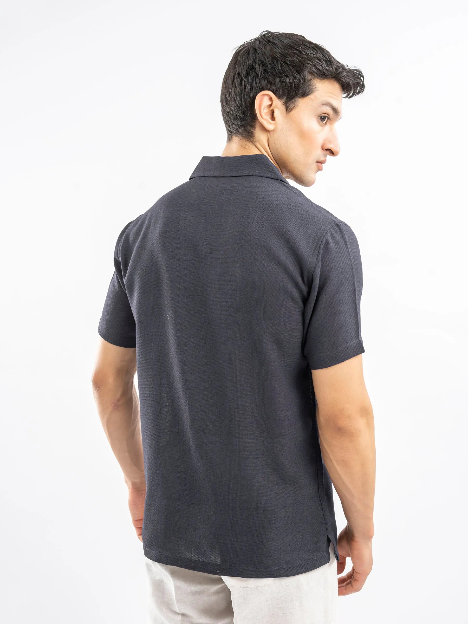 Grey Linen Blended Half Sleeve Cuban Collar Shirt