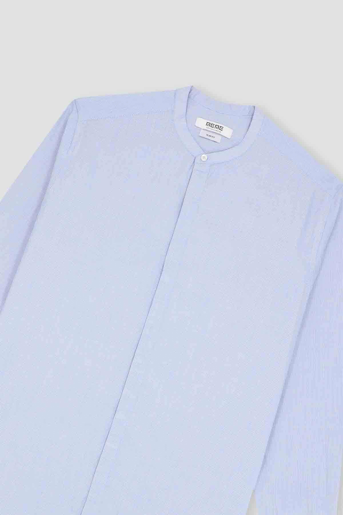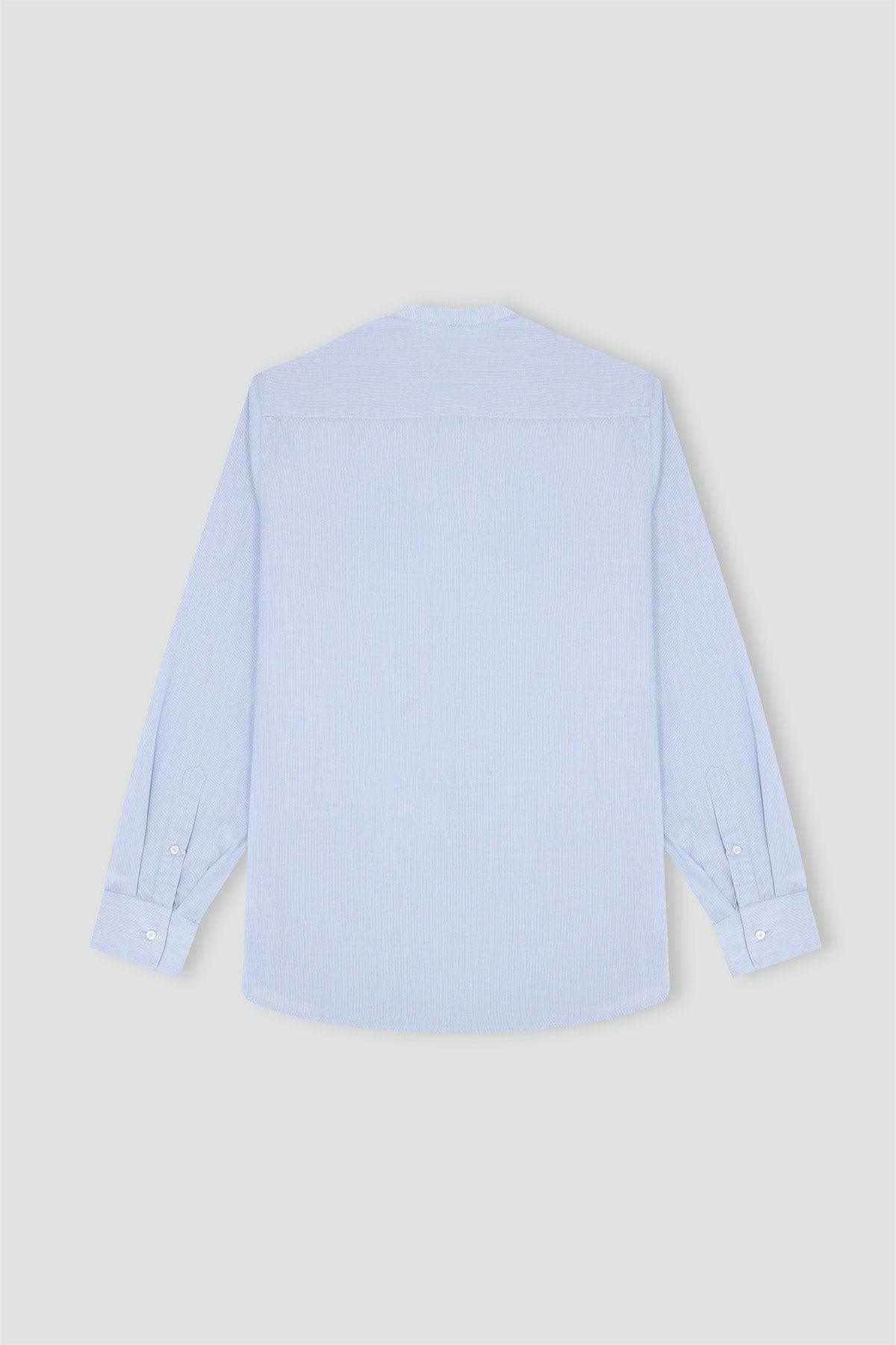 Poly Cotton. 65% Cotton 35% Polyester. Formal Striped Button Down Shirt. Slim Fit. Basic Collar. Long Sleeves With Cuffed Hem.