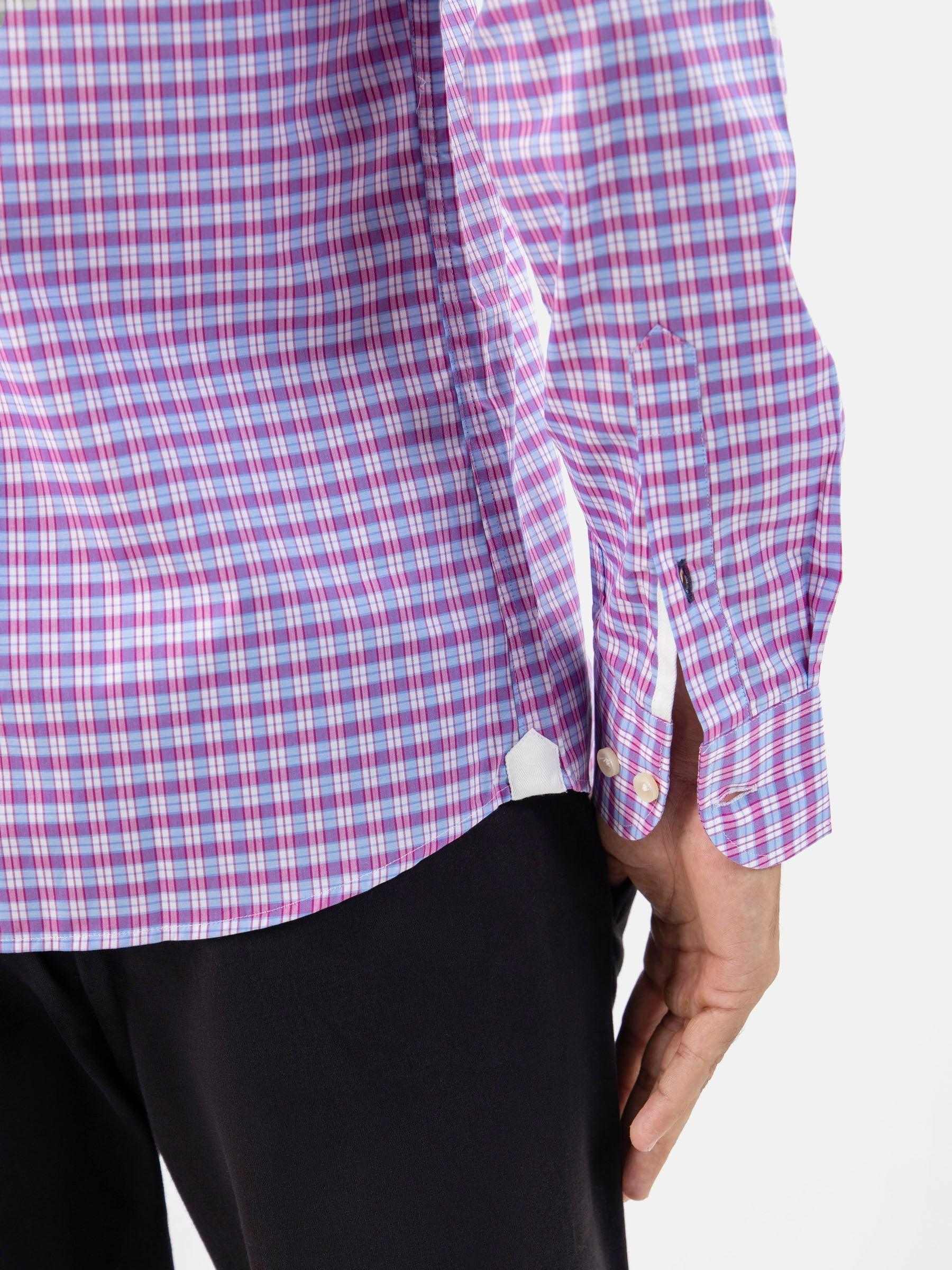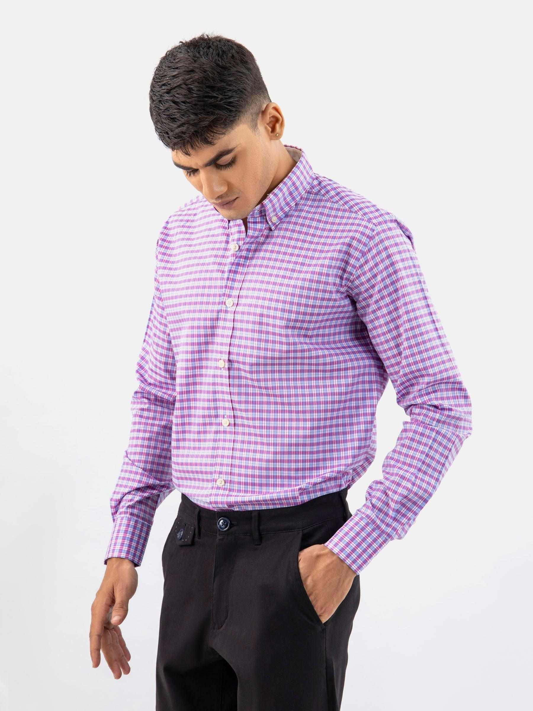 Everyday classic shirt from Luxe collection. This business shirt features pink & blue gingham checks with button down collar, inner collar detailing & branded buttons. Made with super fine fabric
