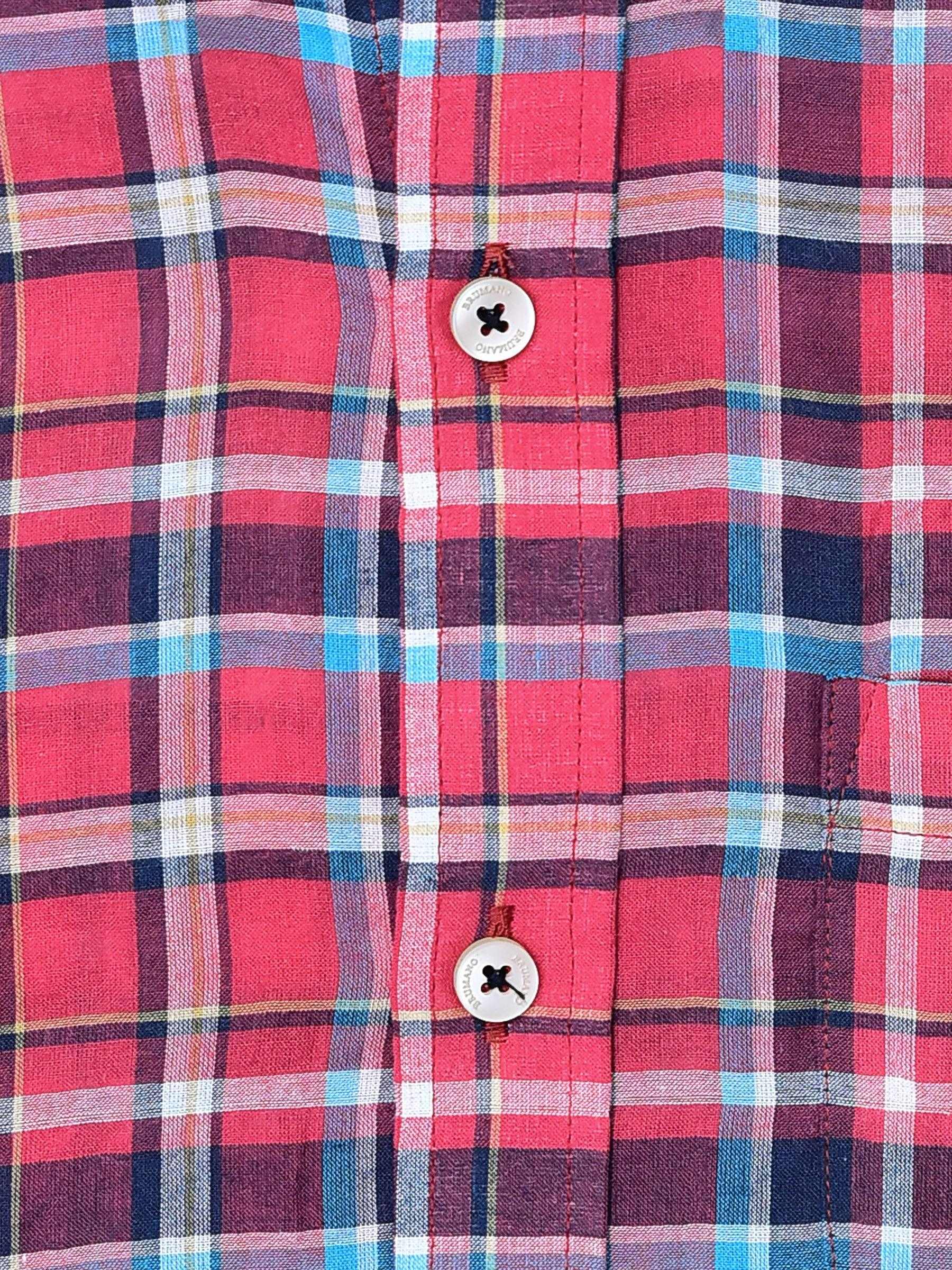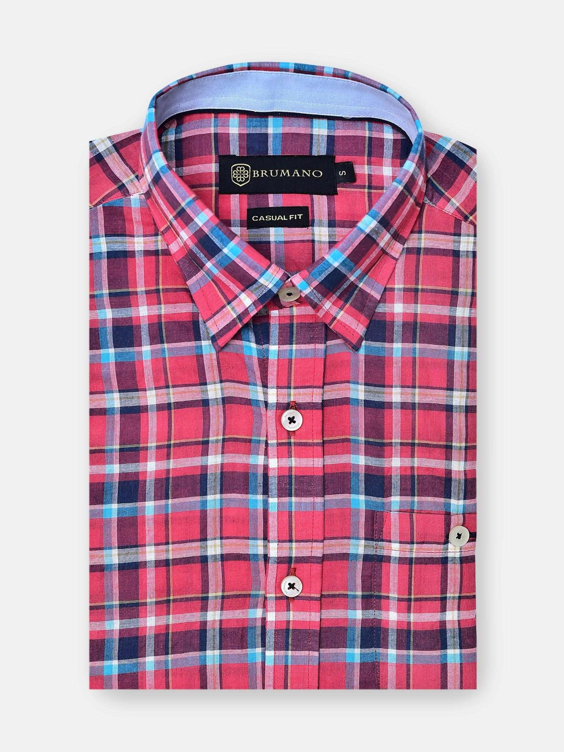 Command attention with our mens red taran plaid shirt, a versatile piece for any summer occasion. Made with super light & seersucked fabric, it features inside button down collar. Whether paired with shorts or chinos, its classic checkered design and breathable seersucked fabric ensures a casual look.