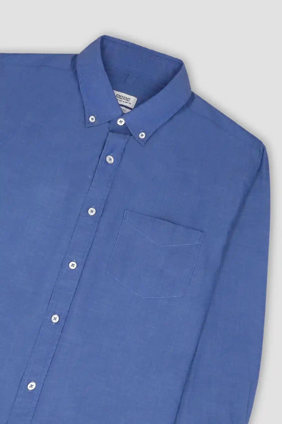 100% Blended. Smart Casual Solid Button Down Shirt With Regular Collar And Full Sleeves. Chest Patch Pocket. Rear Yoke And Curved Hem