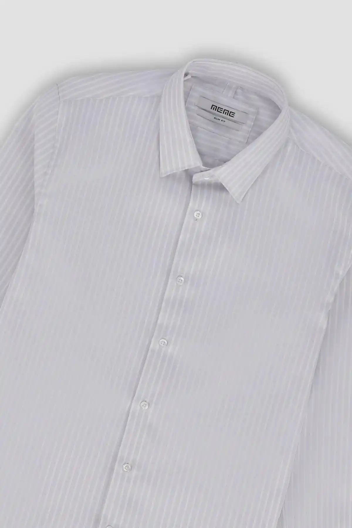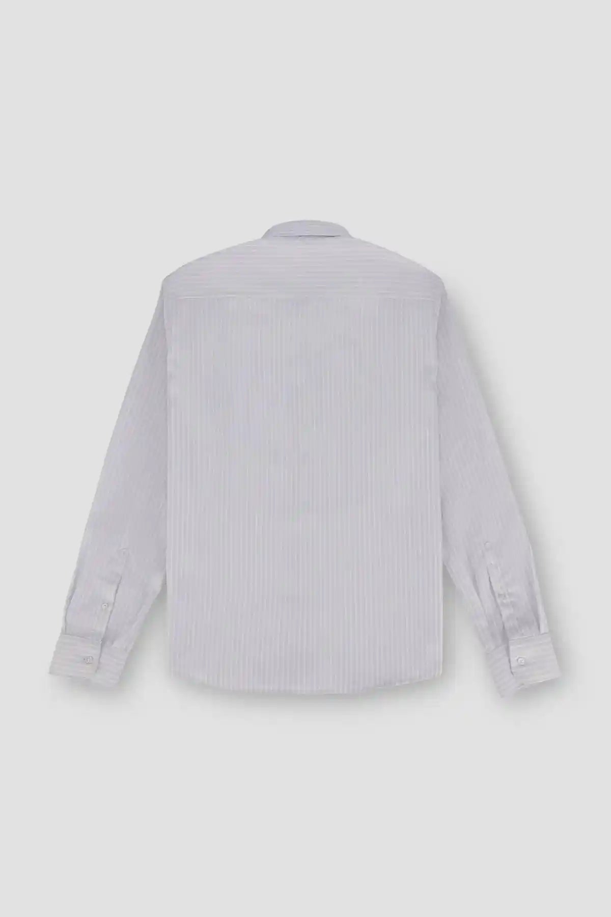 100% Blended. Classic Formal Muted Striped Print Button Down Shirt Featuring Basic Collar. Long Sleeves With Button Closure Cuff. Rear Yoke. Curved Hem