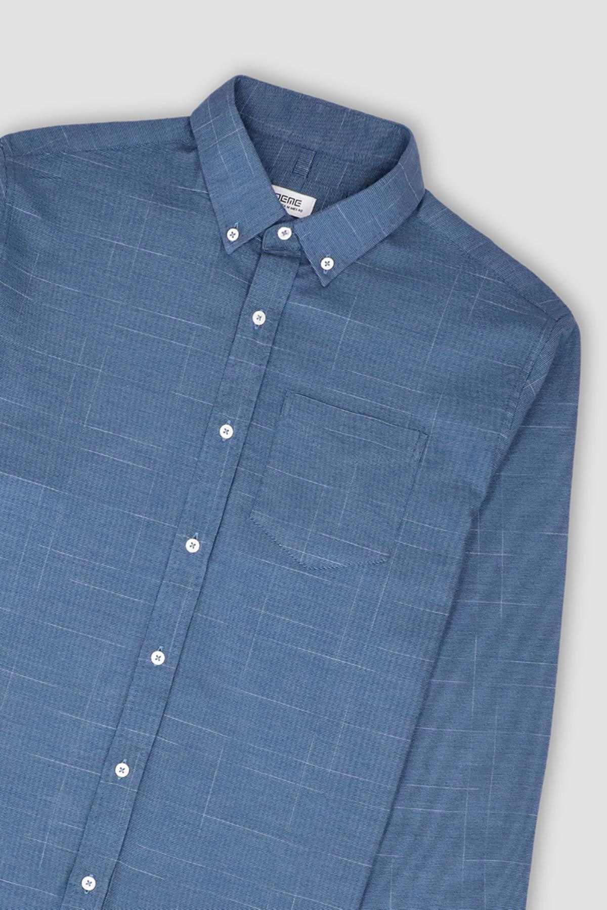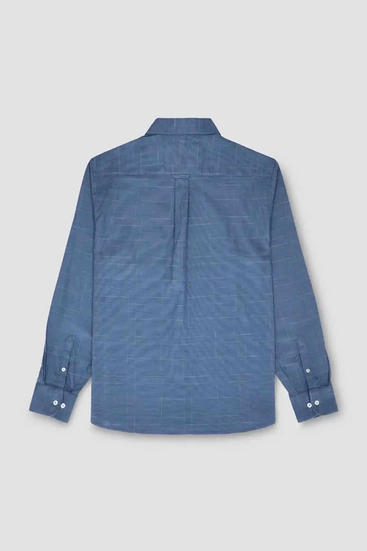 100% Blended. Classical Textured Button Down Shirt With Regular Collar And Full Sleeves. Chest Patch Pocket. Rear Yoke With Inverted Pleat. Curved Hem