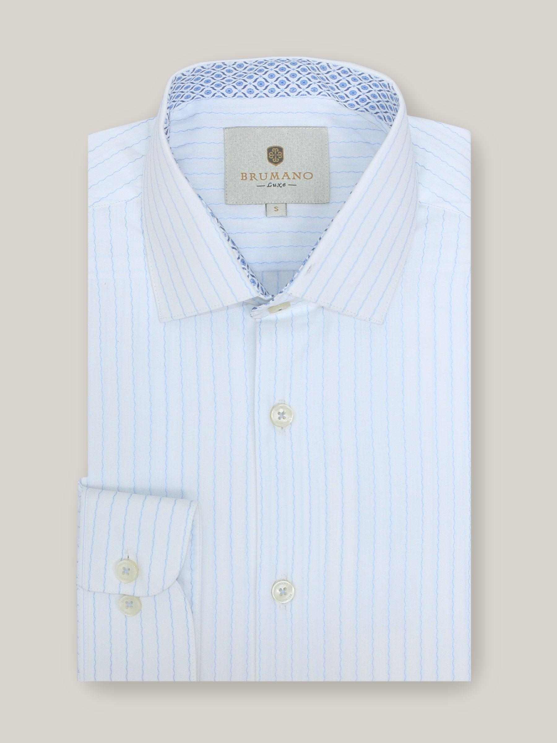 Fresh take on formal shirts with our new white & blue striped shirt with printed collar. Crisp, smart and stylish, it features shallow collar with printed collar detailing. This shirt from Luxe Collection is ideal for business wear