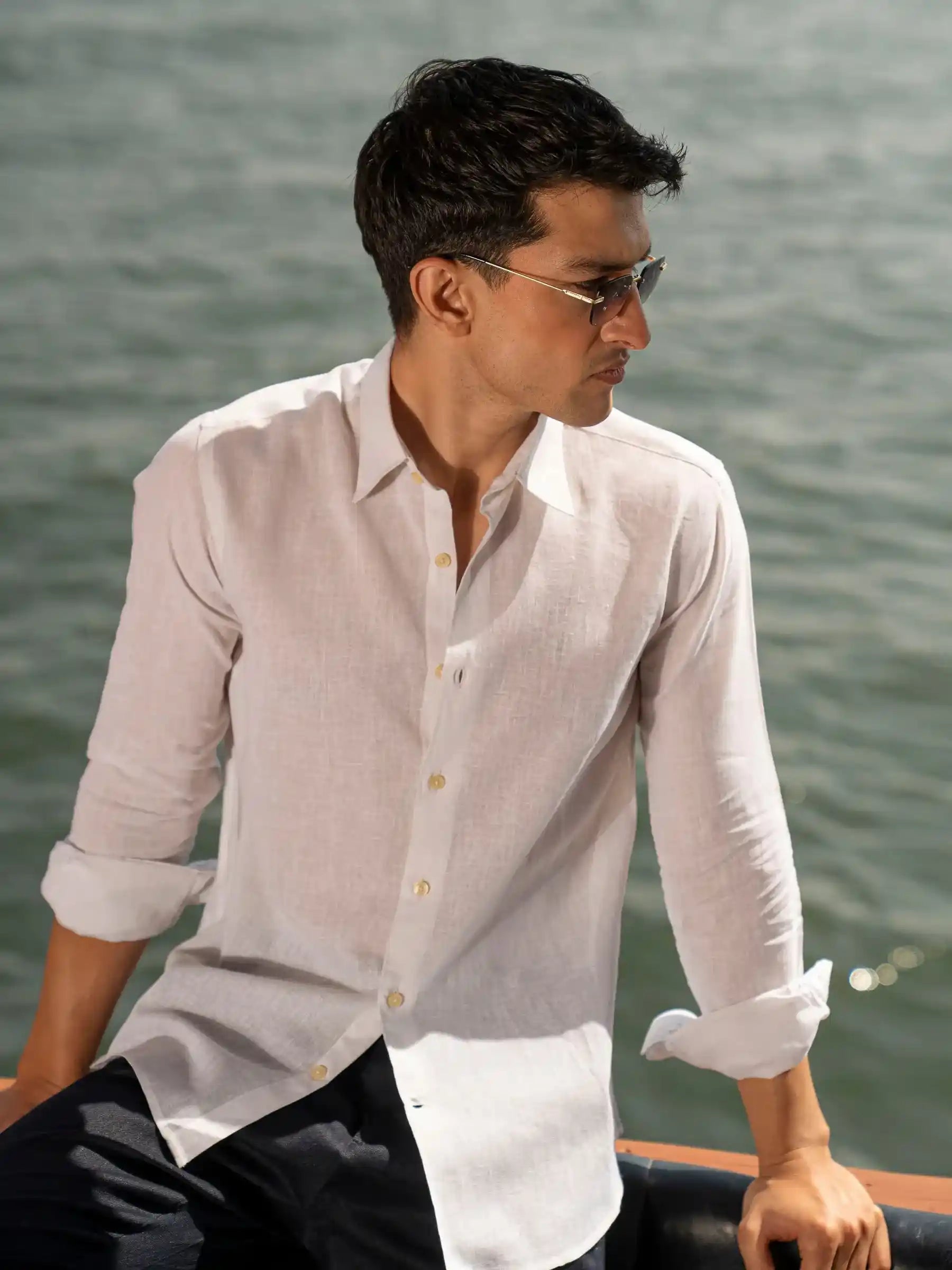 White Linen Blended Shirt