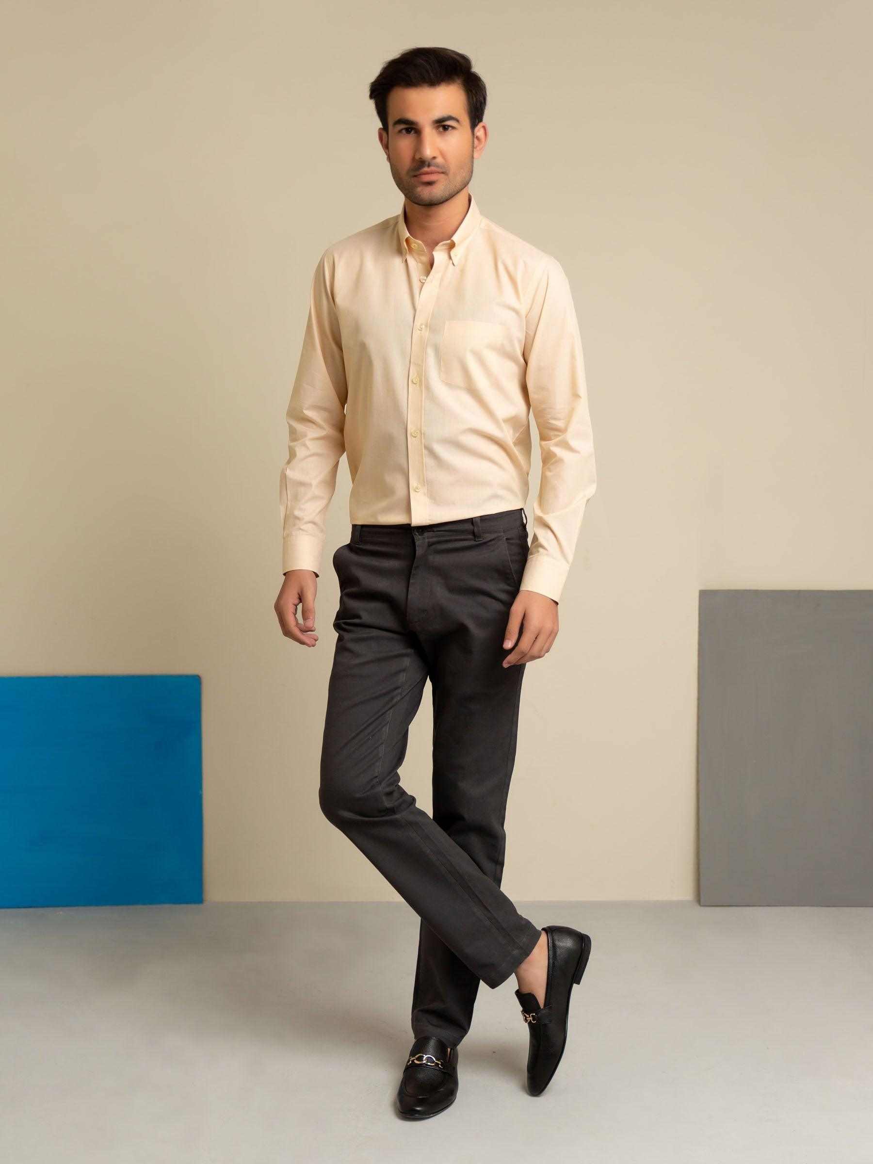 Clean, classic and timeless, this yellow super fine button down formal shirt from Luxe collection a must-have. Featuring elegant details such as inner collar detailing, yellow button stitch color & front pocket
