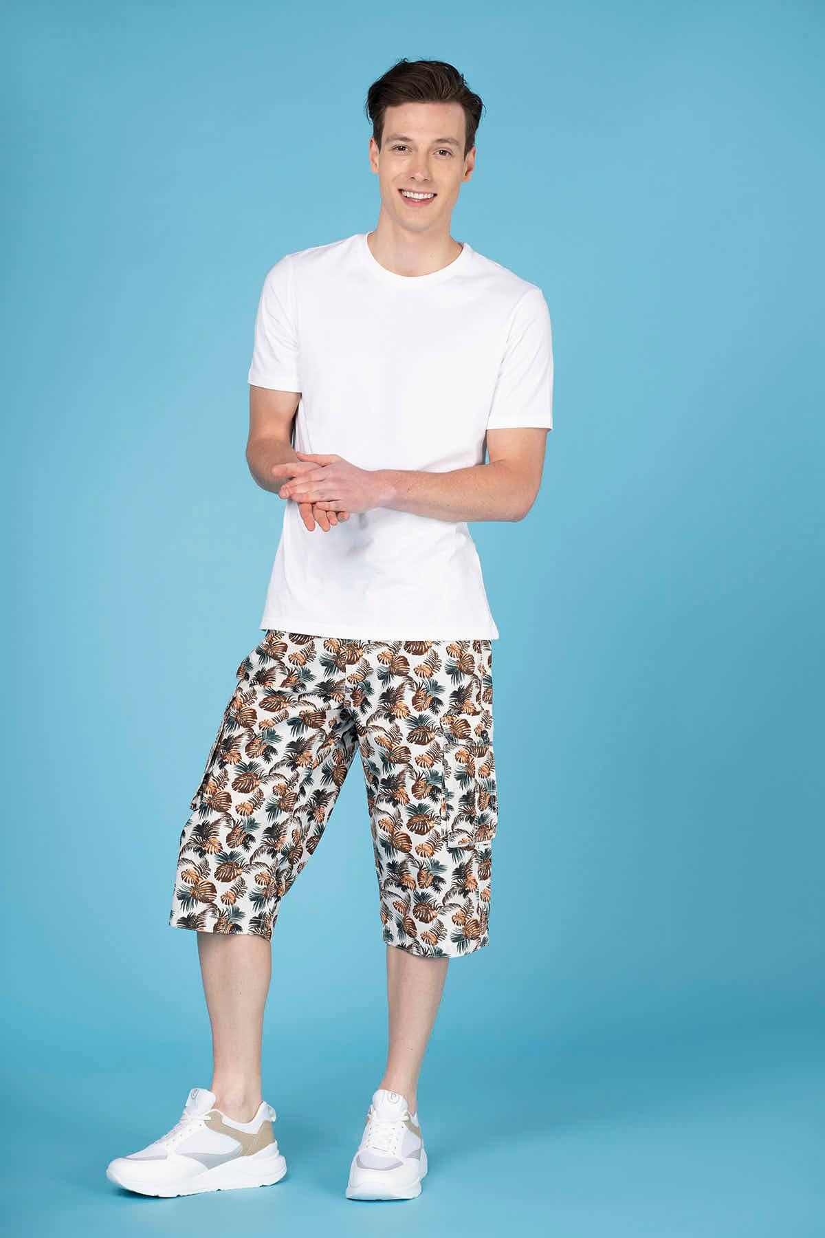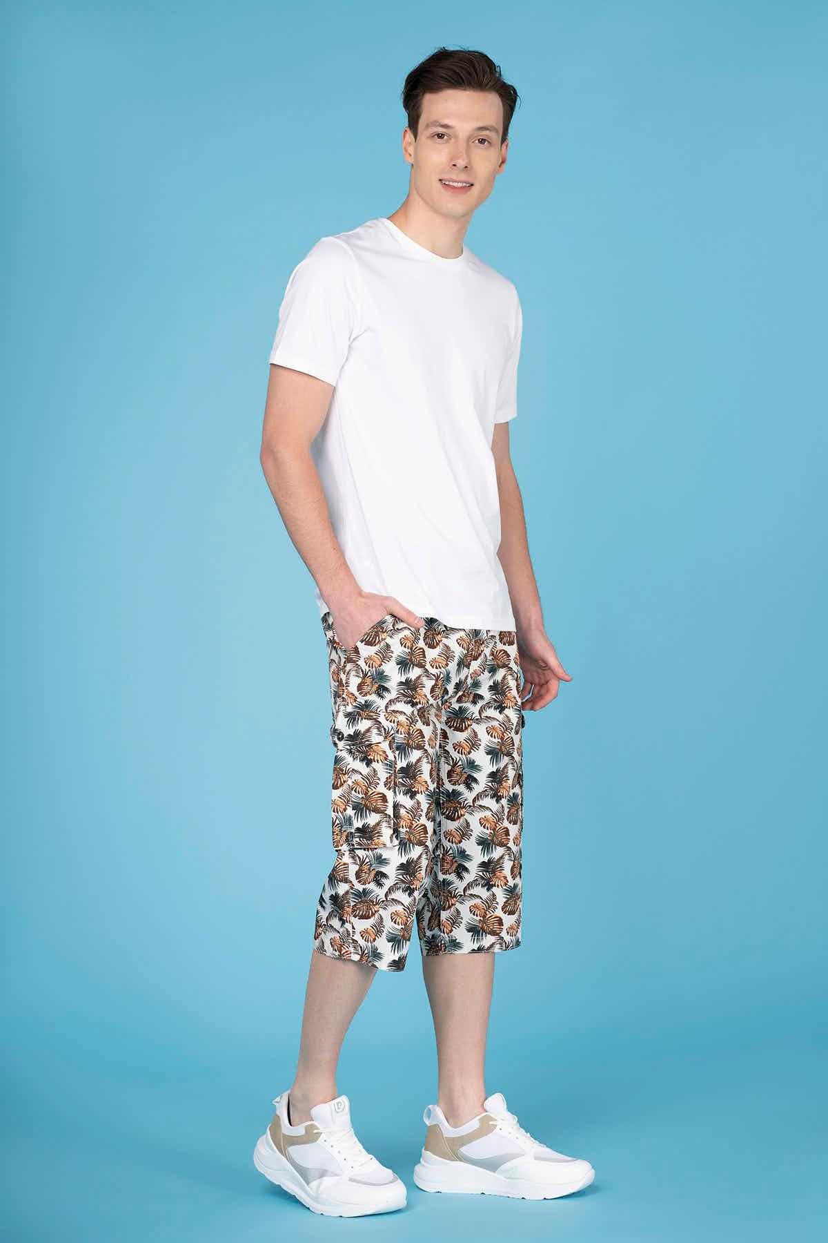 Comfortable And Classicalsafari Leaf Print Barmuda Shorts With Detachable Belt Featuring Button Closure Waistband With Loops. Front Utility Pockets And Slash Pockets. Rear Flap Pockets. Straight Hem.