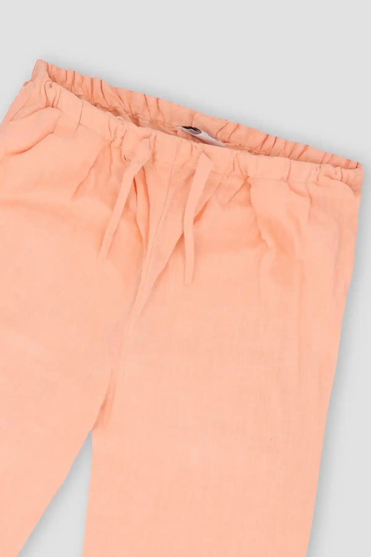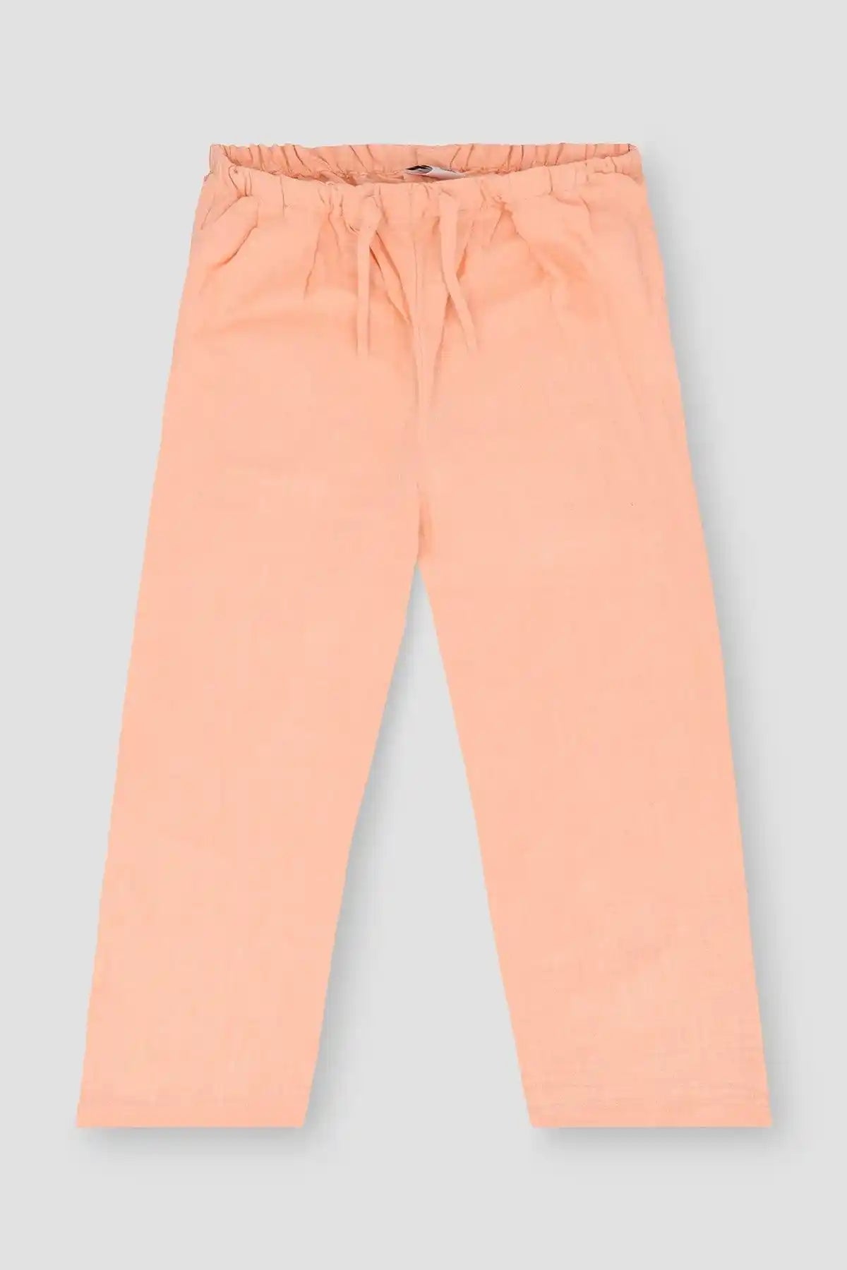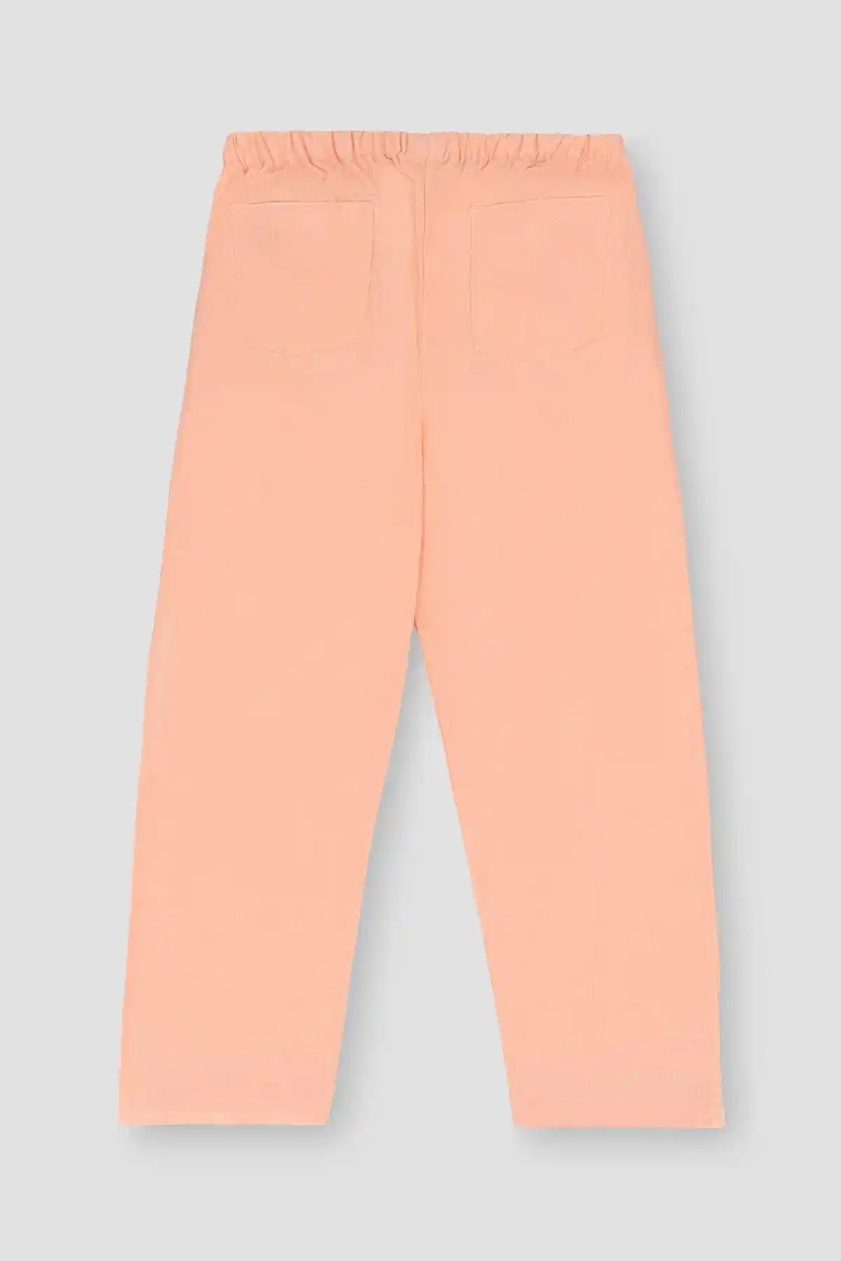 55% Cotton 45% Linen. Casual Trousers With Elasticated Waistband And Drawstring. Featuring Front Slash Pockets And Back Patch Pockets.