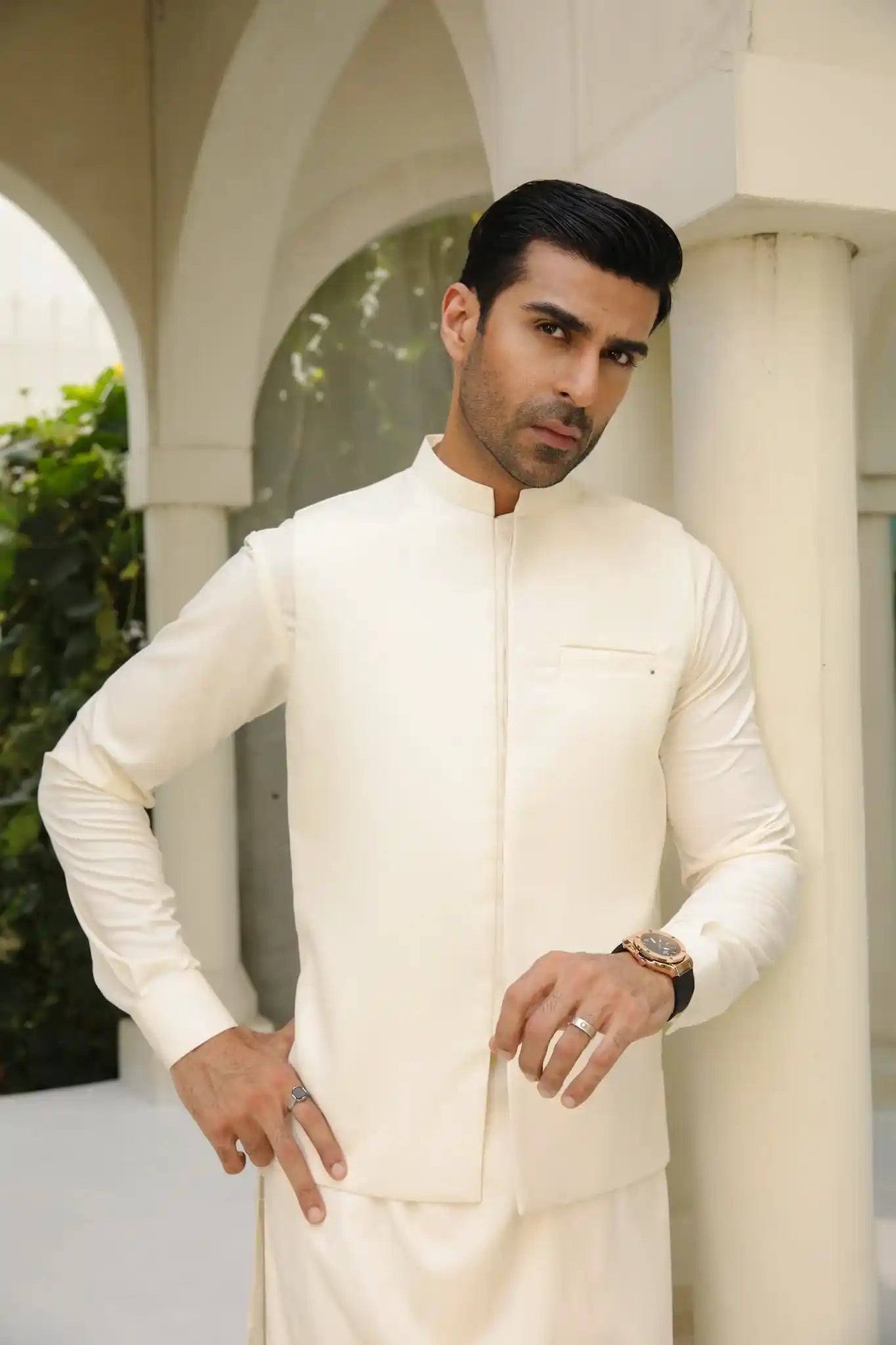 Bosky White Kameez Shalwar with Blended Waistcoat - Men