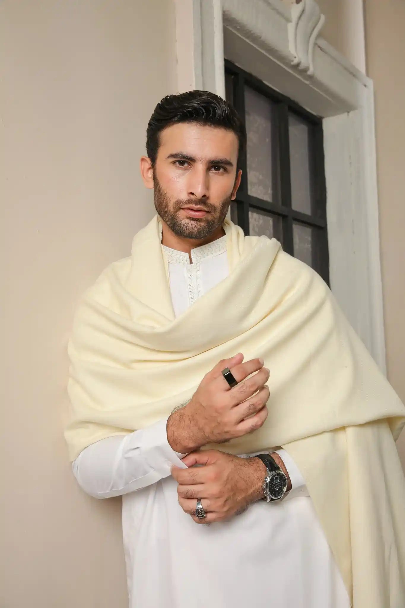 Bosky Wool Shawl with Off White Kameez Shalwar - Men