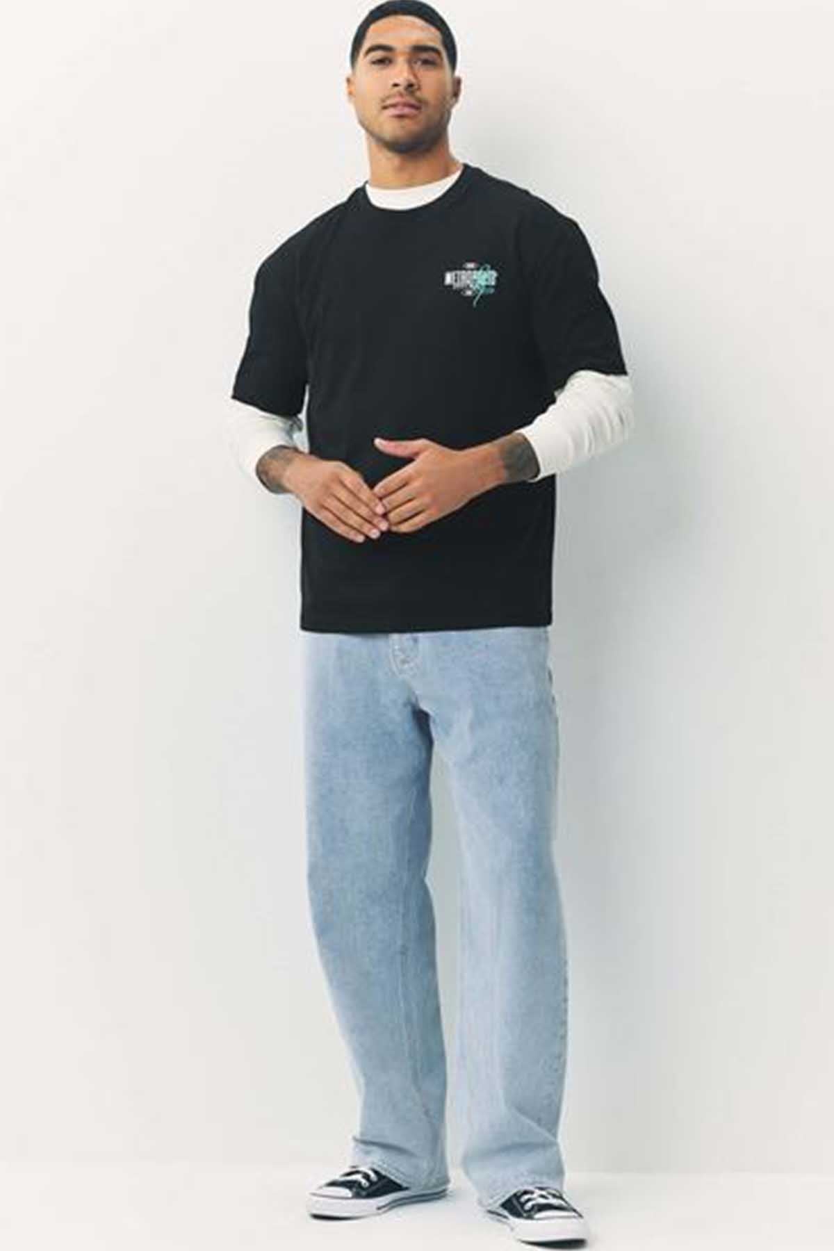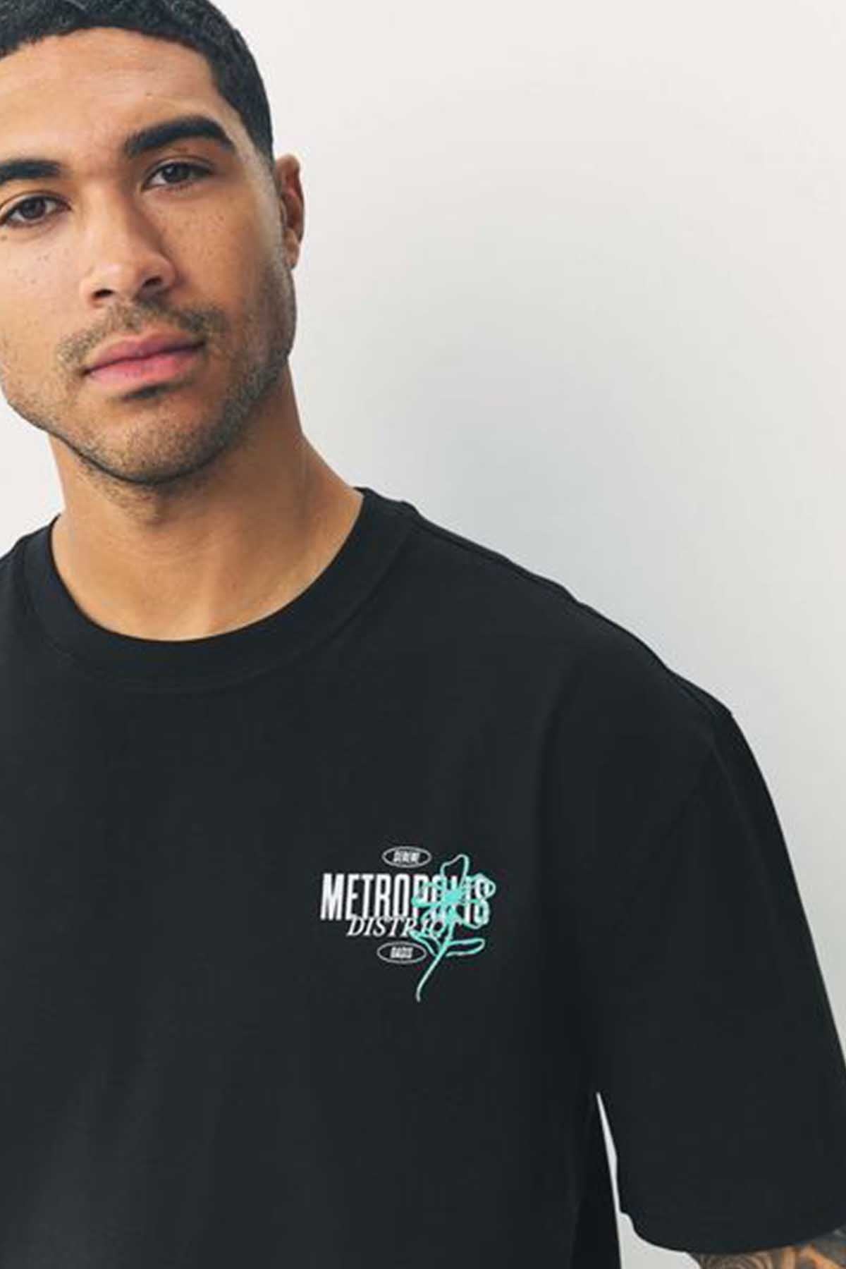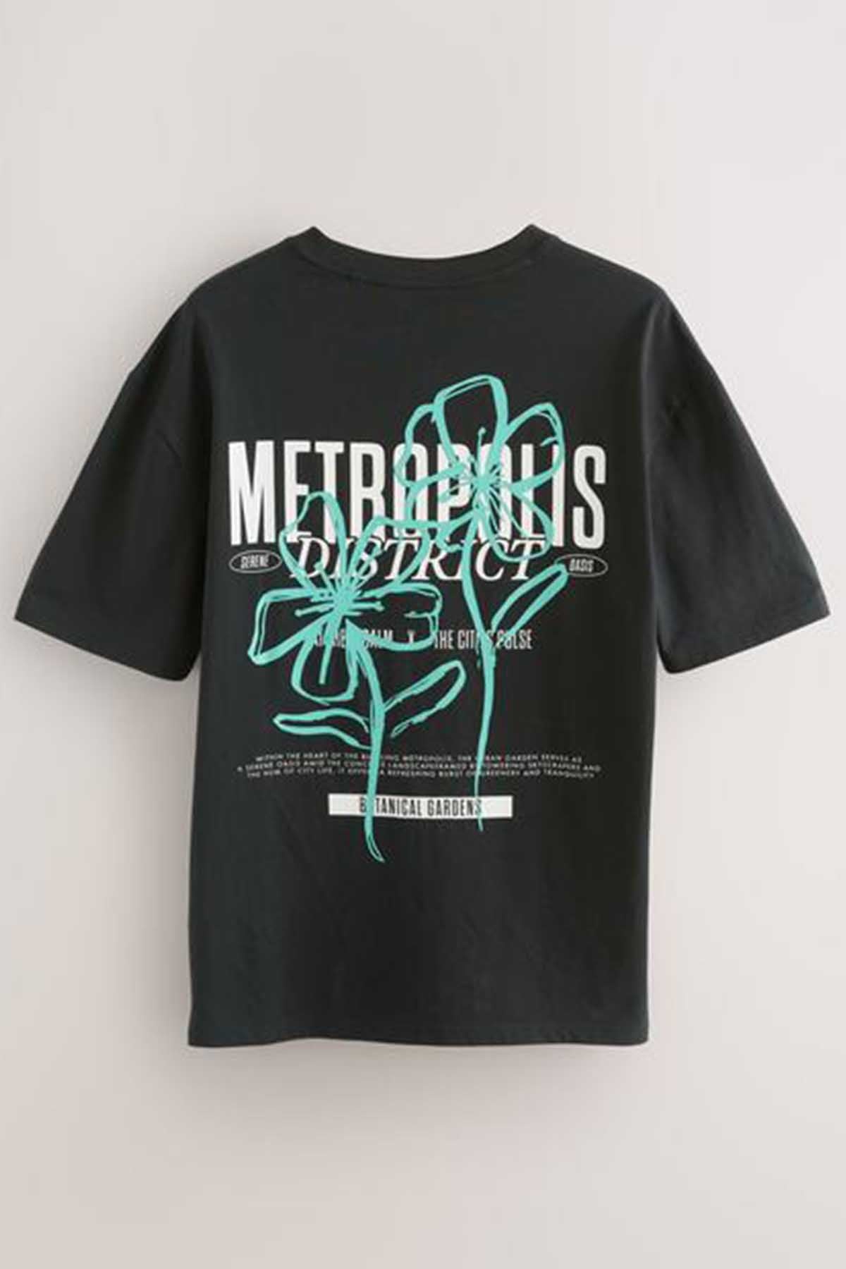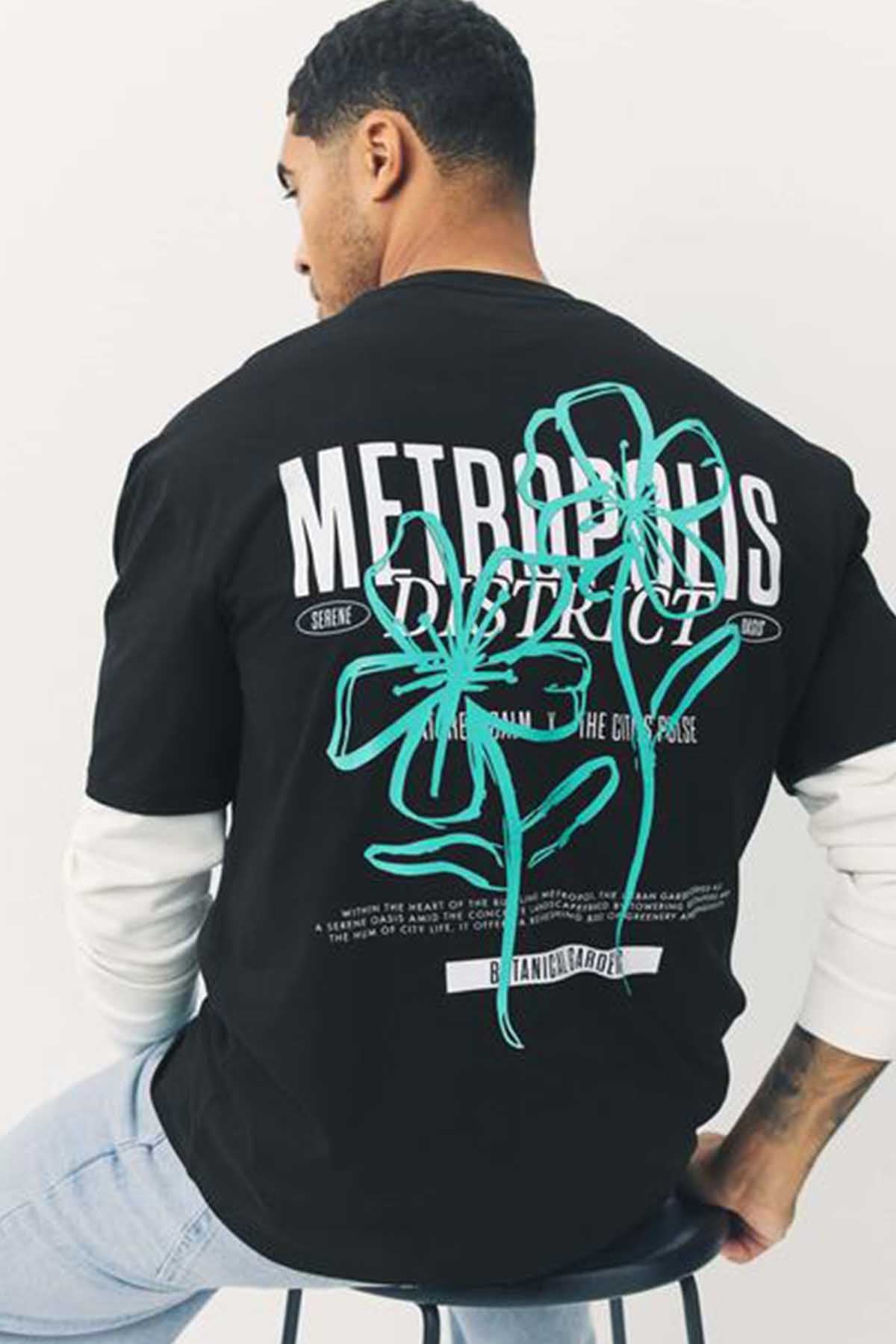 Black Flower Relaxed Fit Graphic Print Heavy Weight T-Shirt