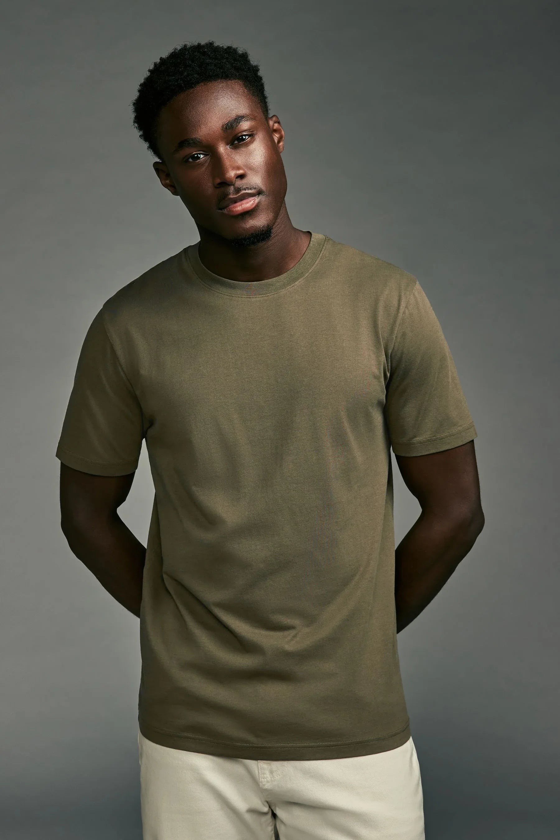 Green Khaki Slim Fit Essential Crew Neck Cotton T-Shirt