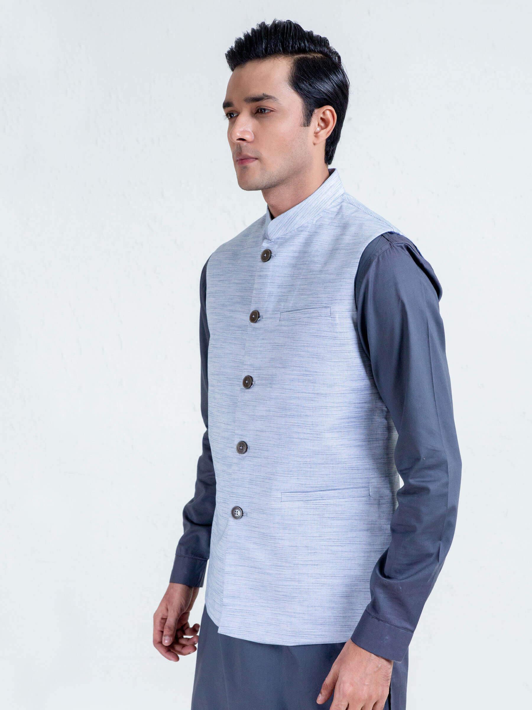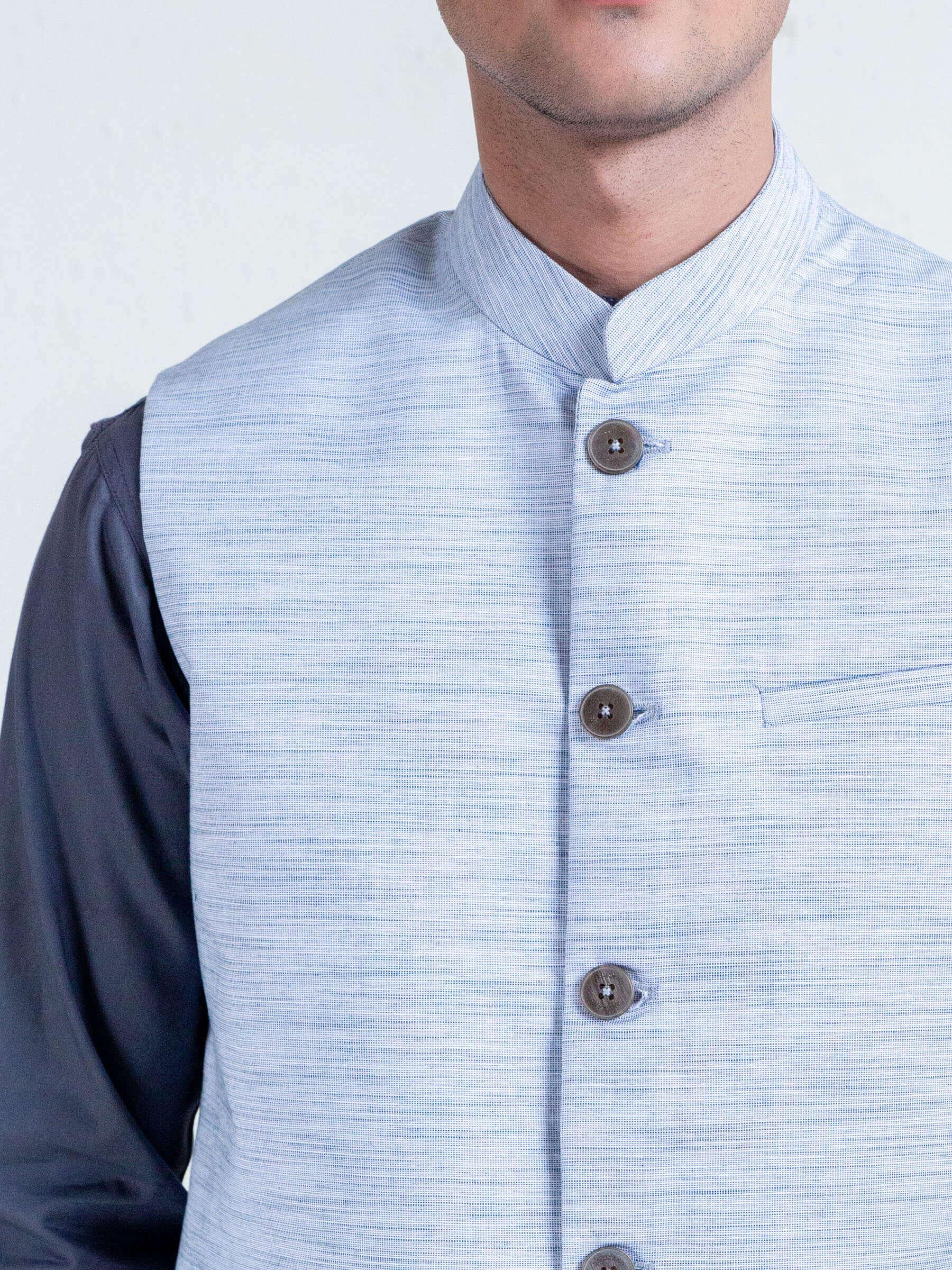Whether it’s a casual meeting or a family dinner, this finely tailored blue light weight structured waistcoat will hit the mark. Made with fine fabric