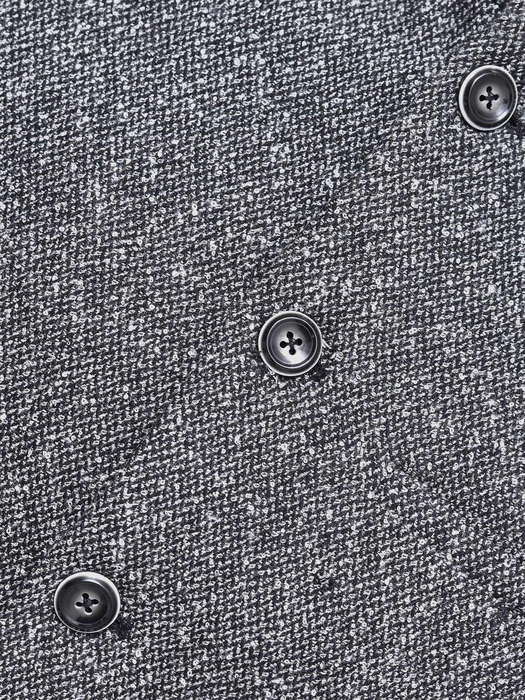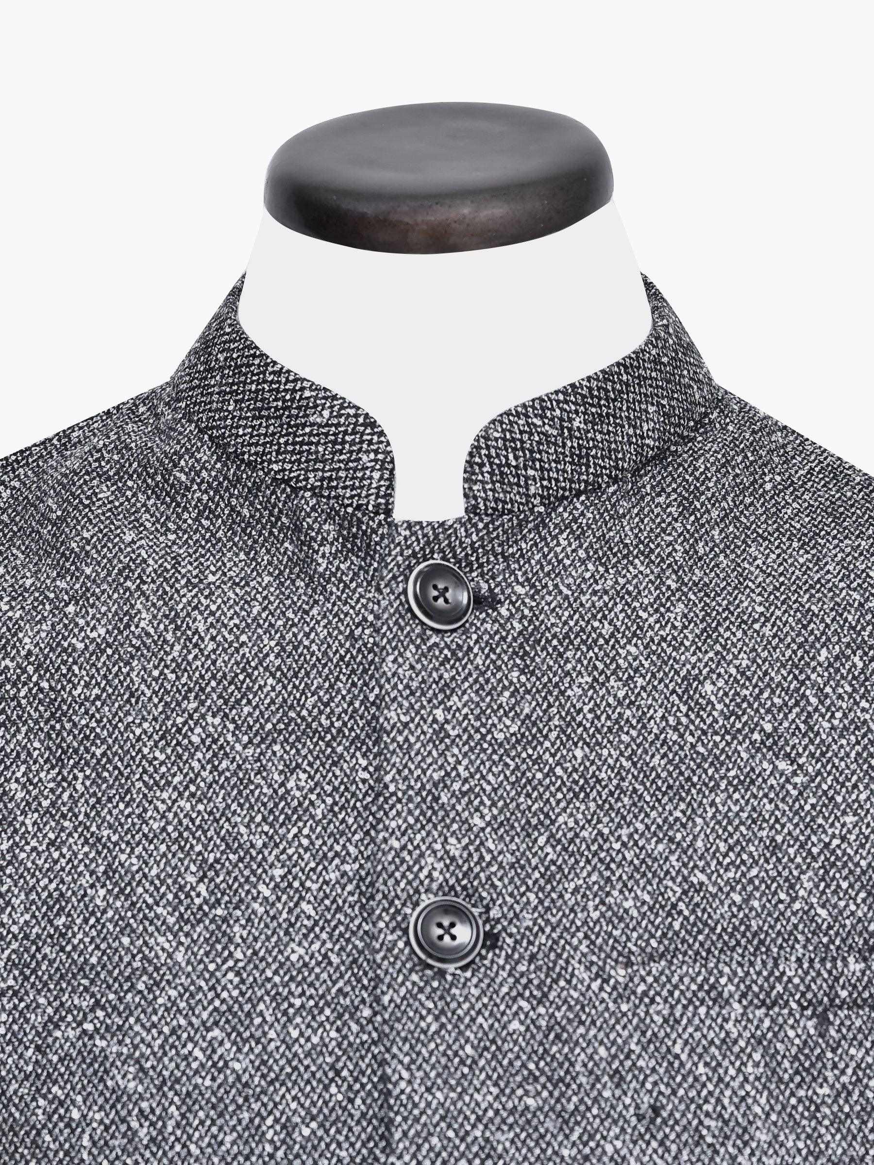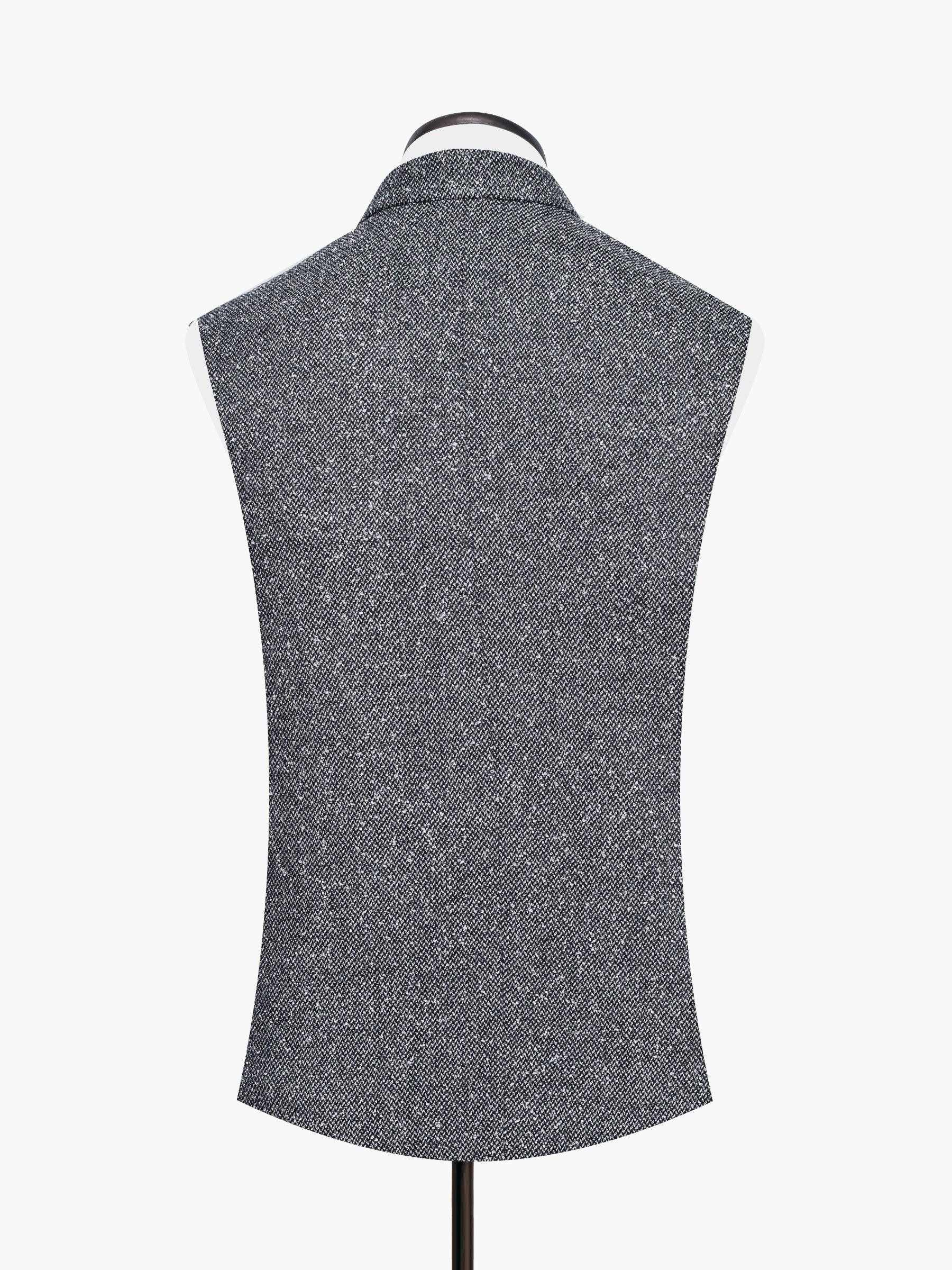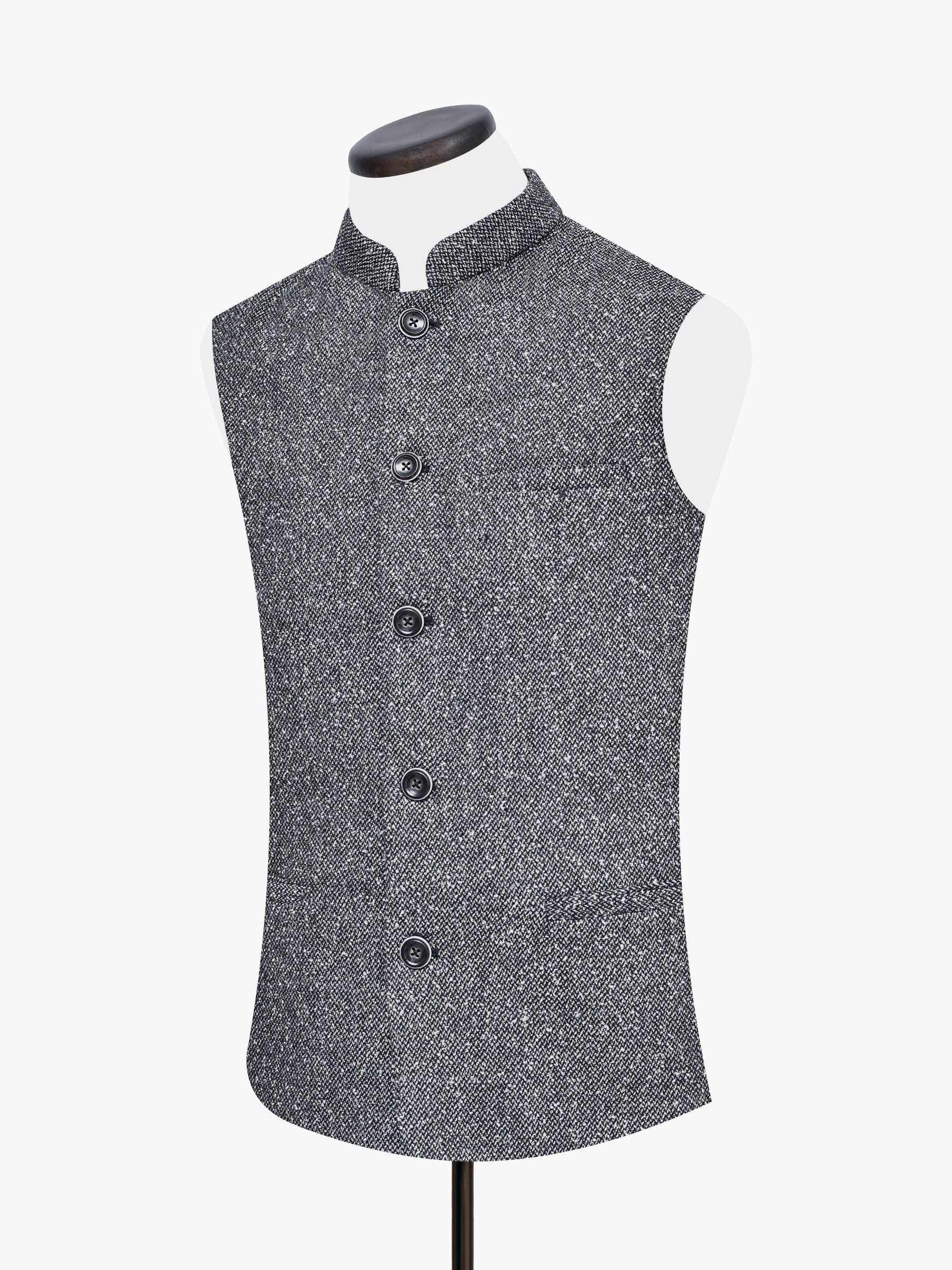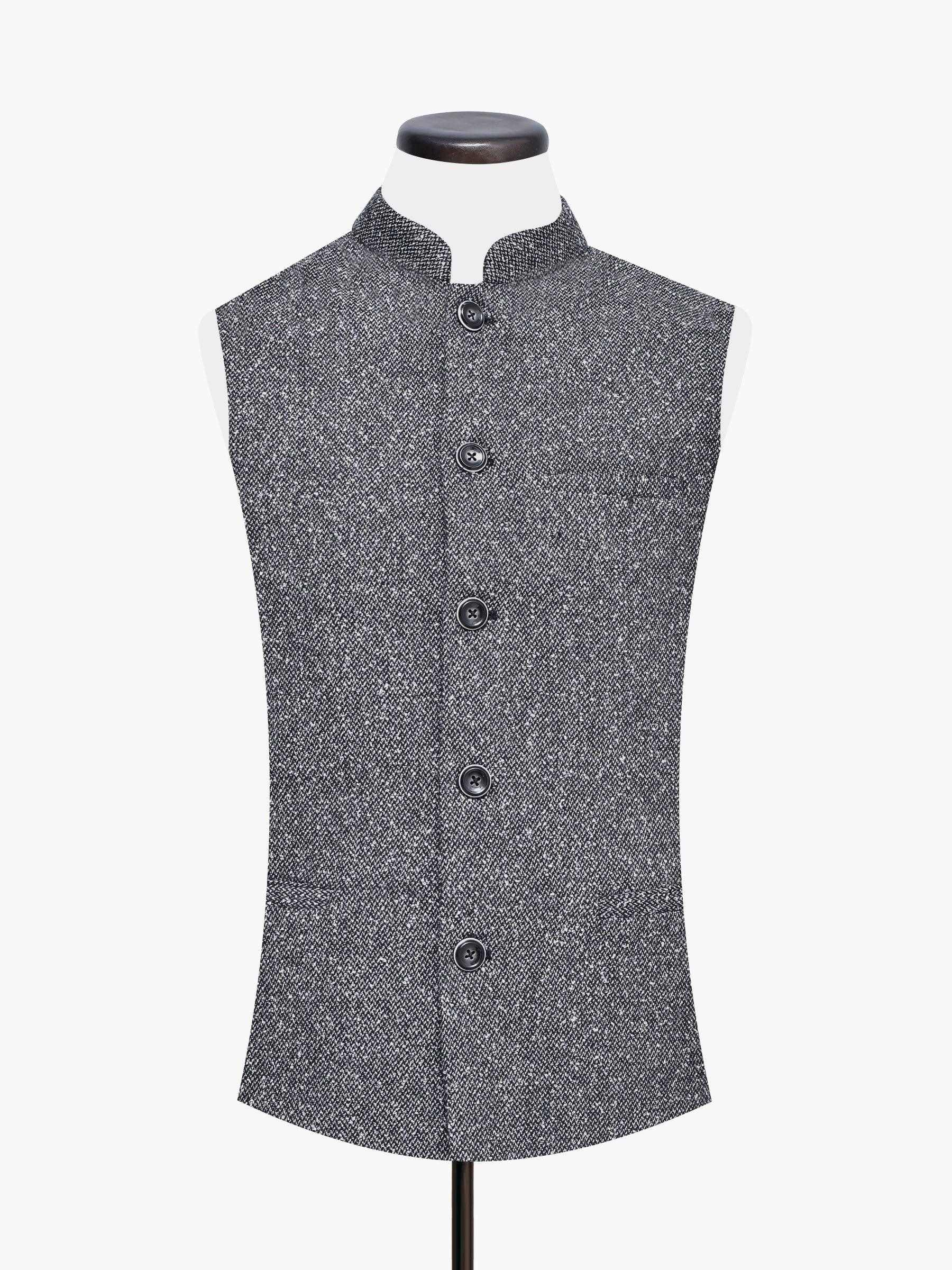 Elevate your style with this our grey & white dobby structured wool waistcoat. Crafted from premium wool blended fabric with a subtle dobby texture, this tailored piece offers a refined fit. Perfect for formal events or friday office look, it combines sophistication with versatile elegance.