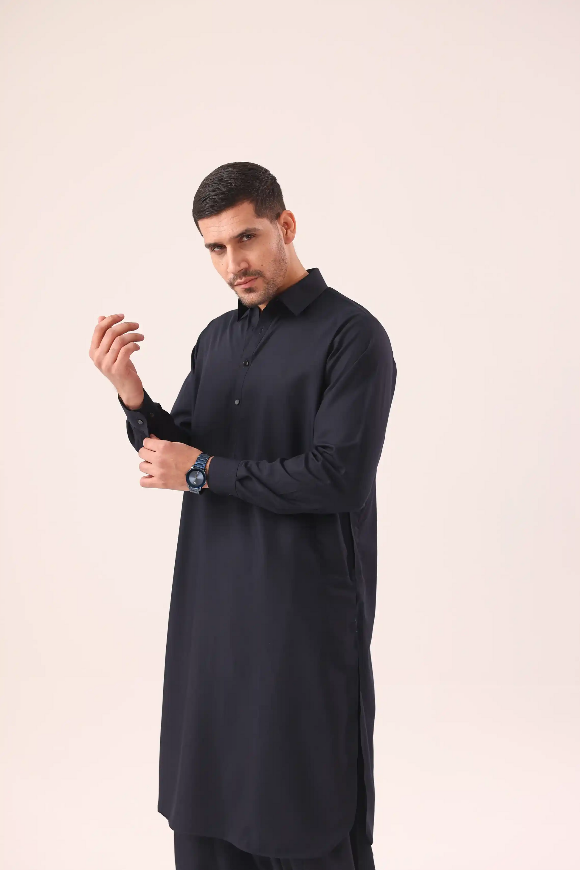 Bold & Elegant: Elevate your style with this Men's Shalwar Kameez in poly viscose. Combining bold lines with ultimate comfort, it's the perfect choice for modern, fashion-forward men.