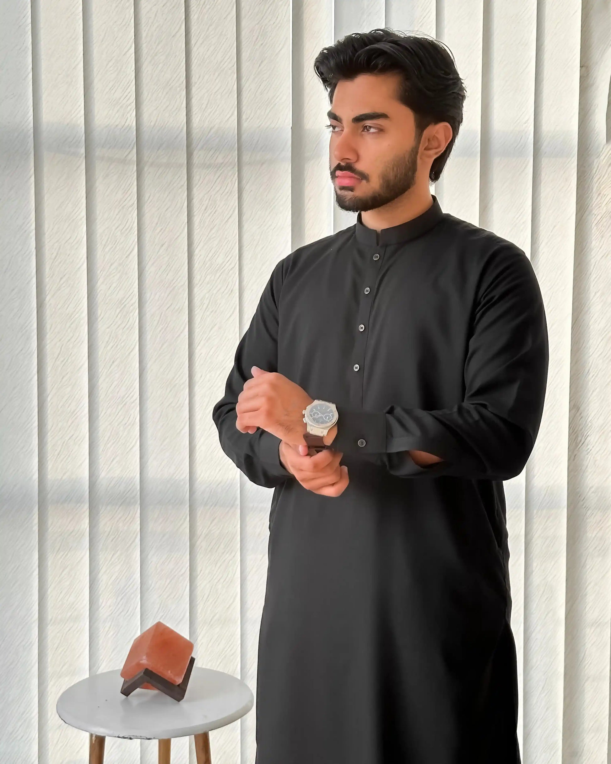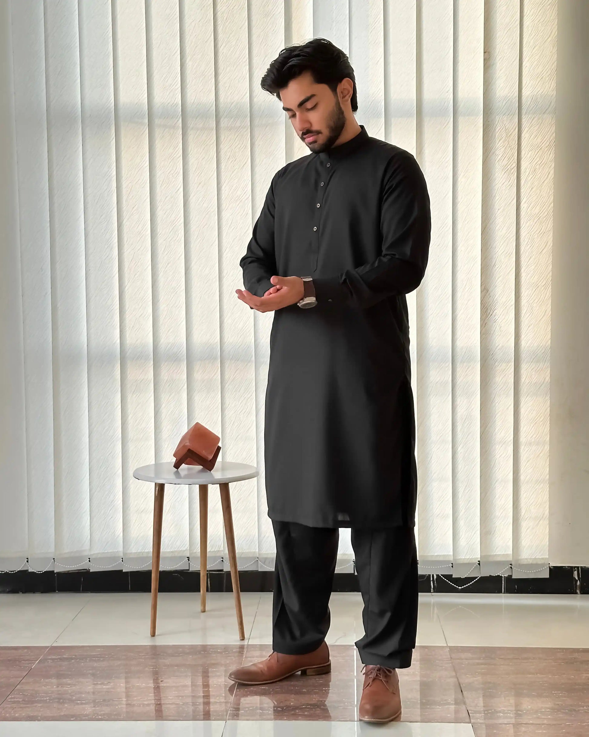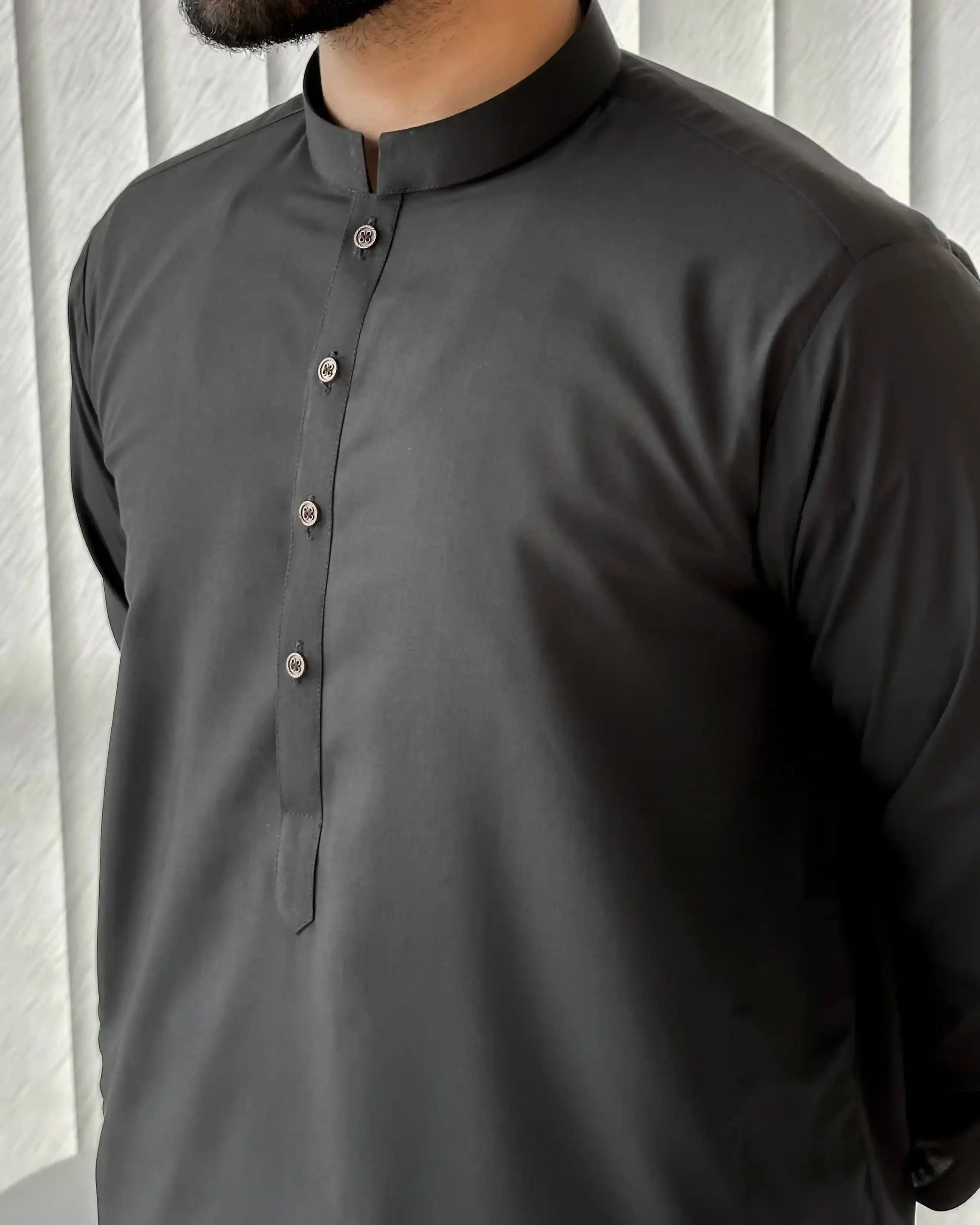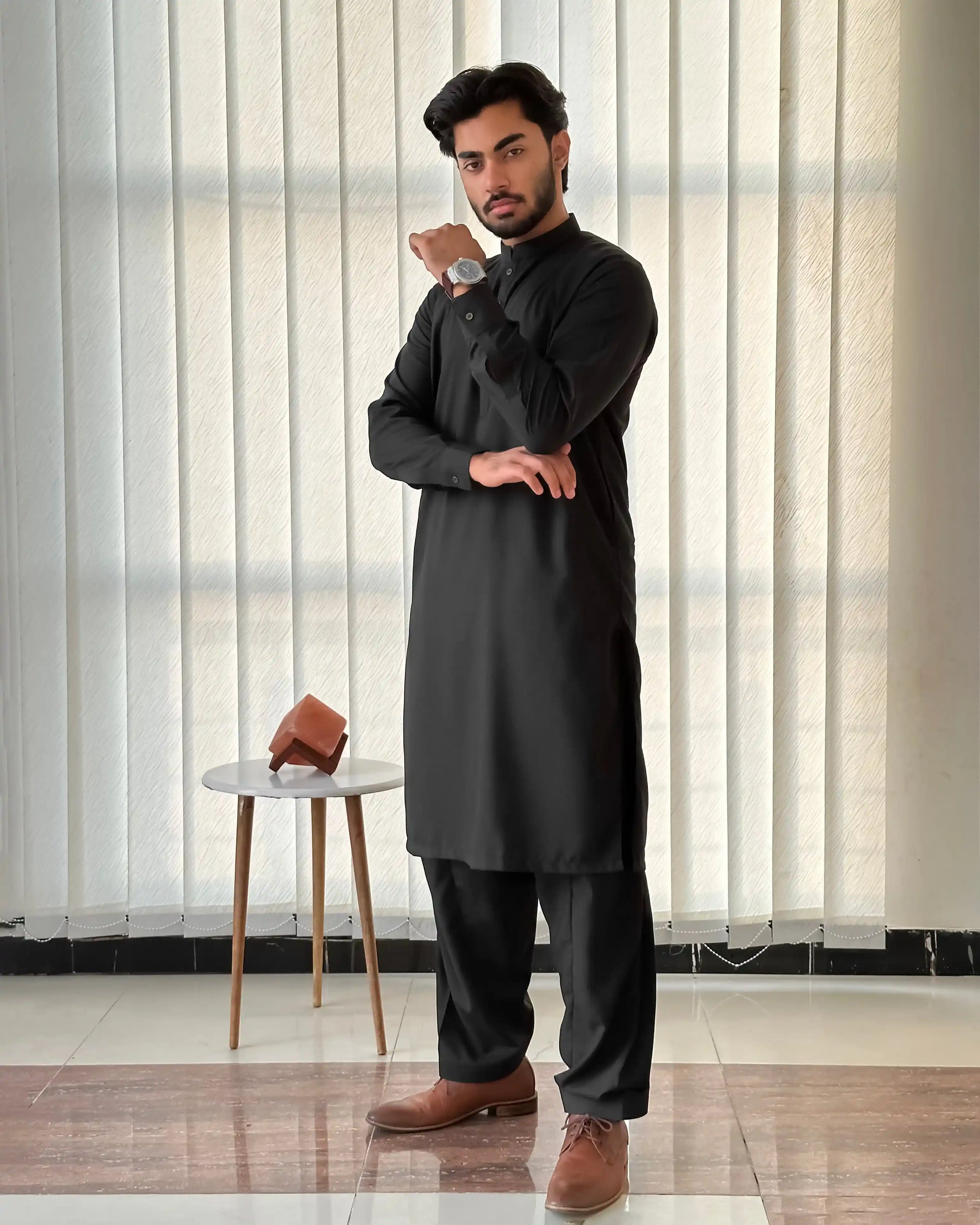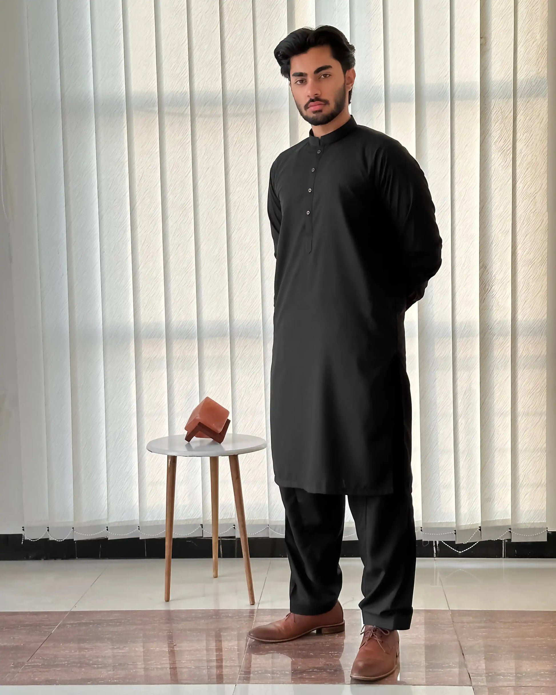 Black Blended Kurta Shalwar - Men