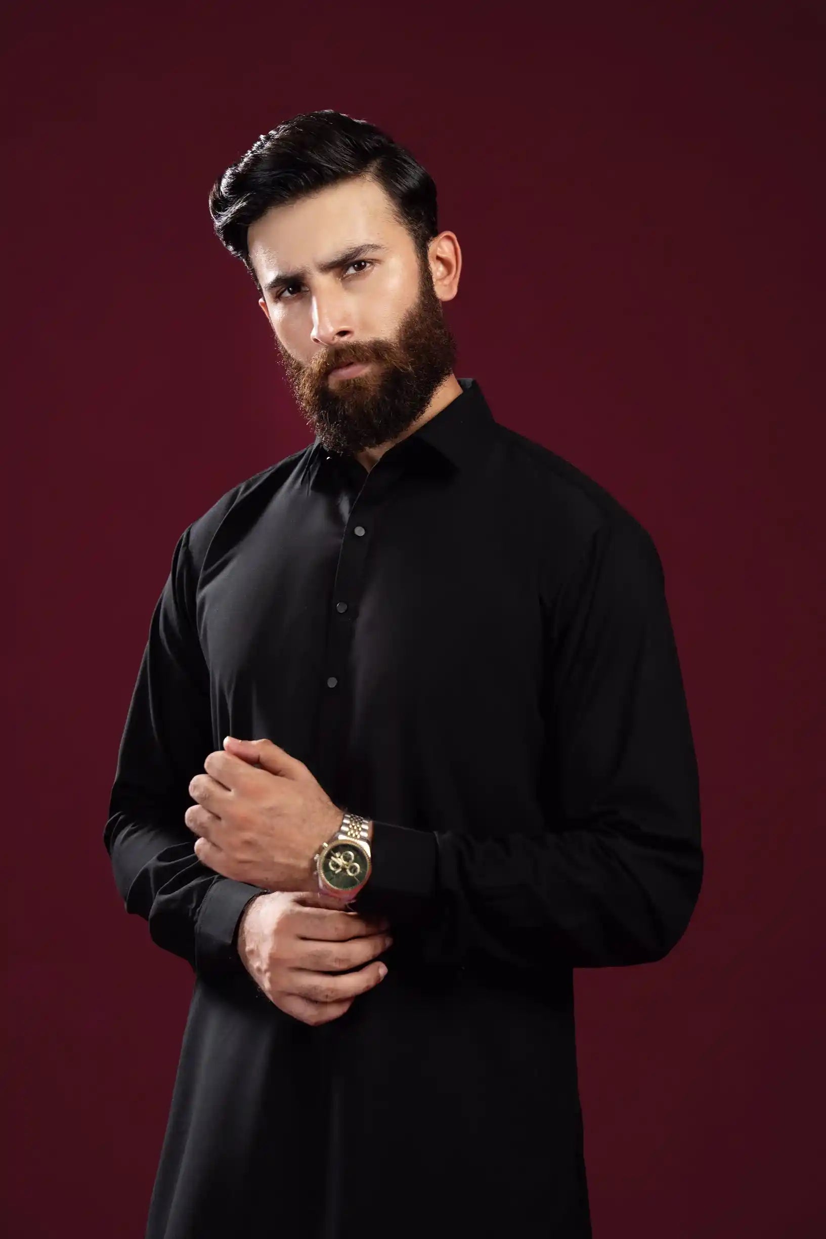 Black French Collar Kameez Shalwar - Men