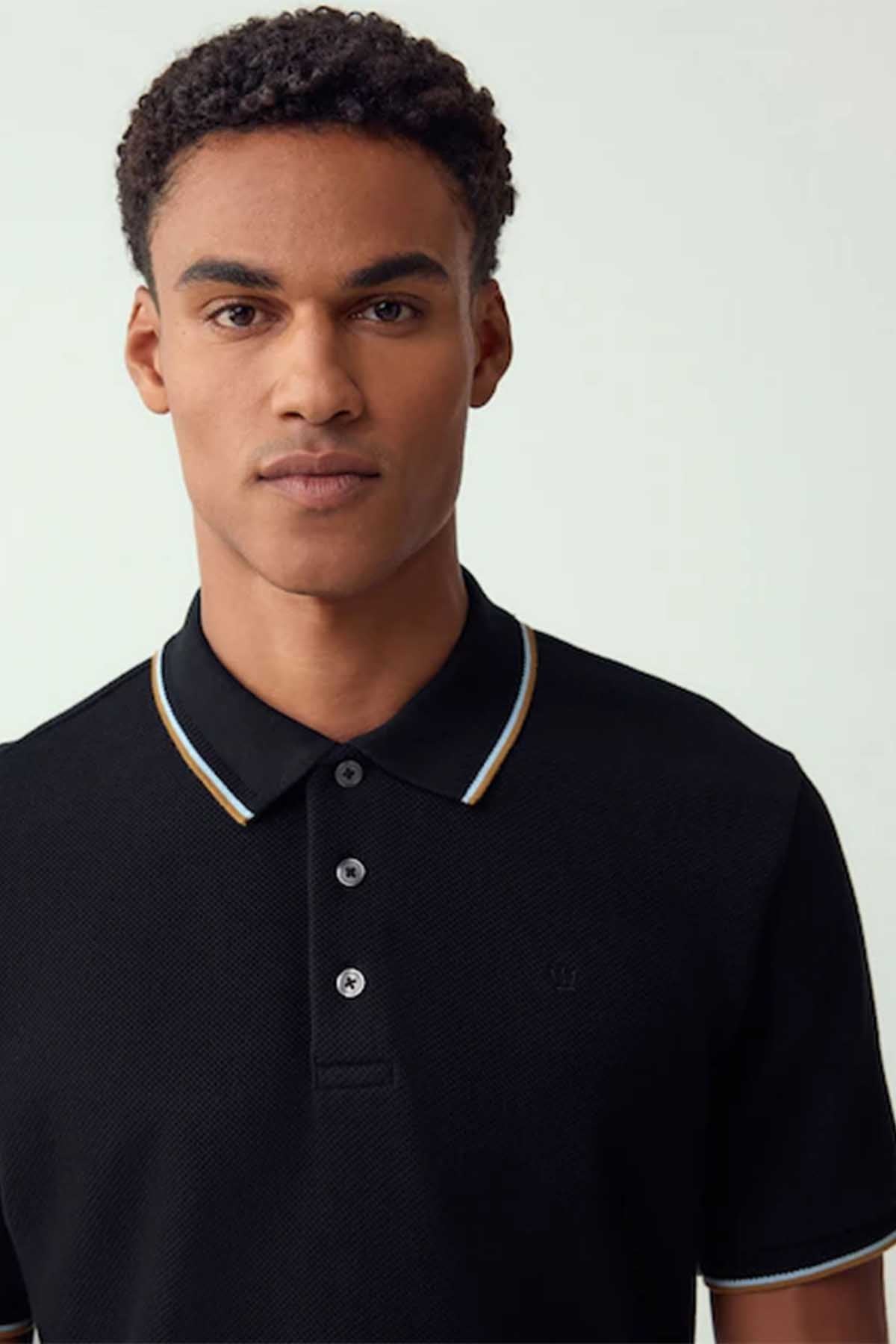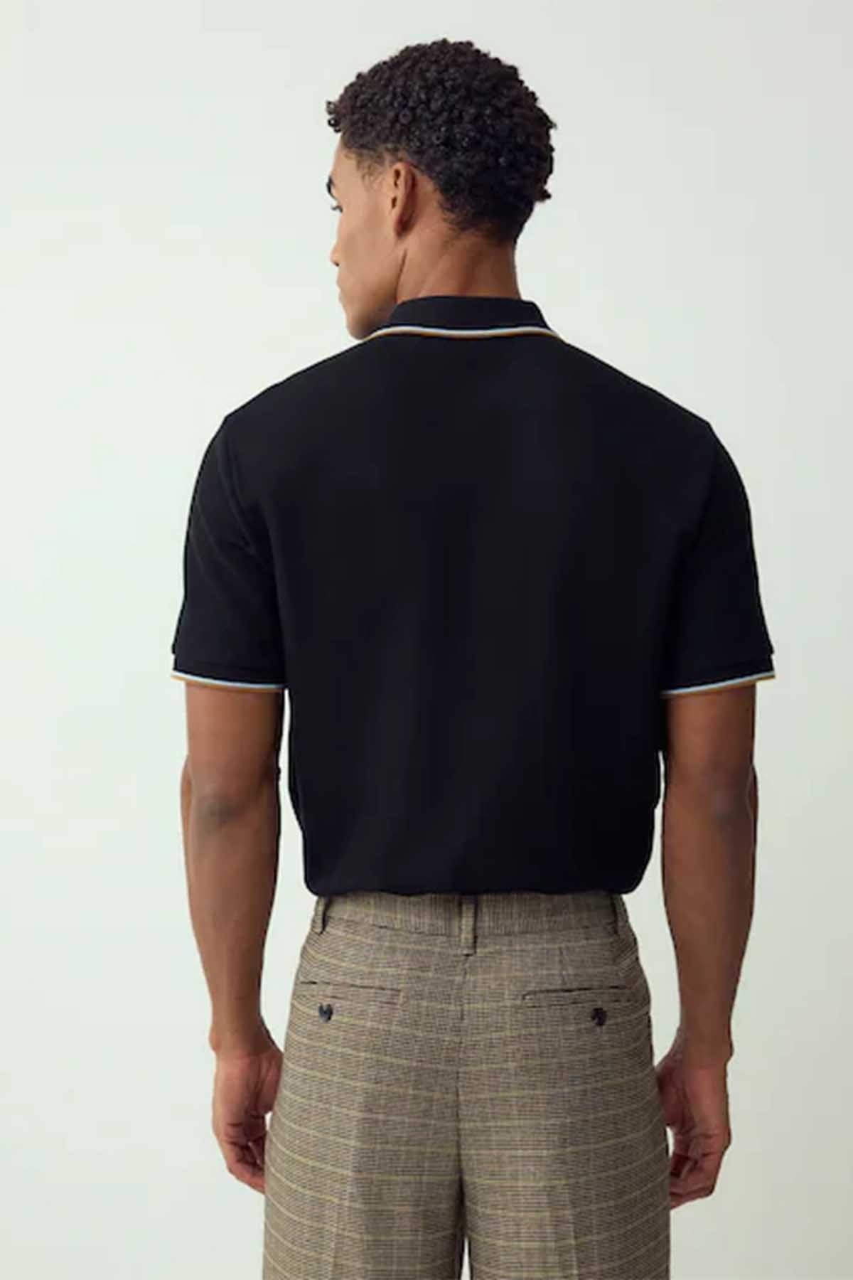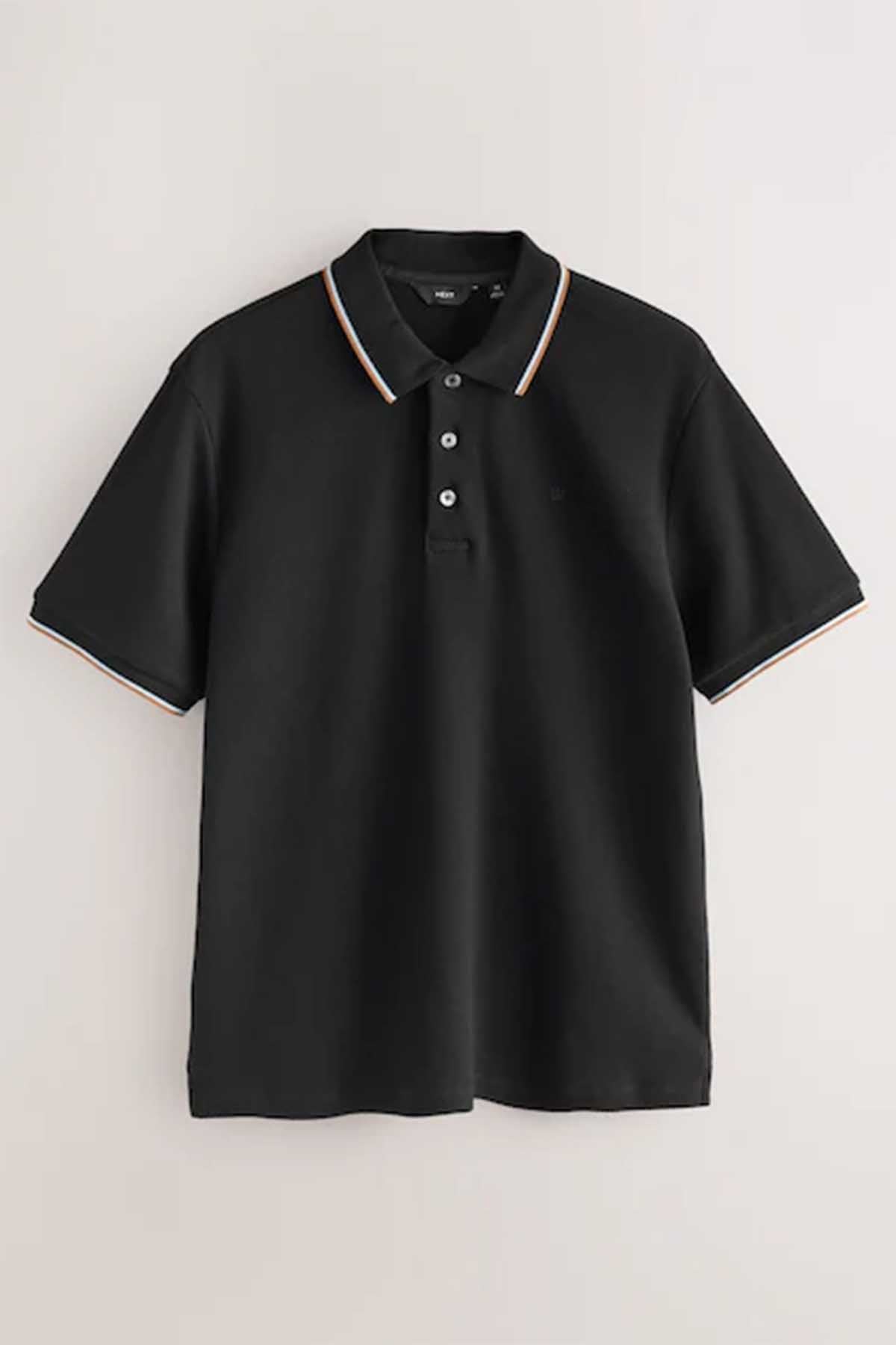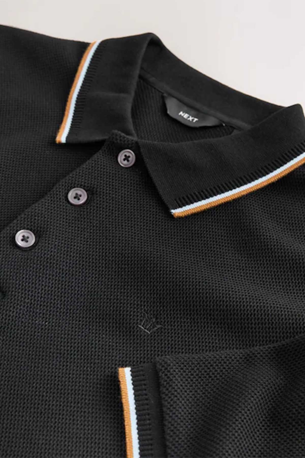Black Short Sleeve Tipped Polo Shirt