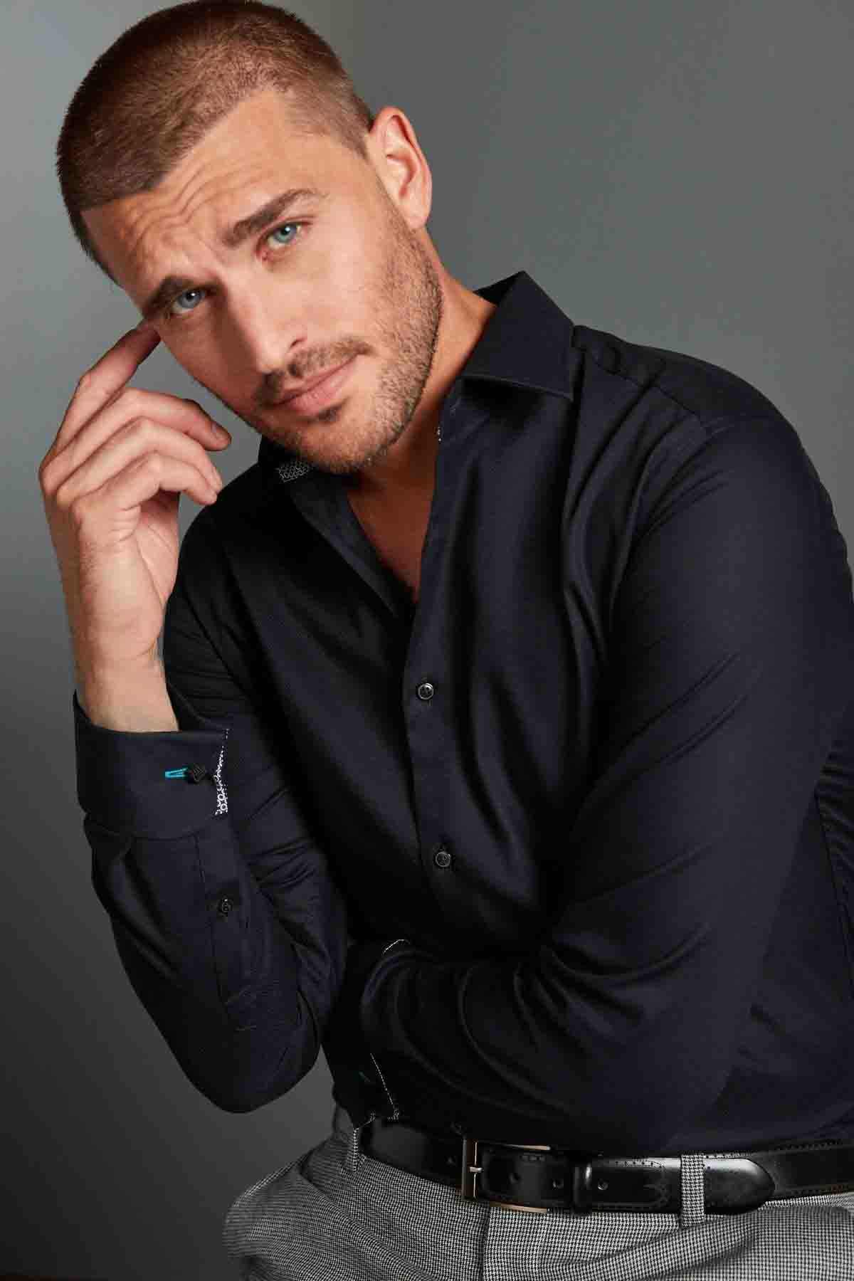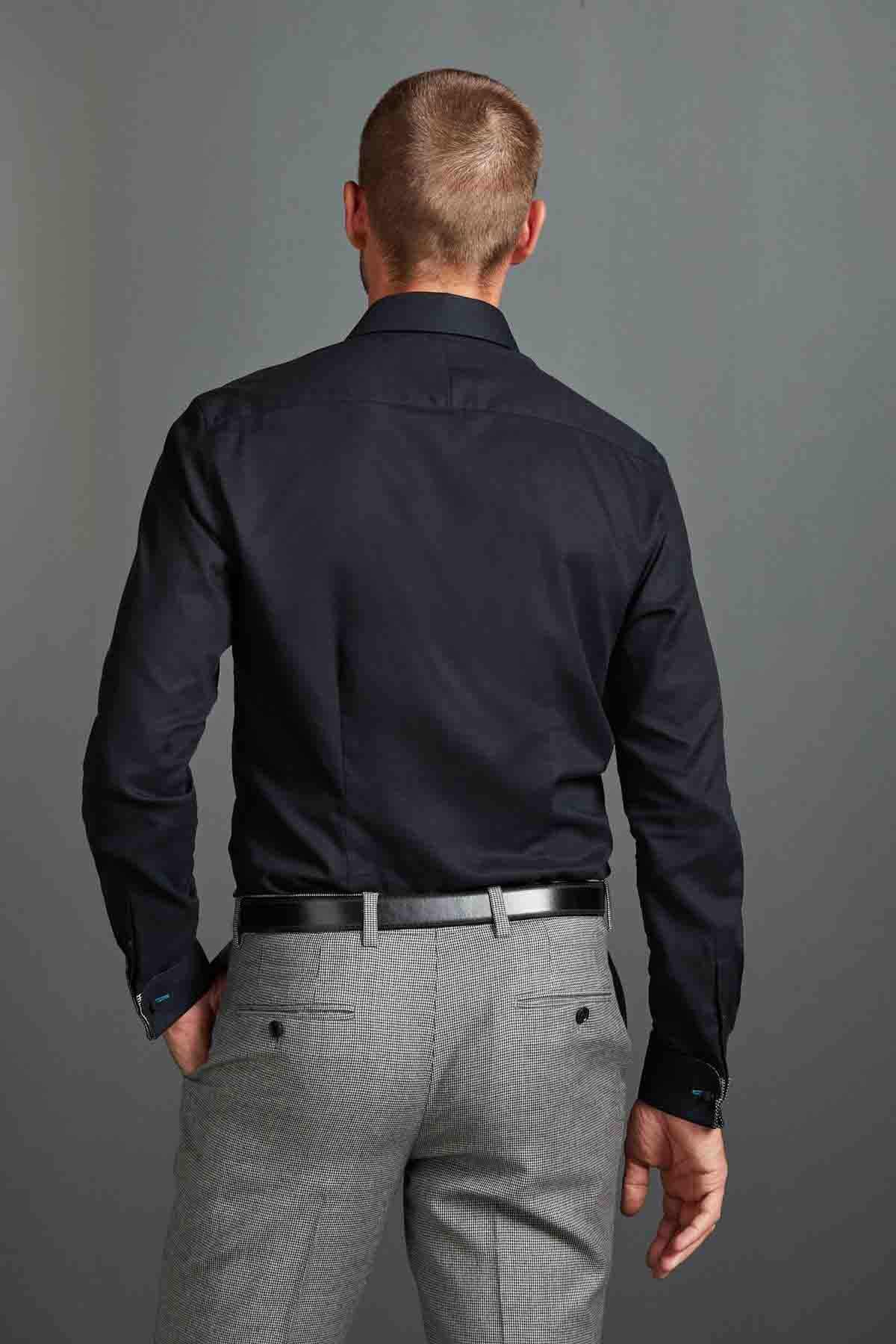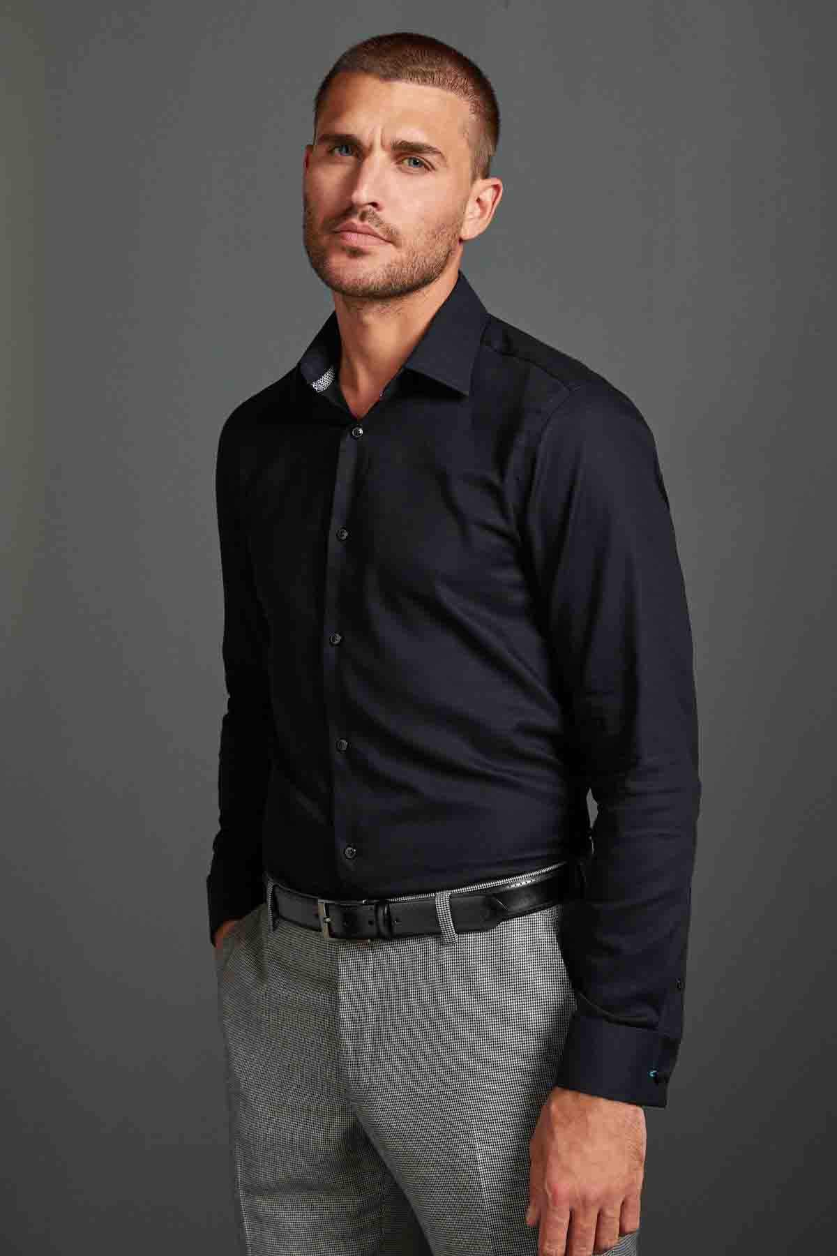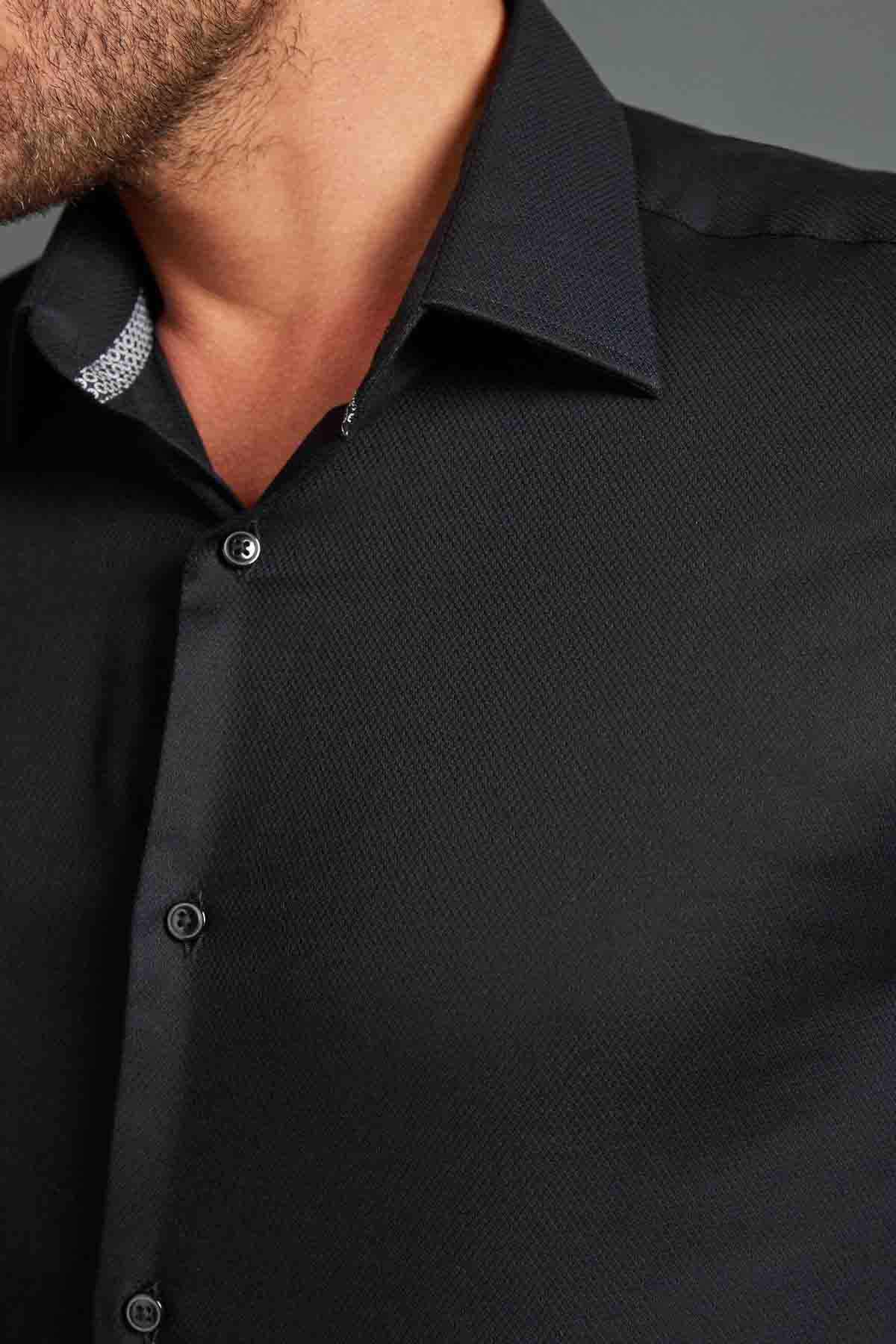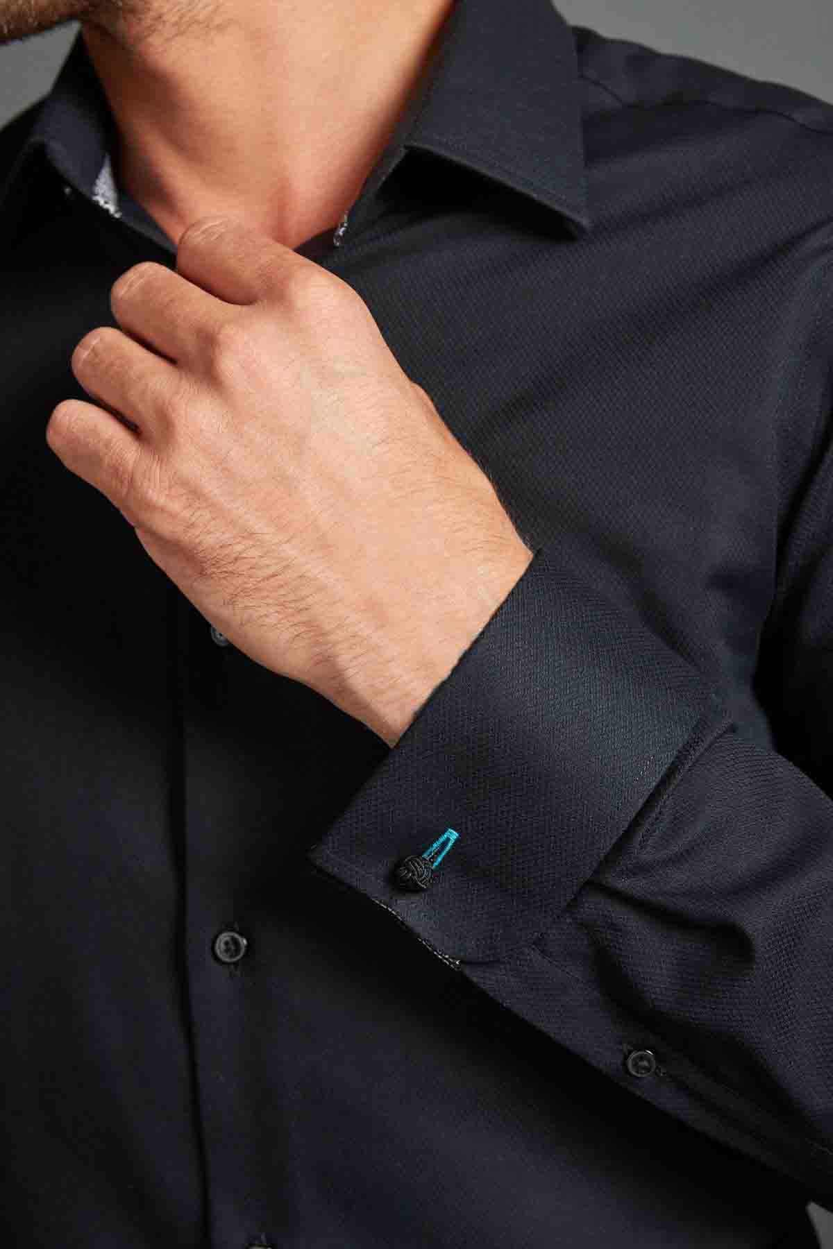 Black Slim Fit 100% Cotton Signature Textured Double Cuff Shirt With Trim Detail