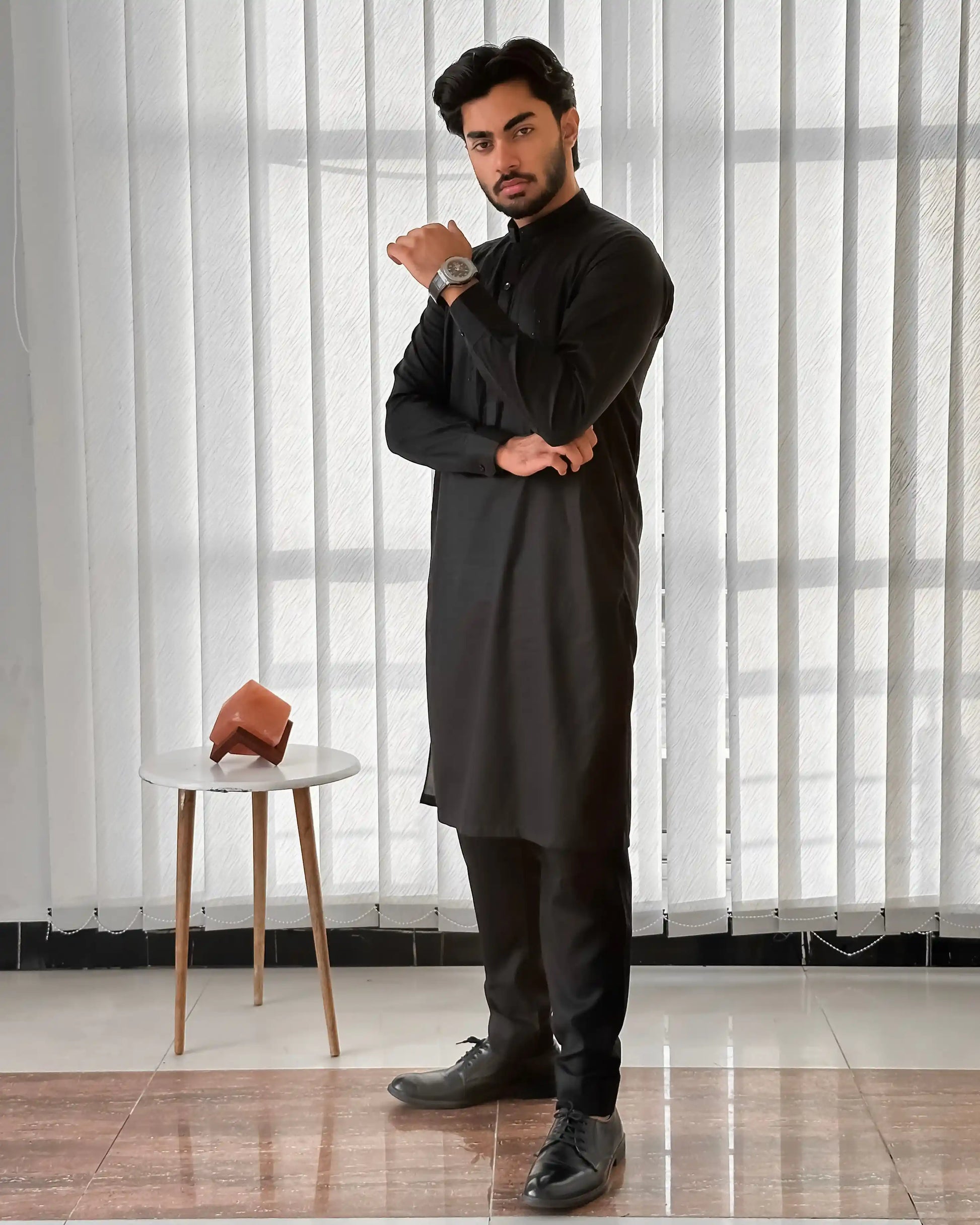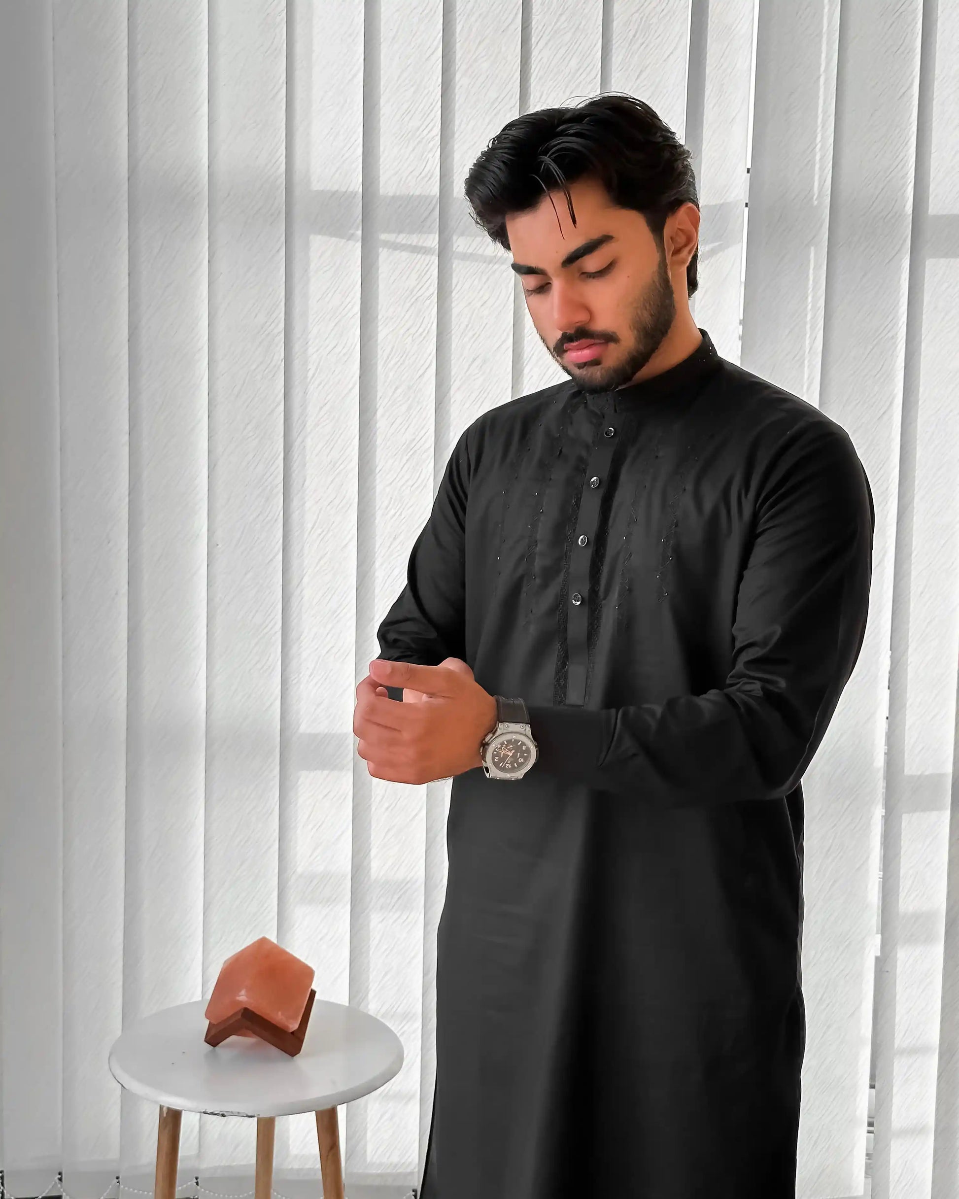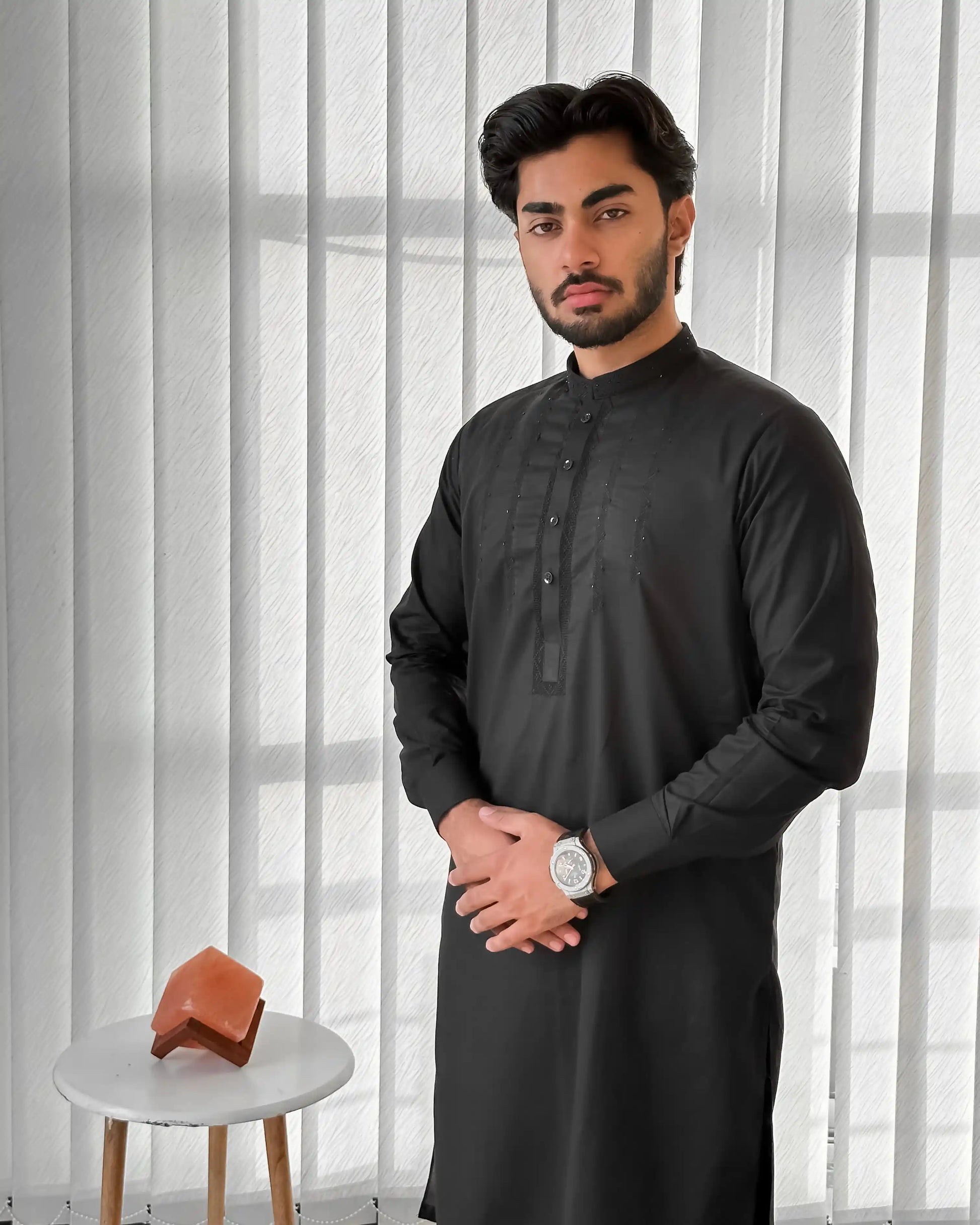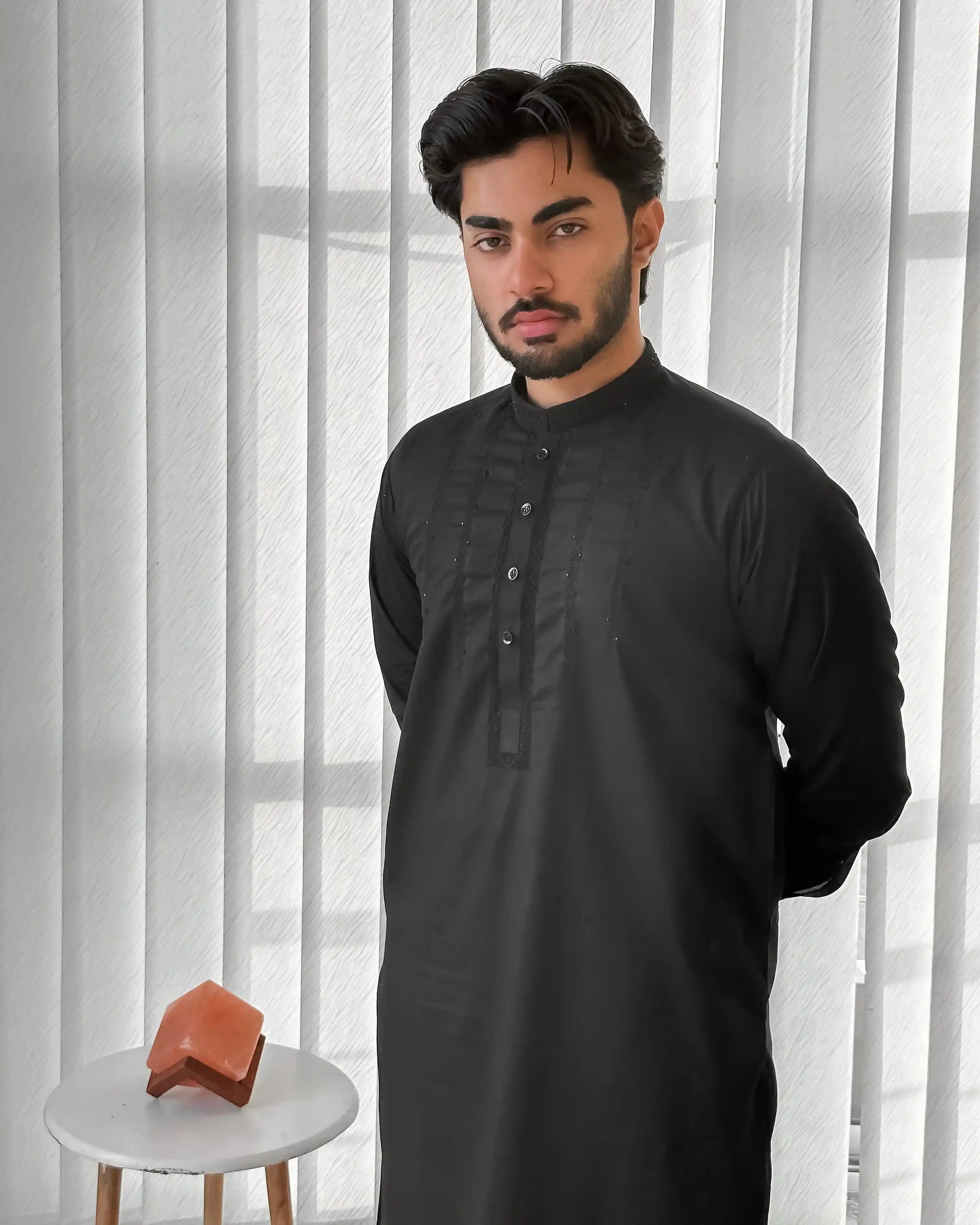 Black Tarkashi With Embroidered Chest MT- Stitched