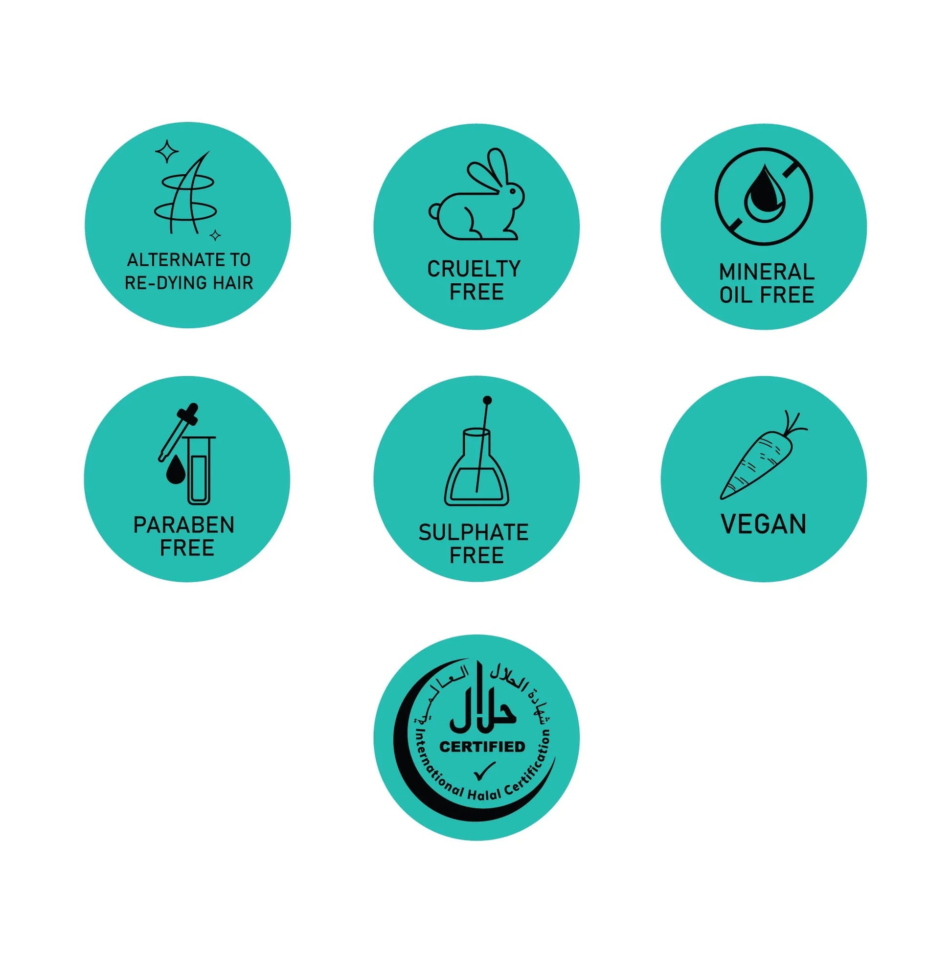 Alternative to Re-dying Hair, Cruelty Free, Mineral Oil Free, Paraben Free, Sulphate Free, Vegan, Halal