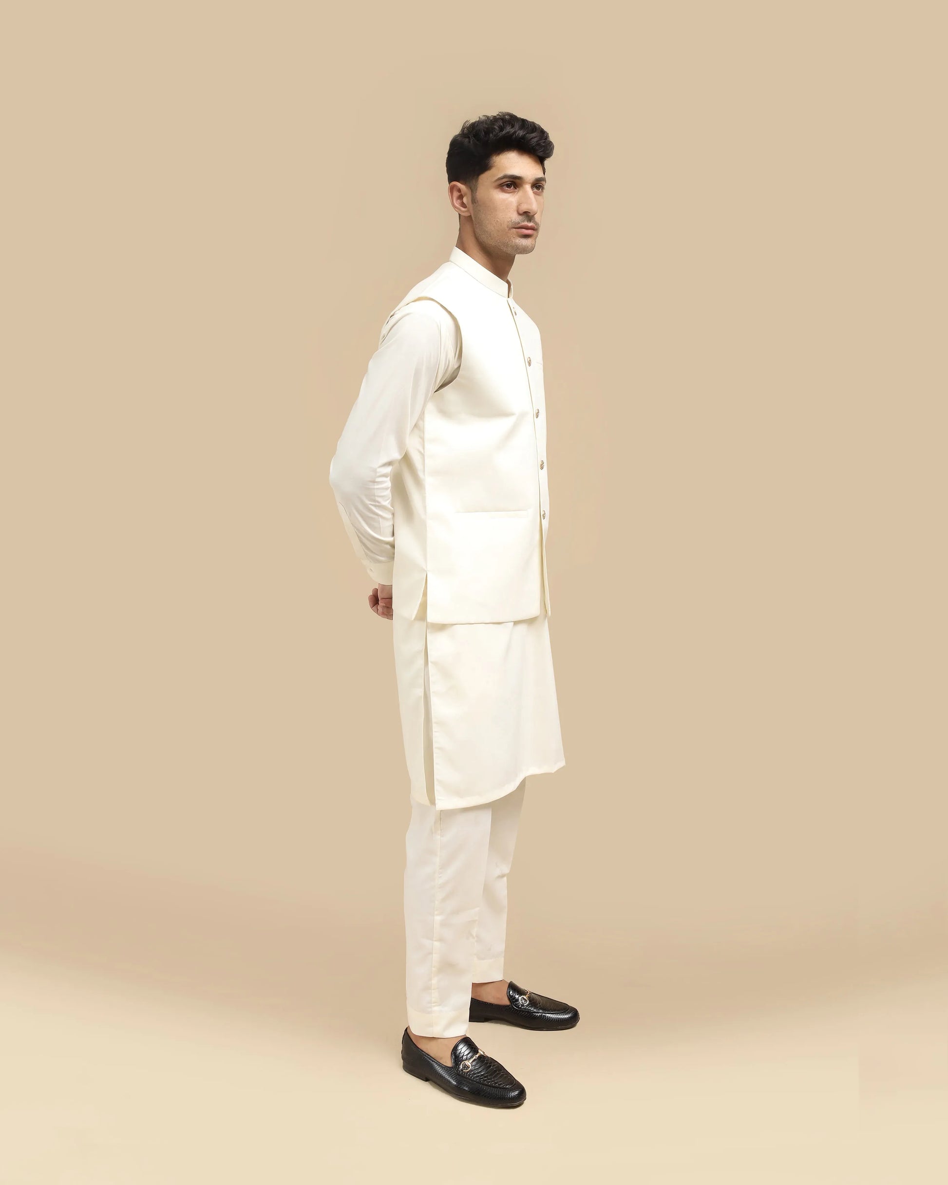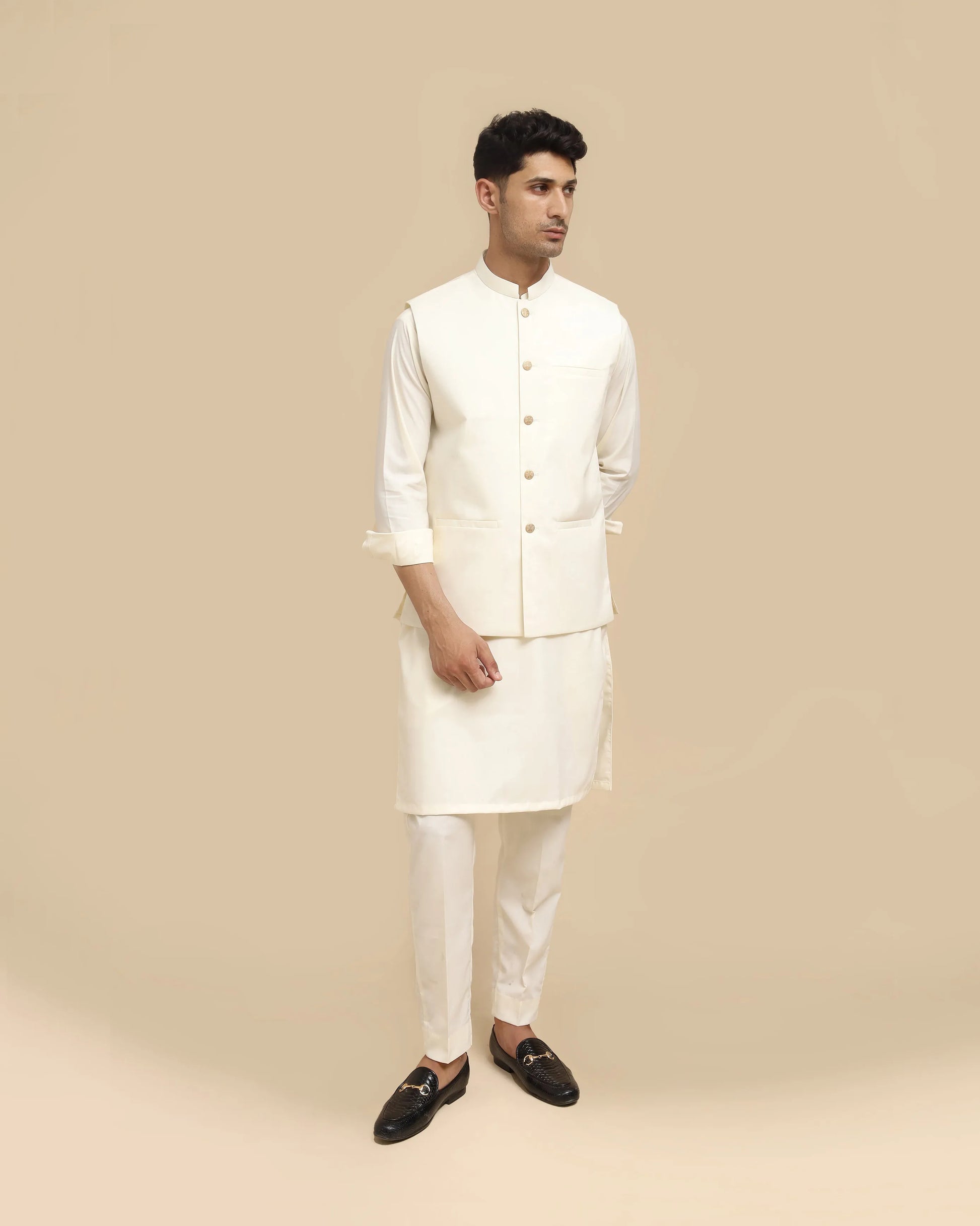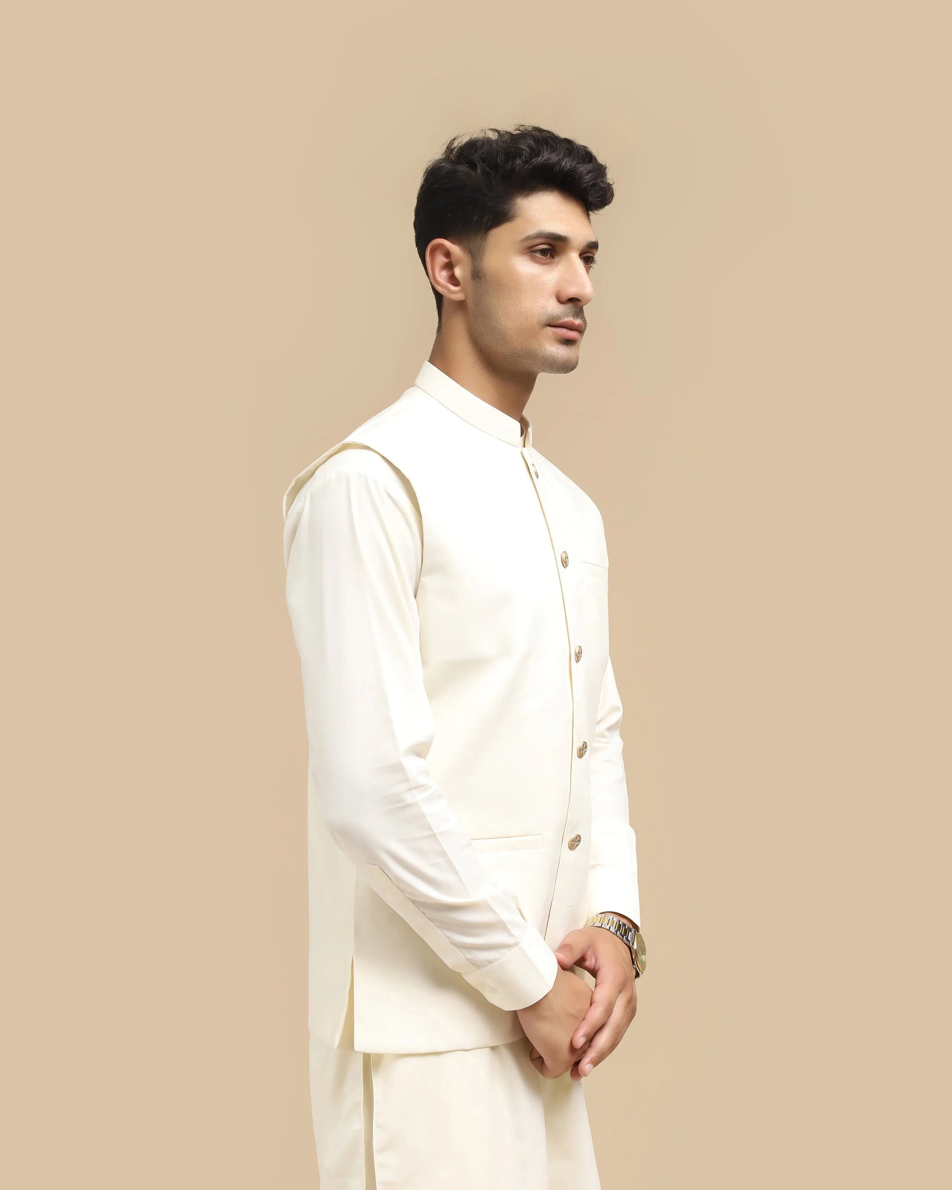 Bosky Blended Waistcoat For Men—Blending Eastern Elegance With Modern Style. Featuring A Straight Cut And Classic Buttons, This Waistcoat Adds A Polished Look To Any Formal Or Traditional Outfit.