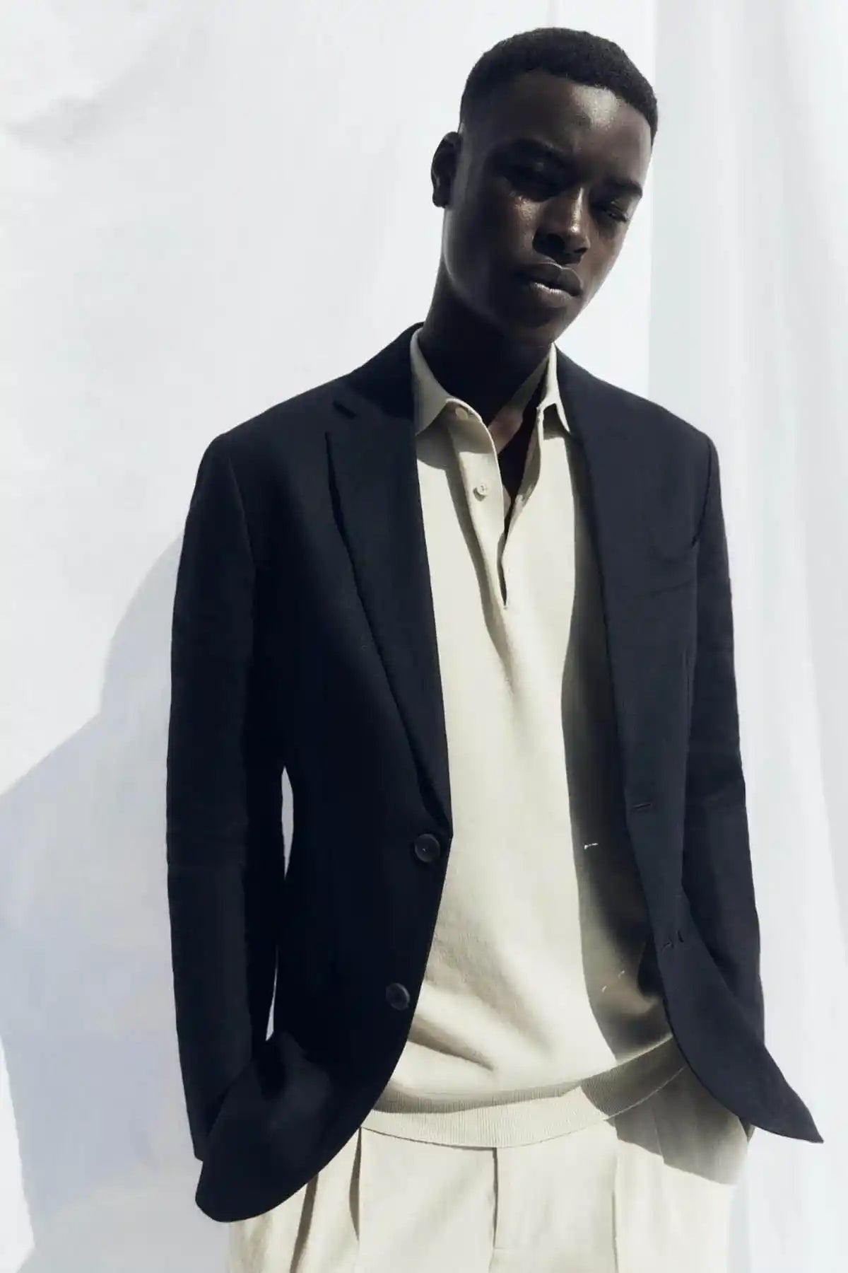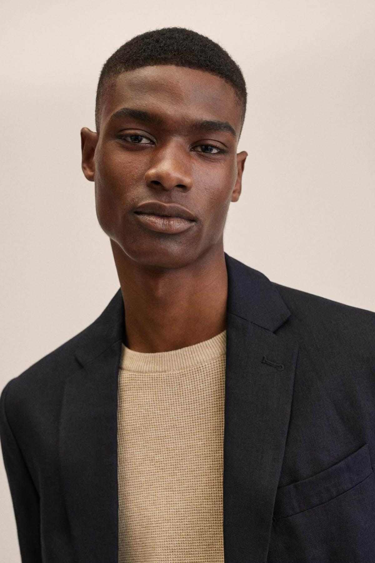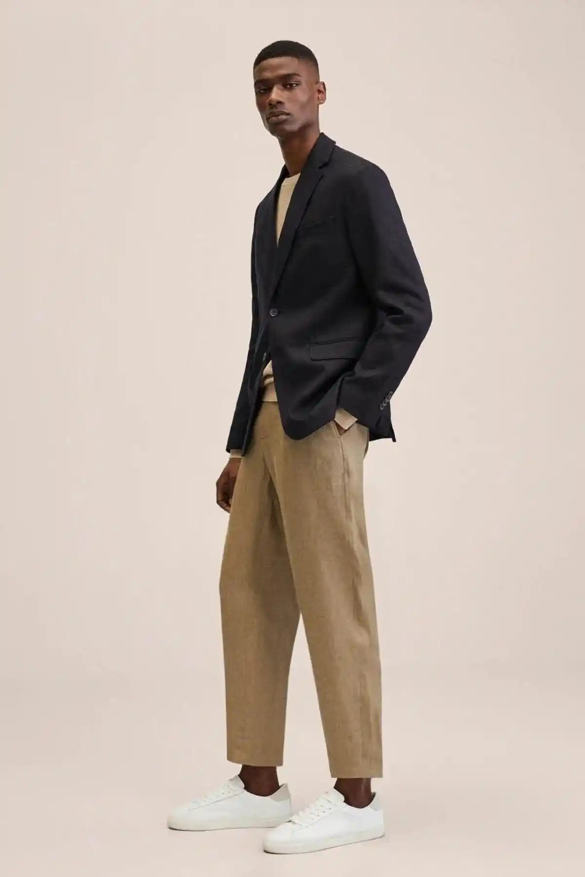 Standard design. Light fabric. Slim fit. Long sleeve. Front closure. Regular neck. Lining only. 100% Linen. Short design. Lapel with notch. Long buttoned sleeve. Welt pocket on the chest. Two side patch pockets. Button up. Inner lining. Inner pockets. The excellent qualities of this natural fibre, such as its lightness and breathability, make this fabric particularly suitable during warm weather. Elegant and comfortable as well, this garment is a perfect choice.. The model is 190 cm tall and is wearing a size 50.