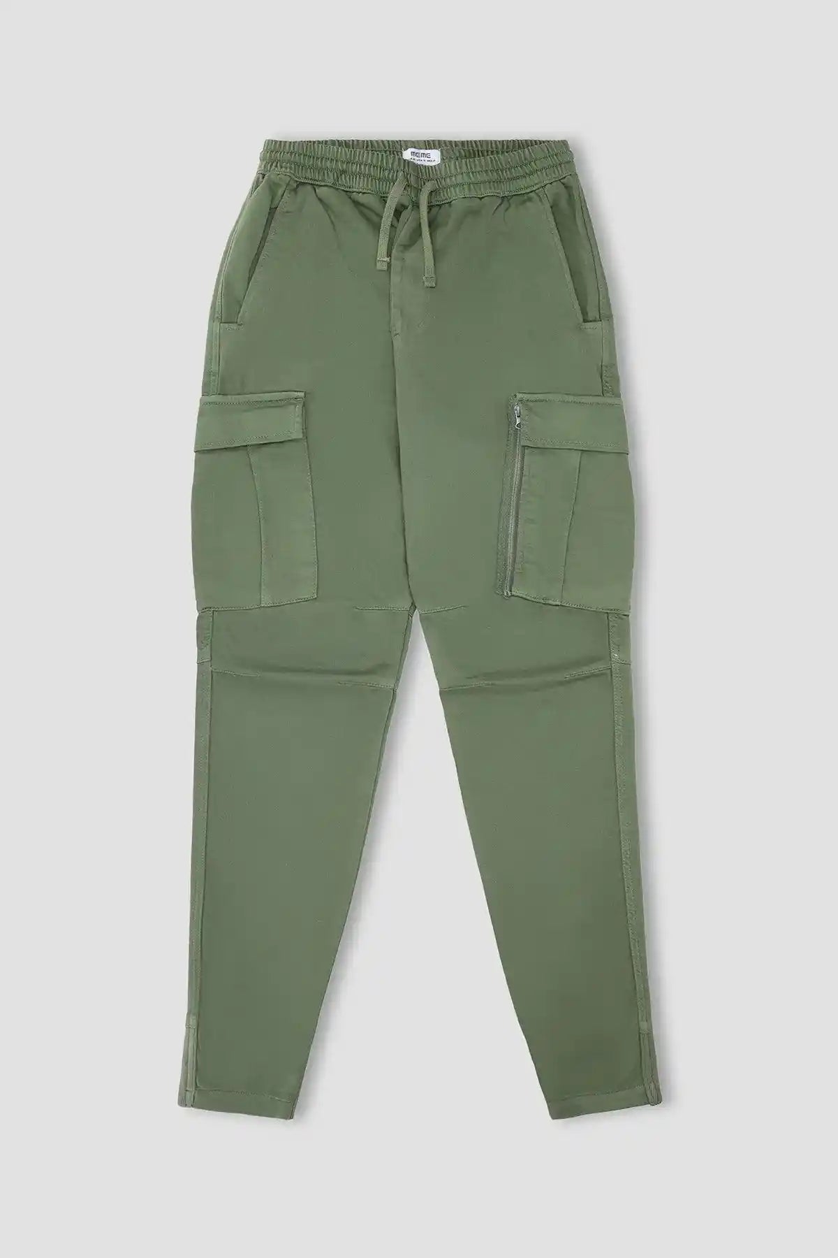 69% Cotton 29% Polyester 2% Elastane. Comfortable Pants With Drawstring Waistband And Stitched Detail On Knees. Featuring Utility Pockets, Front Slash Pockets And Back Welt Pocket.
