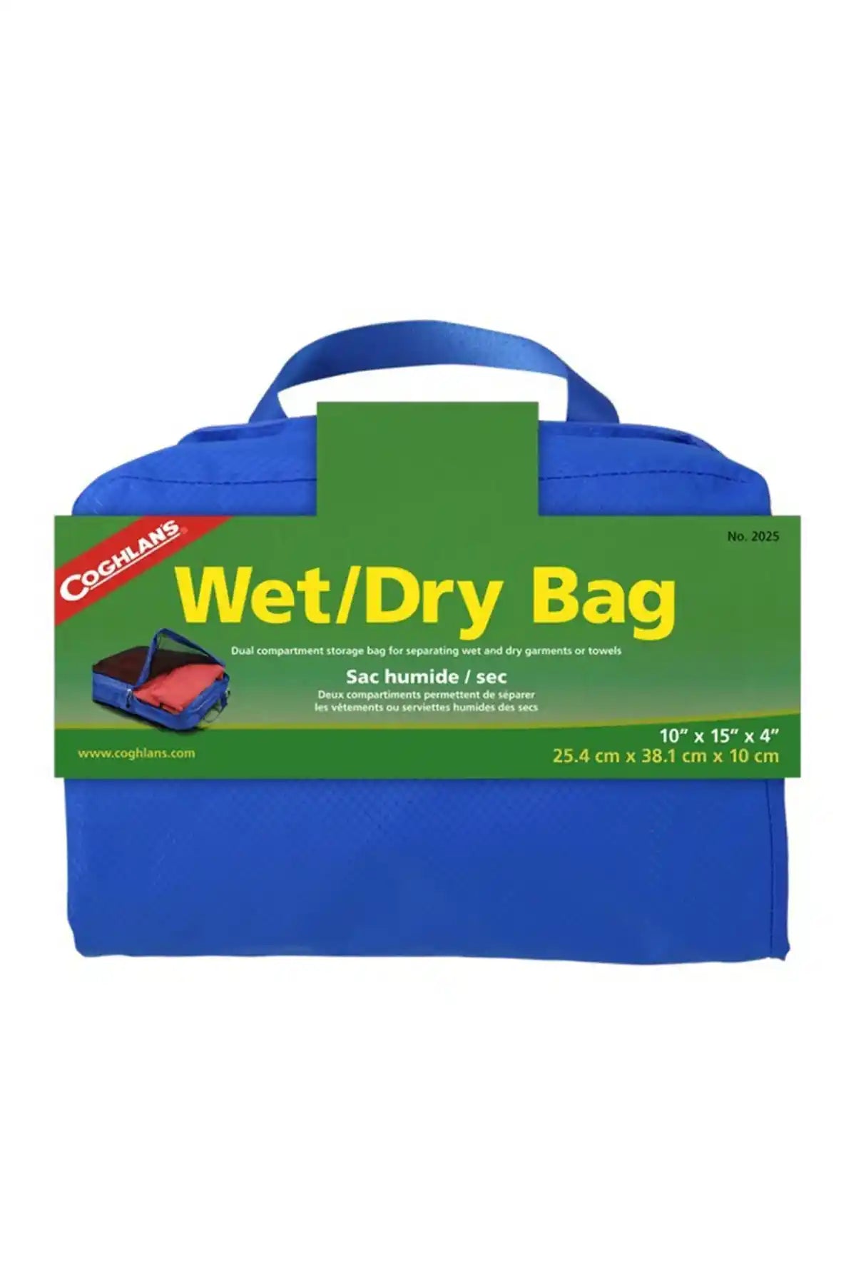 Keep your wet garments separated and organized with Coghlan S Wet Dry Bag. This dual compartment blue ripstop nylon bag is perfect for days at the beach or stacking laundry when traveling. The reverse coil zipper and taped seams secure the waterresistant side and a mesh front keeps the dry side breathable. The bag features doubleheaded zippers with zipper pulls on both compartments for easy access.