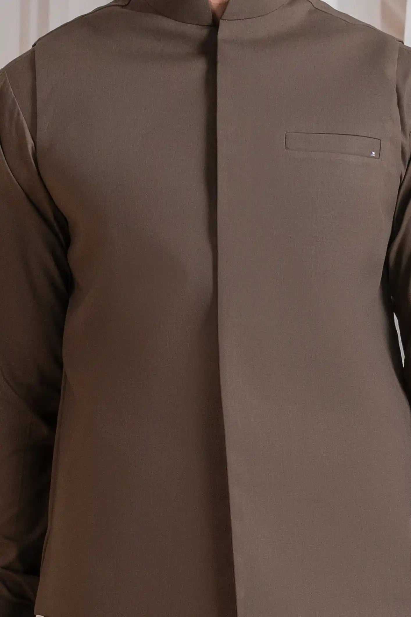 Light Brown Luxury Formal Kameez Shalwar with Blended Waistcoat - Straight Cut - Men