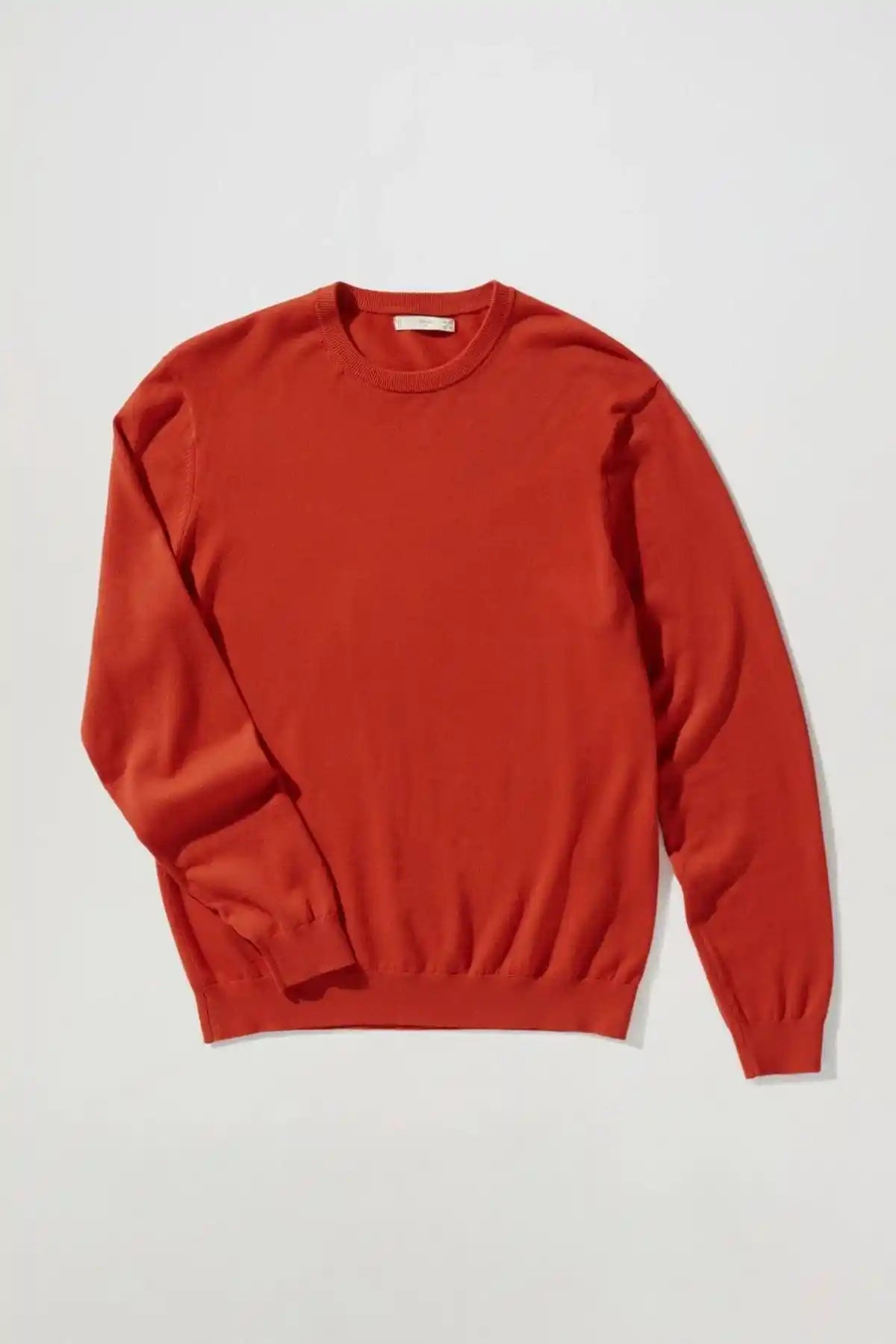 Basics Collection. Sustainable cotton fabric. Rounded neck. Long sleeve. Elastic ribbed endings. The model is wearing a size M.