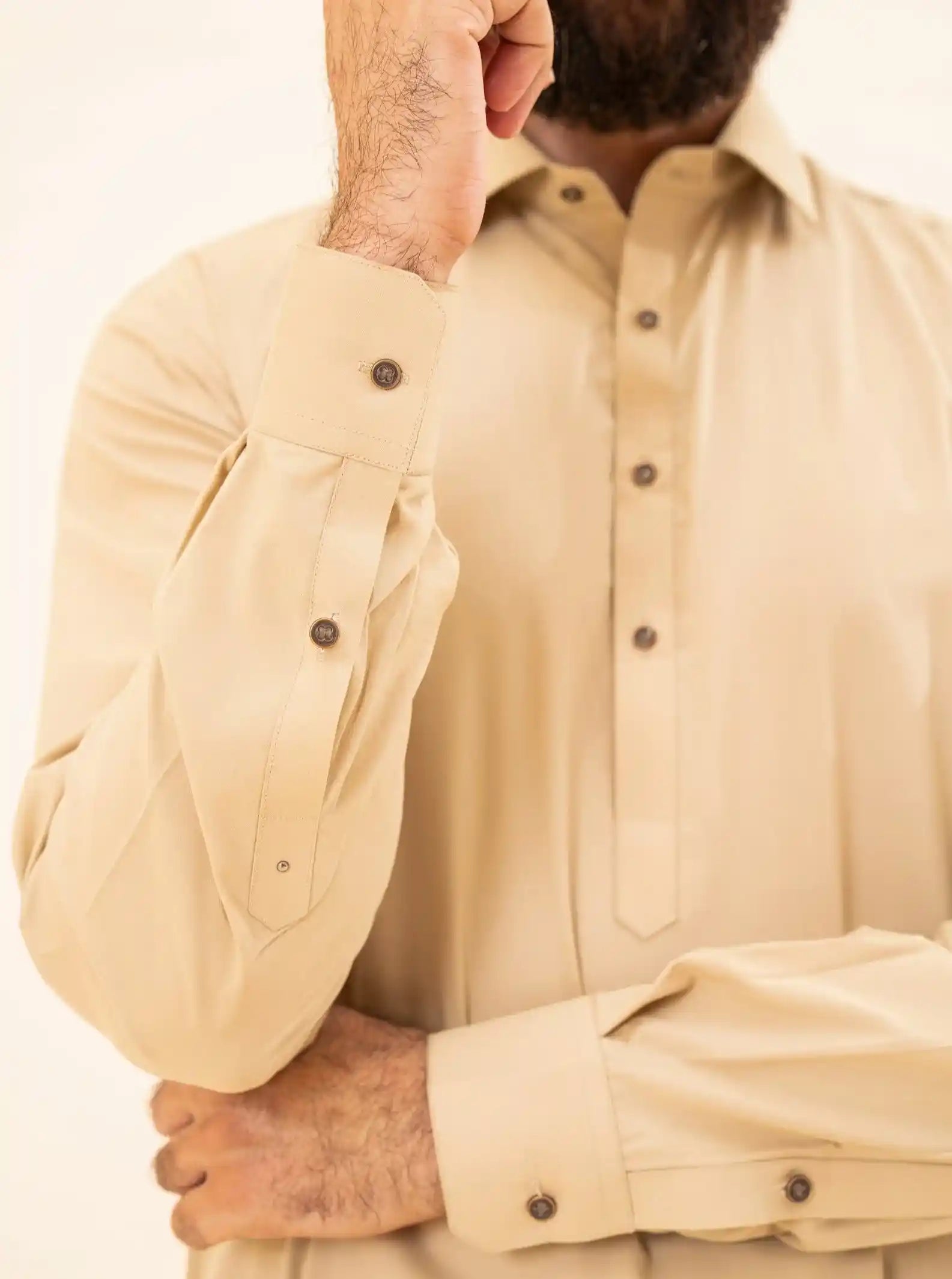 Embrace Elegant Simplicity With The Ivory French Collar Shalwar Kameez, Designed For A Classic Fit And Subtle Charm.