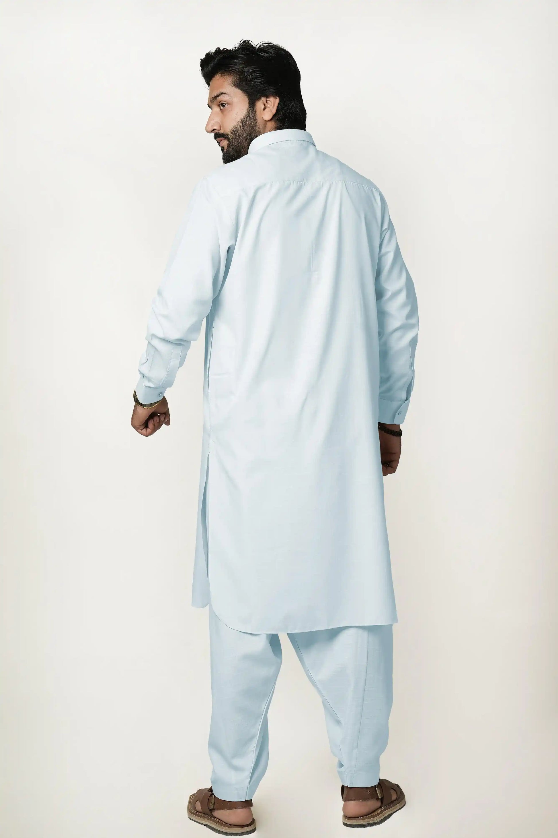 Sky Blue Shirt Collar Kameez Shalwar in Cotton