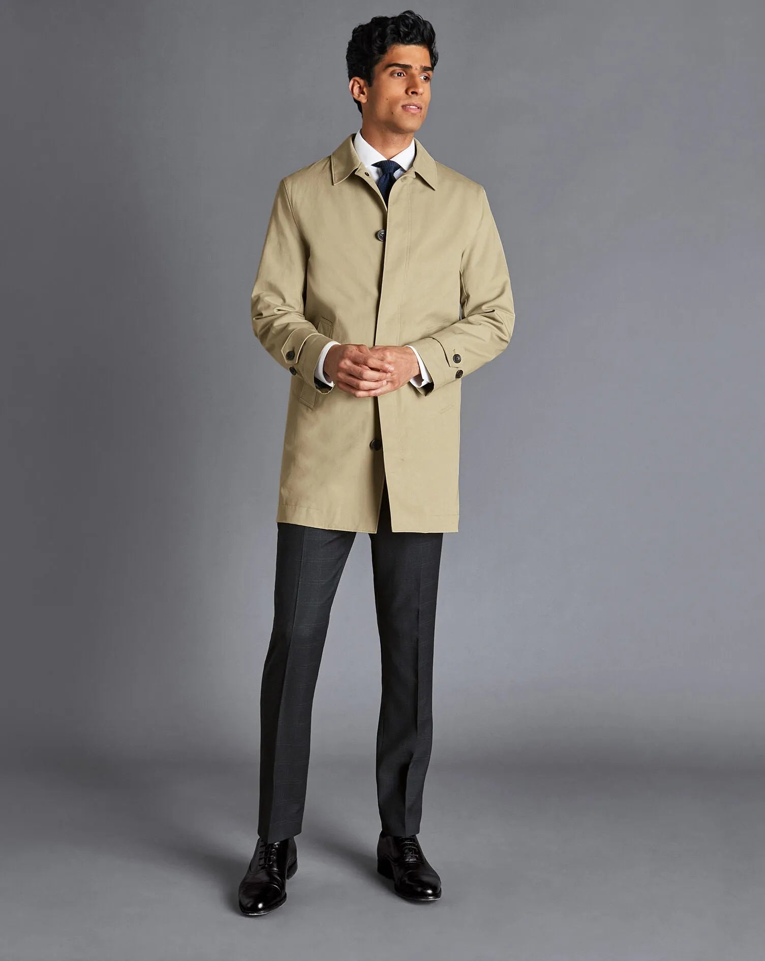 The weather won't cramp your style in this fully lined raincoat – featuring a spread collar and buttoned cuffs.